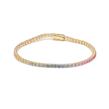 Rainbow Ombre Sapphire Tennis Bracelet Gold – Dainty Color Gradient Gemstone Bracelet by Jewels Park