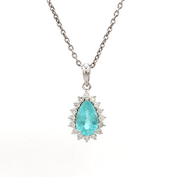 Stone : Paraiba Tourmaline Type : Natural Shape : Pear Weight : 1.49 carats Diamond...