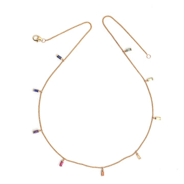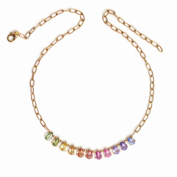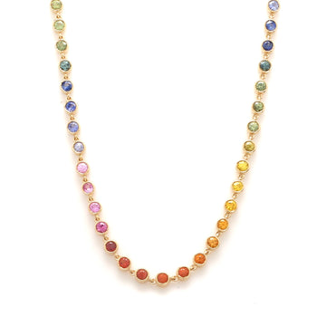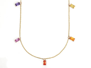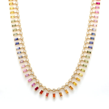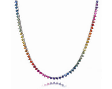 Rainbow Sapphire Vibrant Three Prong Tennis Necklace This classic three prong tennis necklace has the...