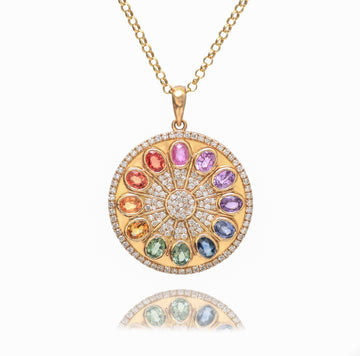 Rainbow Sapphire Oval Diamond Disc Necklace MATERIALS Available in 14k and 18k Yellow Gold, Rose...