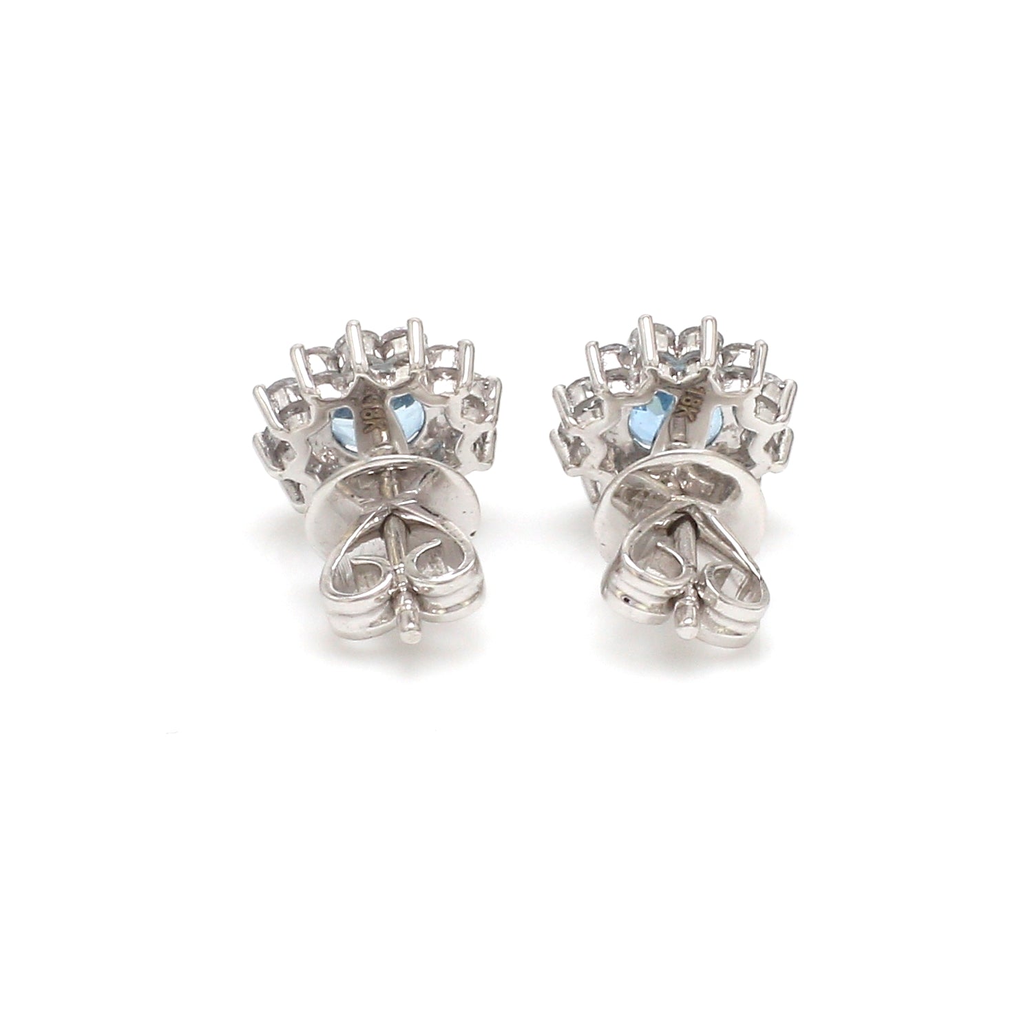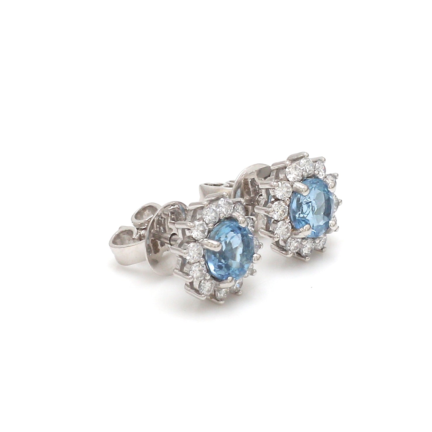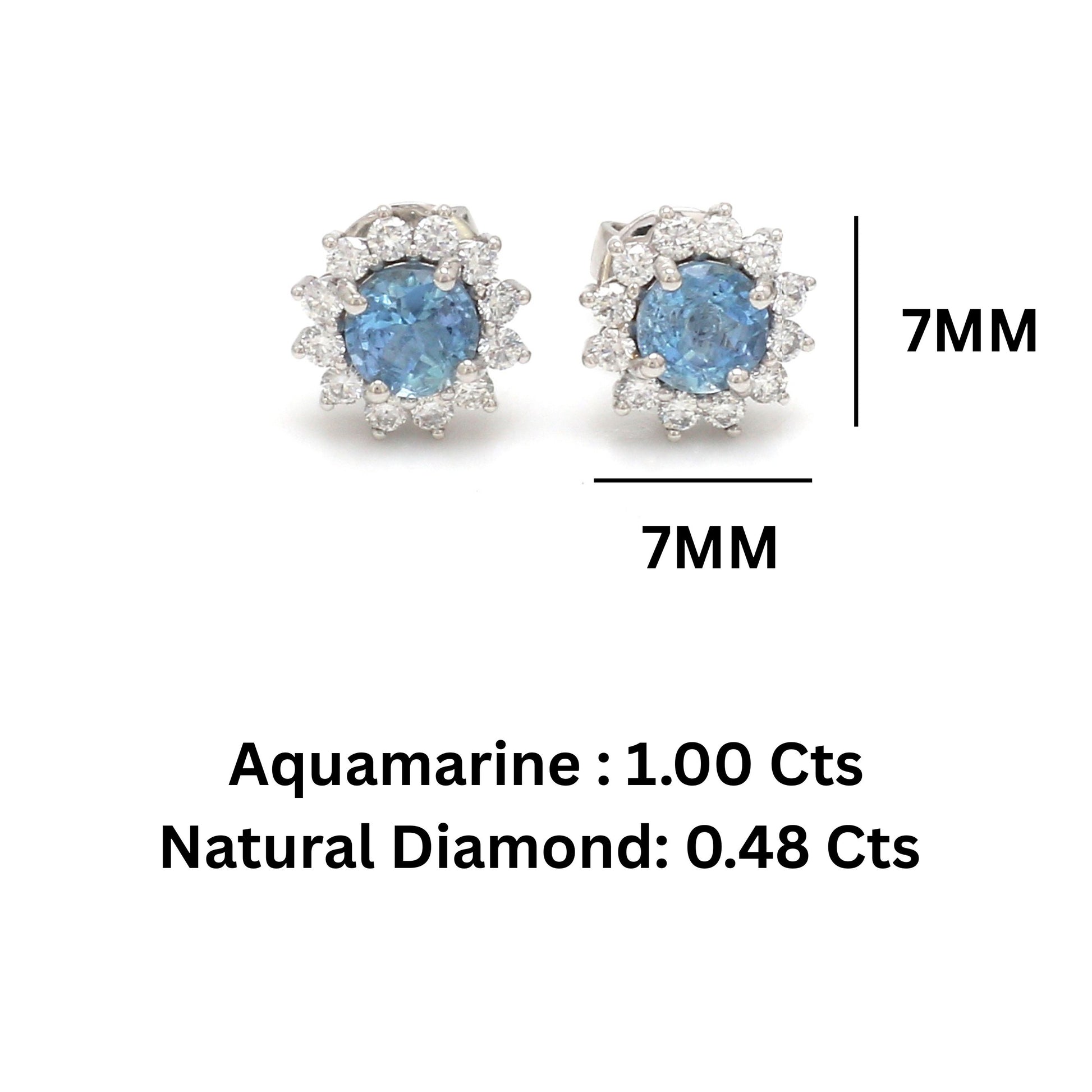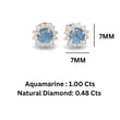 Aquamarine Diamond Halo Stud Earrings Gold – Round Aquamarine Earrings