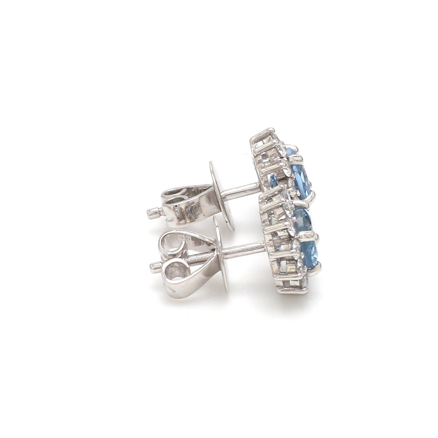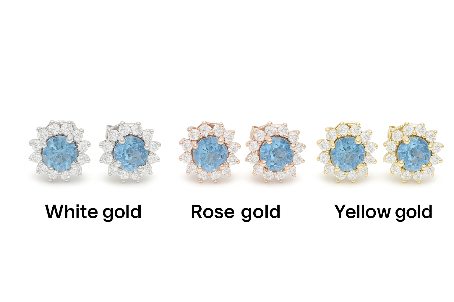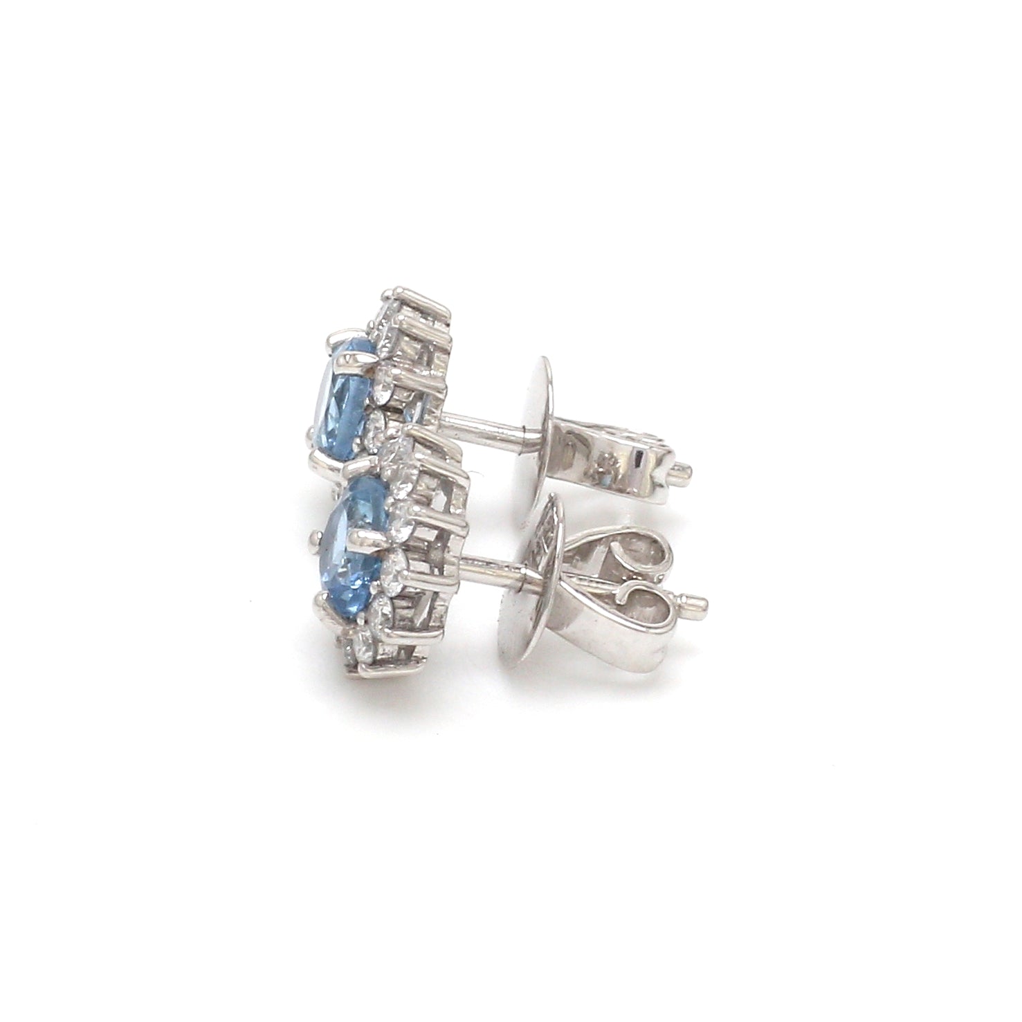 Aquamarine Diamond Halo Stud Earrings Gold – Round Aquamarine Earrings