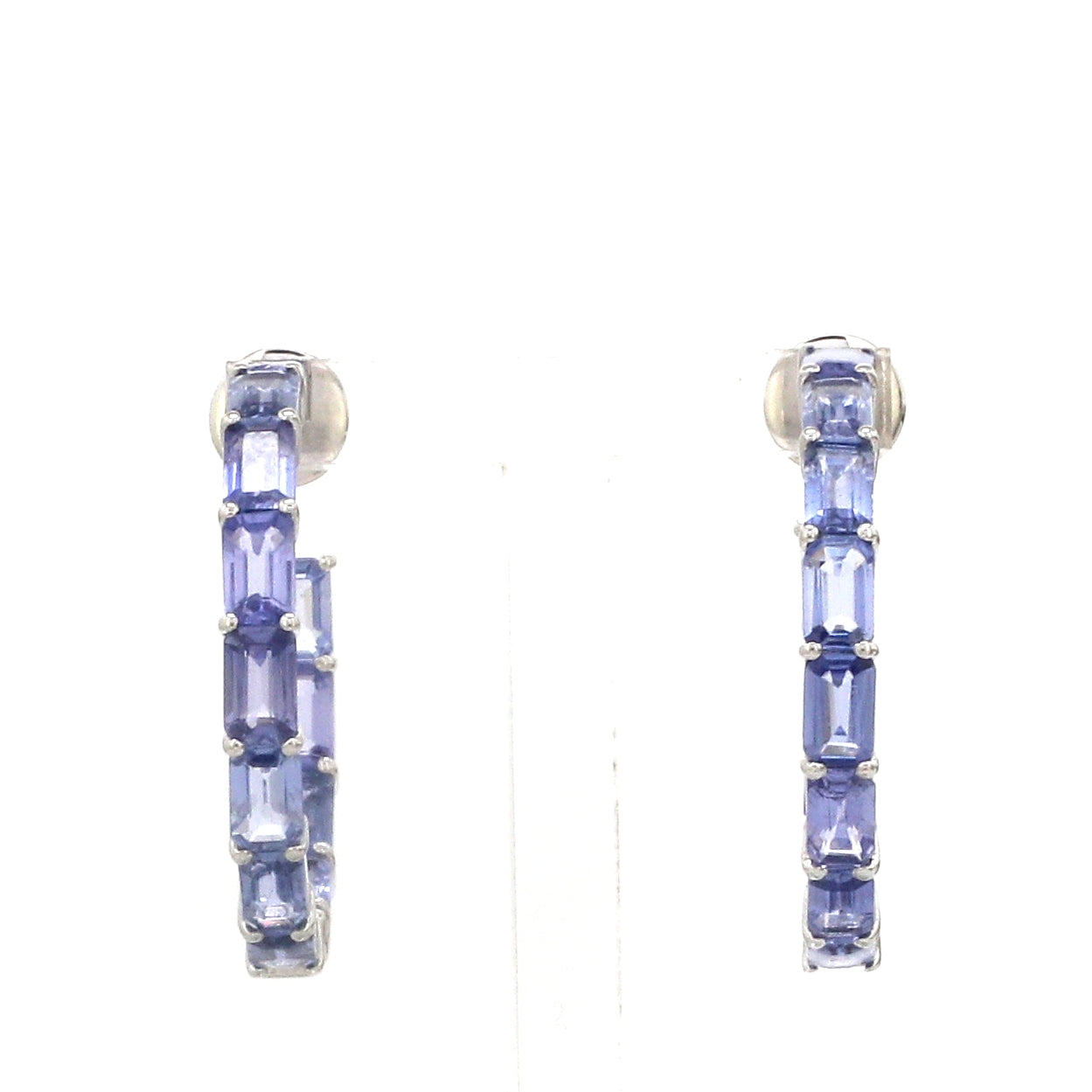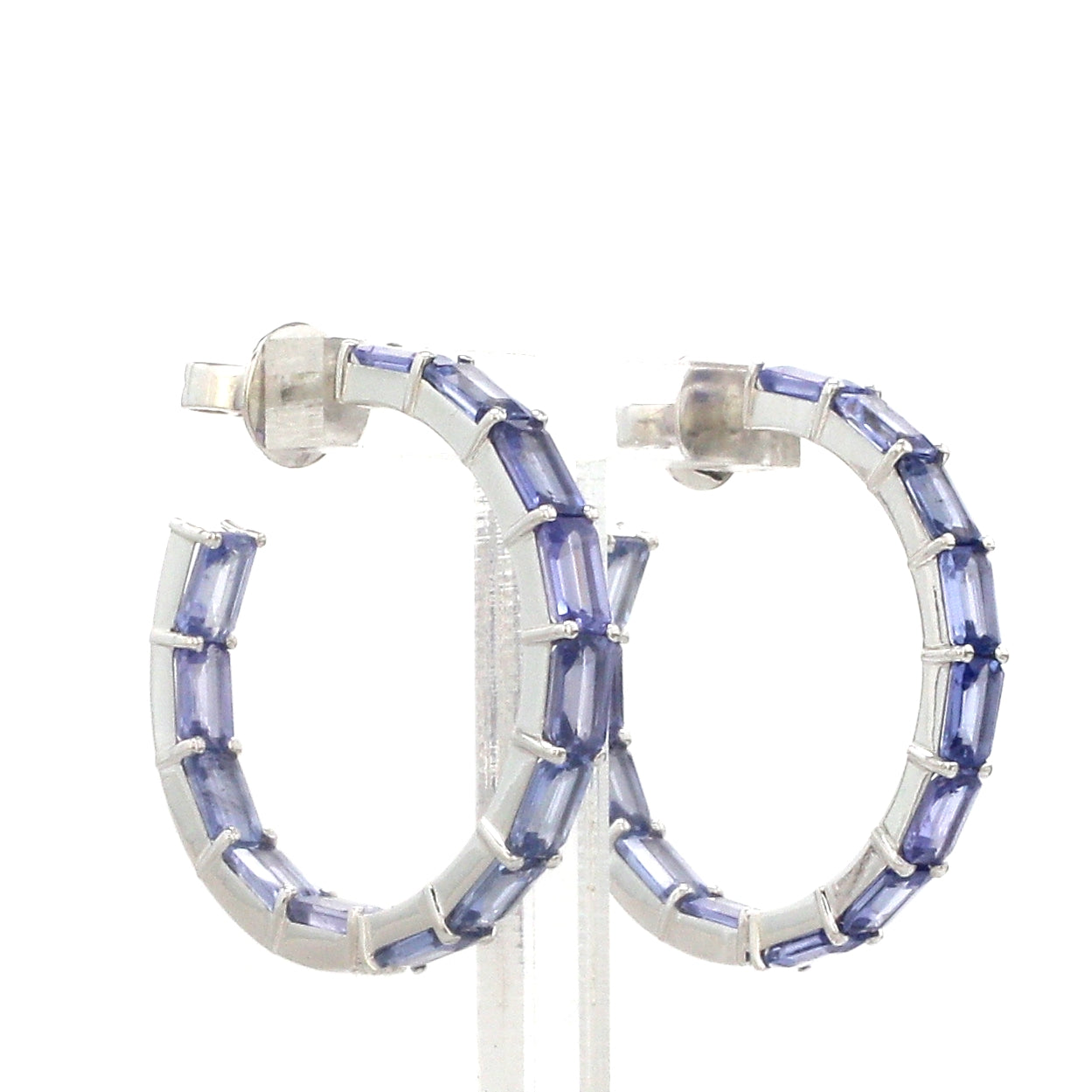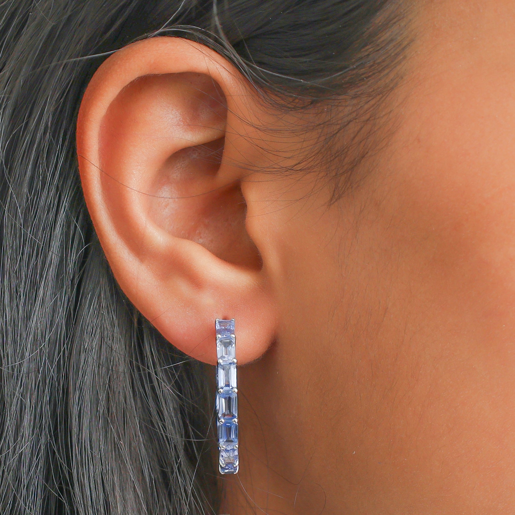 Blue Sapphire Emerald Cut Hoop Earrings Gold | Blue Sapphire Hoops Earrings