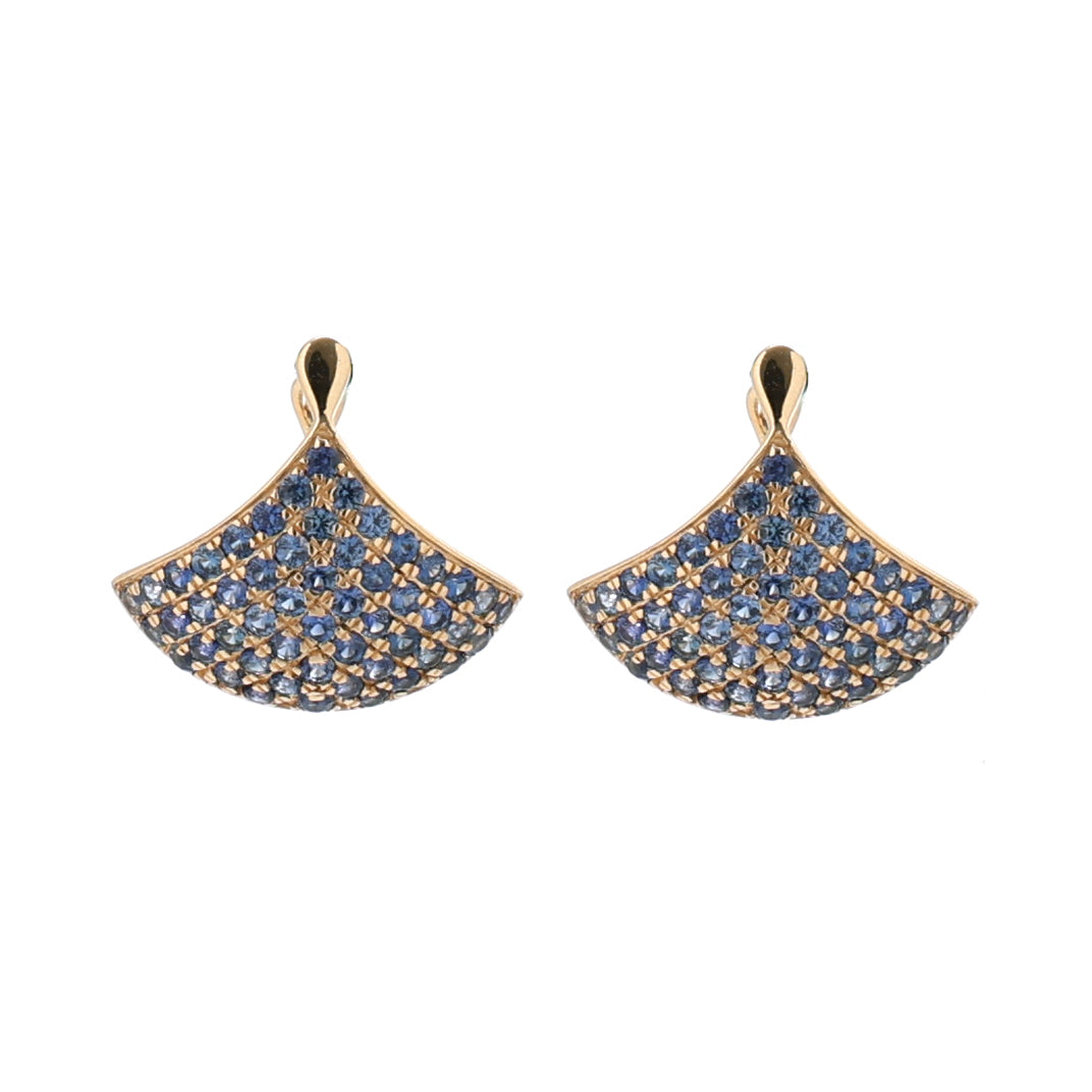 Blue Sapphire Crescent Hoop Earrings in Solid Gold – Pavé Huggie Style
