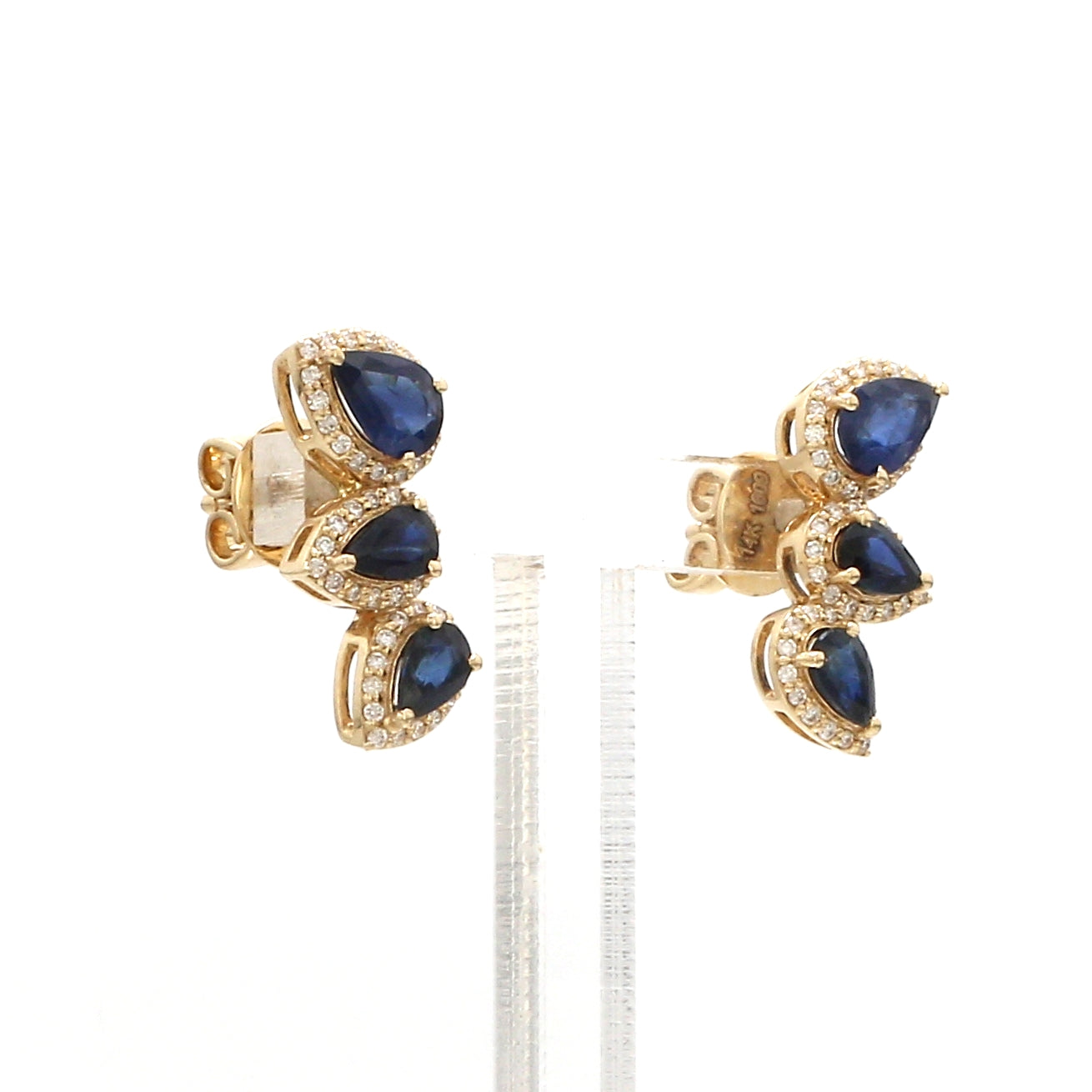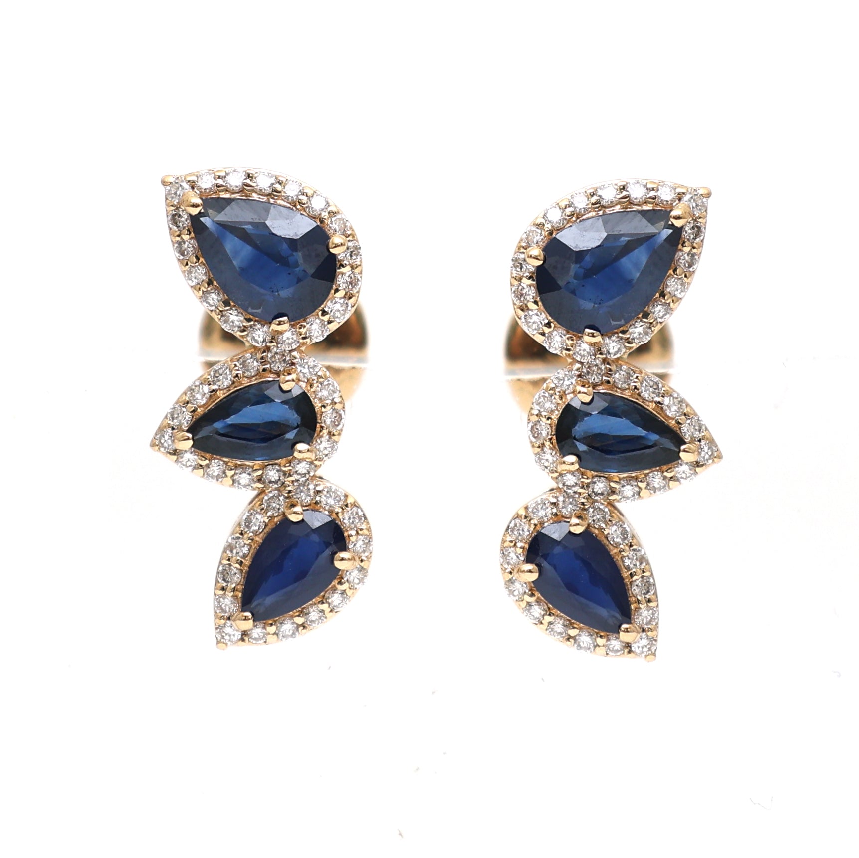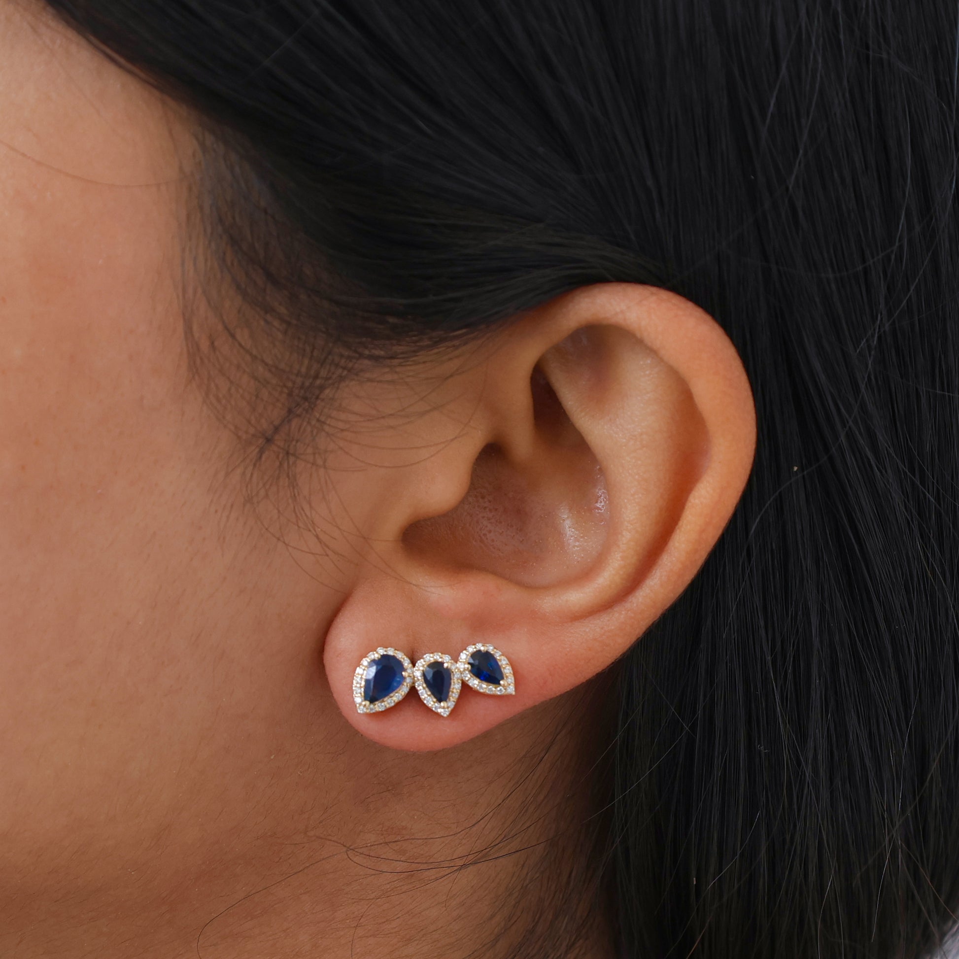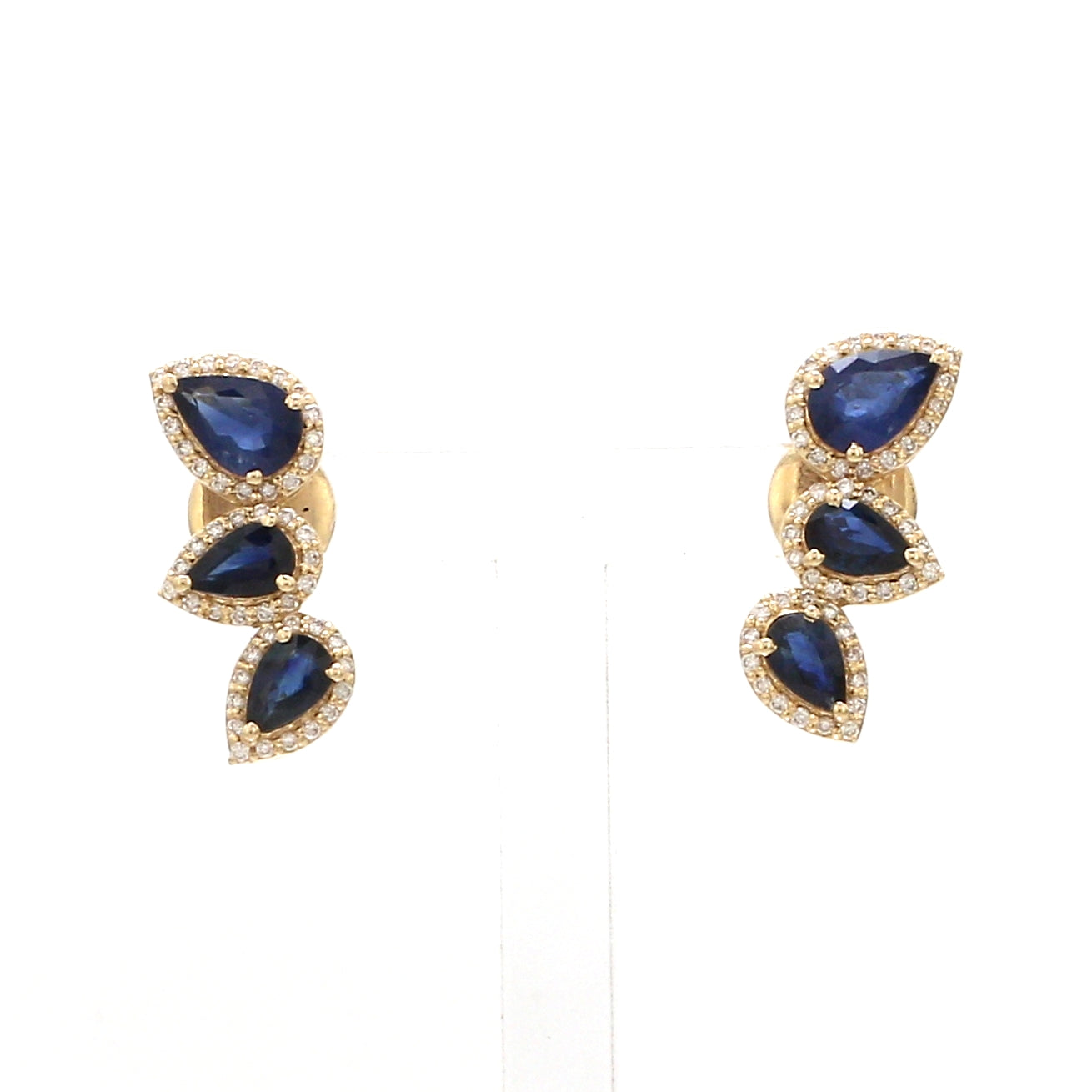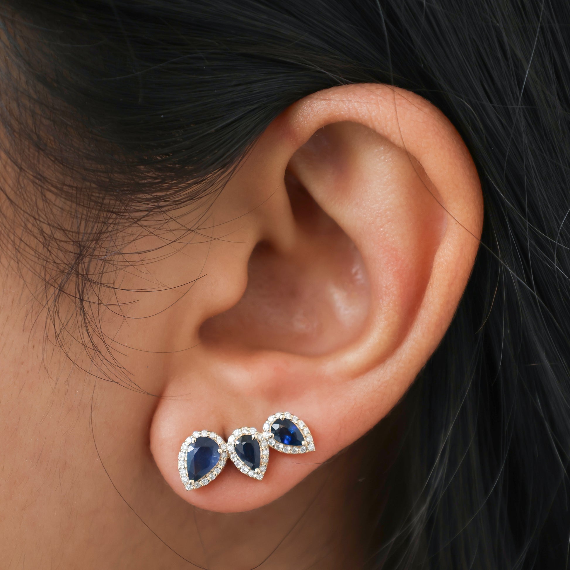 Blue Sapphire & Diamond Climber Earrings Gold – Halo Ear Crawlers