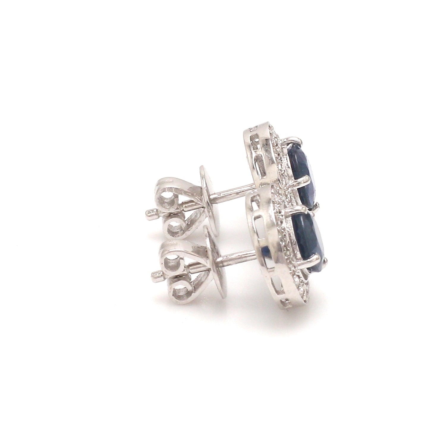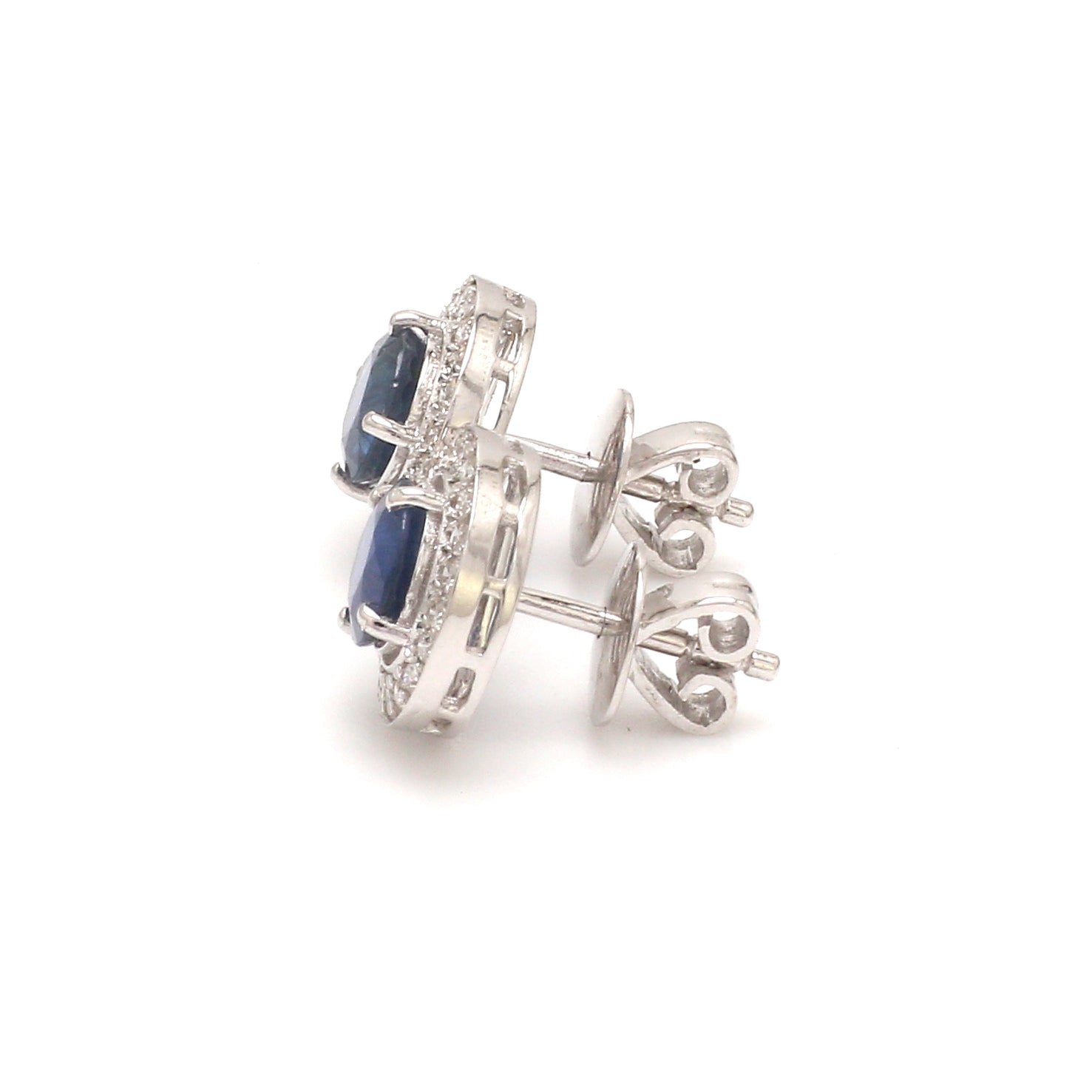 Blue Sapphire & Diamond Halo Stud Earrings in Solid Gold