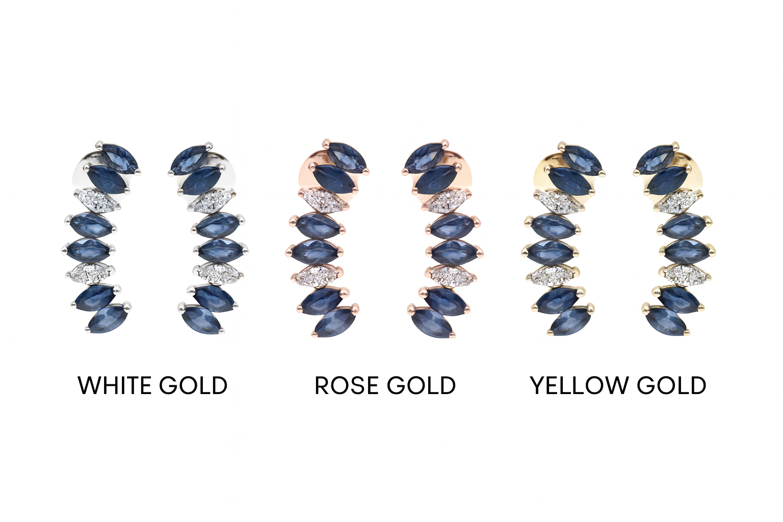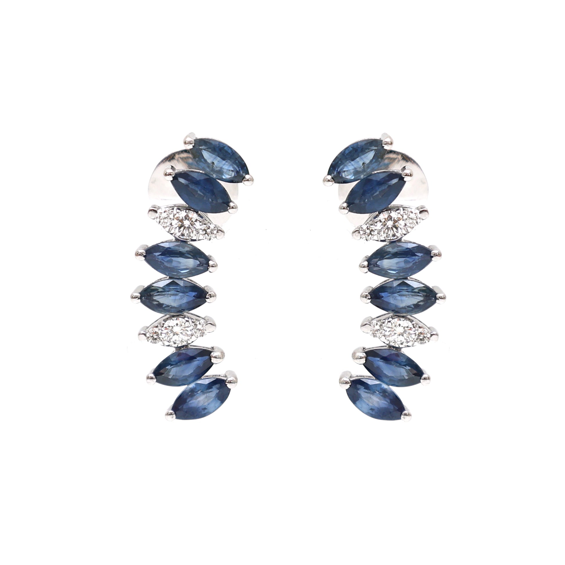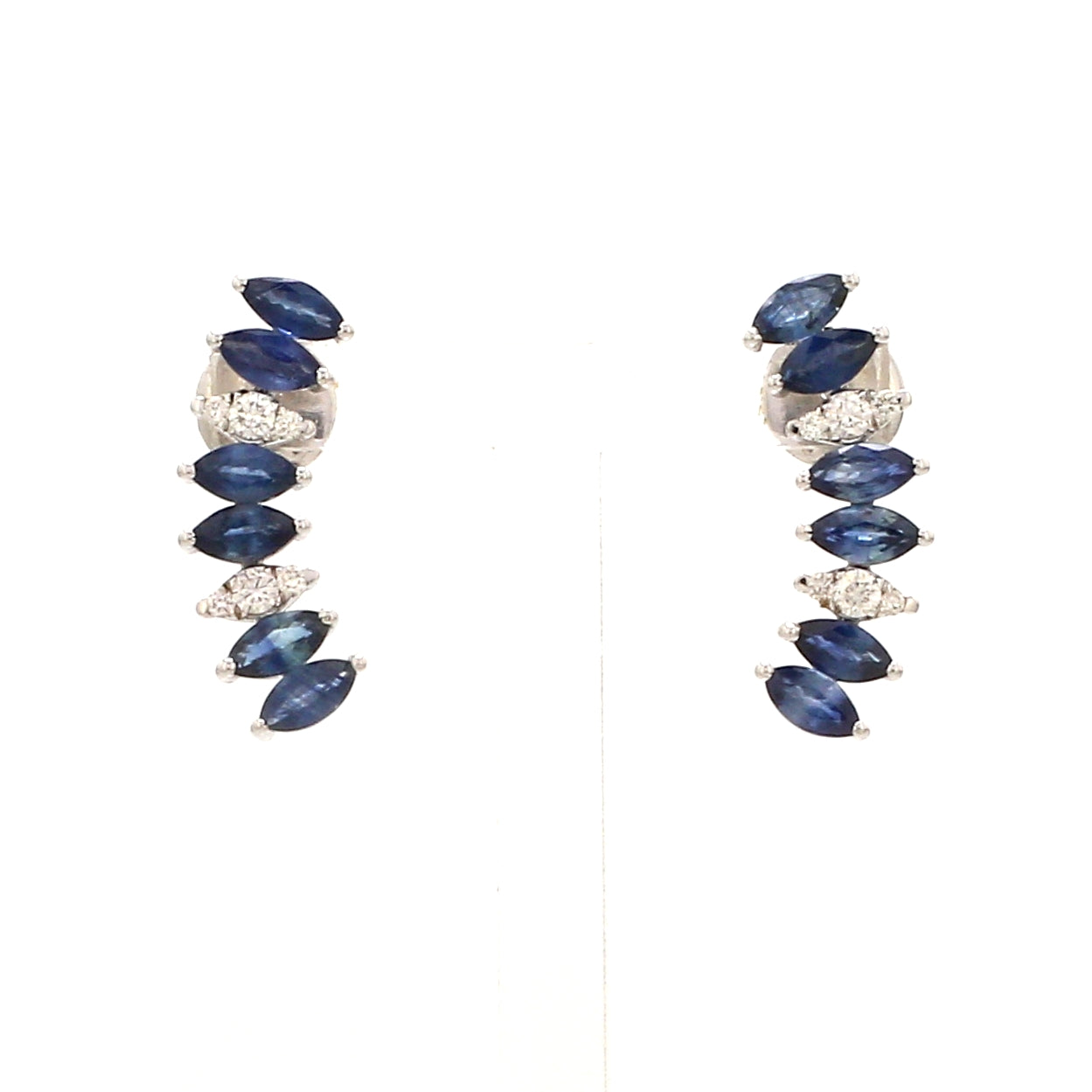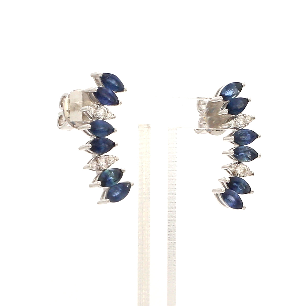 Blue Sapphire Marquise Diamond Climber Earrings Gold | Jewels Park