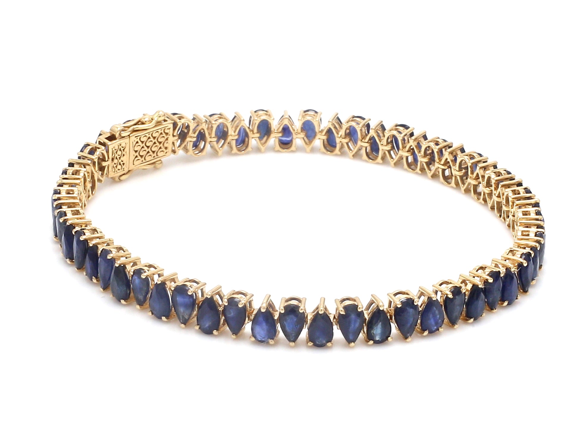 Blue Sapphire Pear Tennis Bracelet Gold – Natural Sapphire Bracelet | Jewels Park