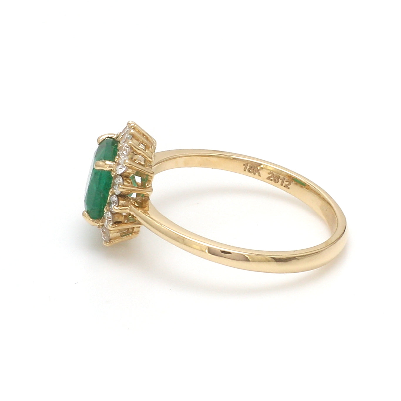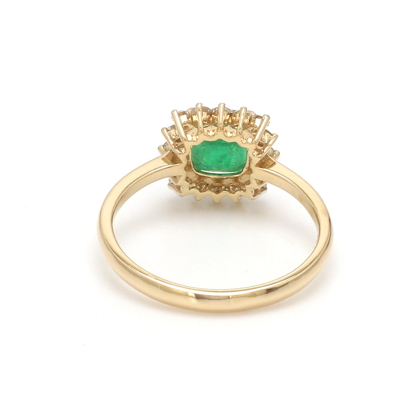 Emerald and Diamond Cushion Cut Halo Ring Gold