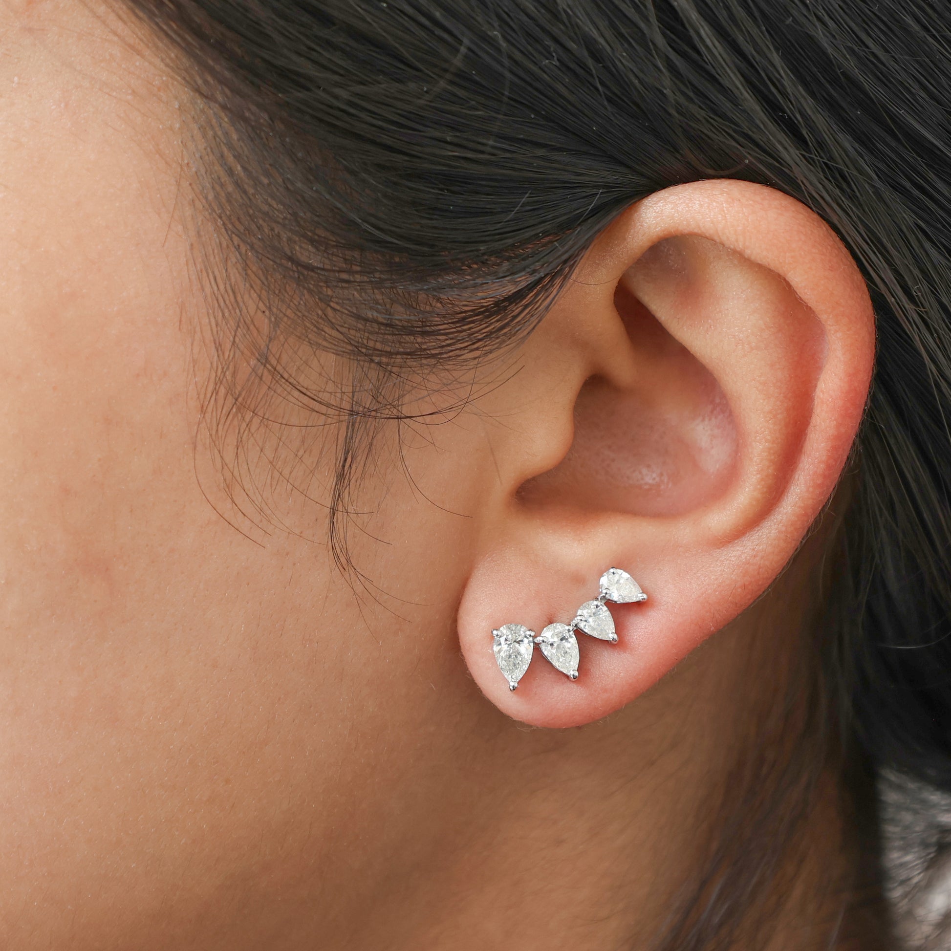 Pear Diamond Climber Earrings Gold – Modern Diamond Earrings