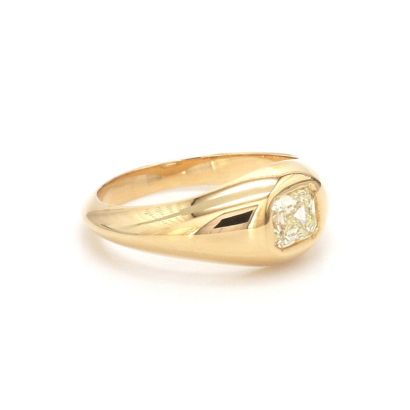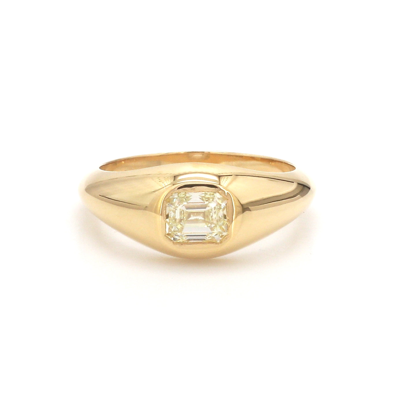 Emerald Cut Diamond Bezel Signet Ring Gold