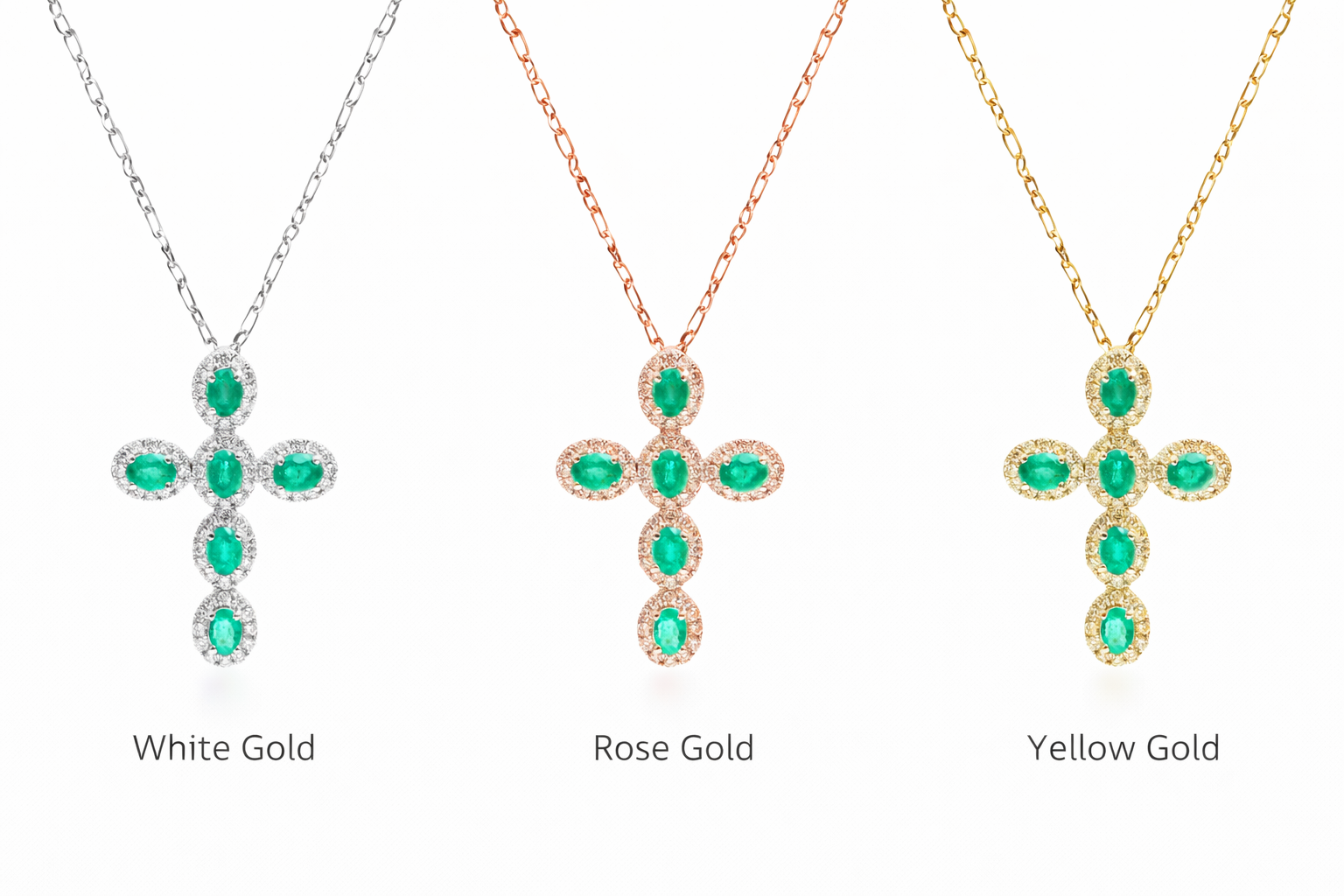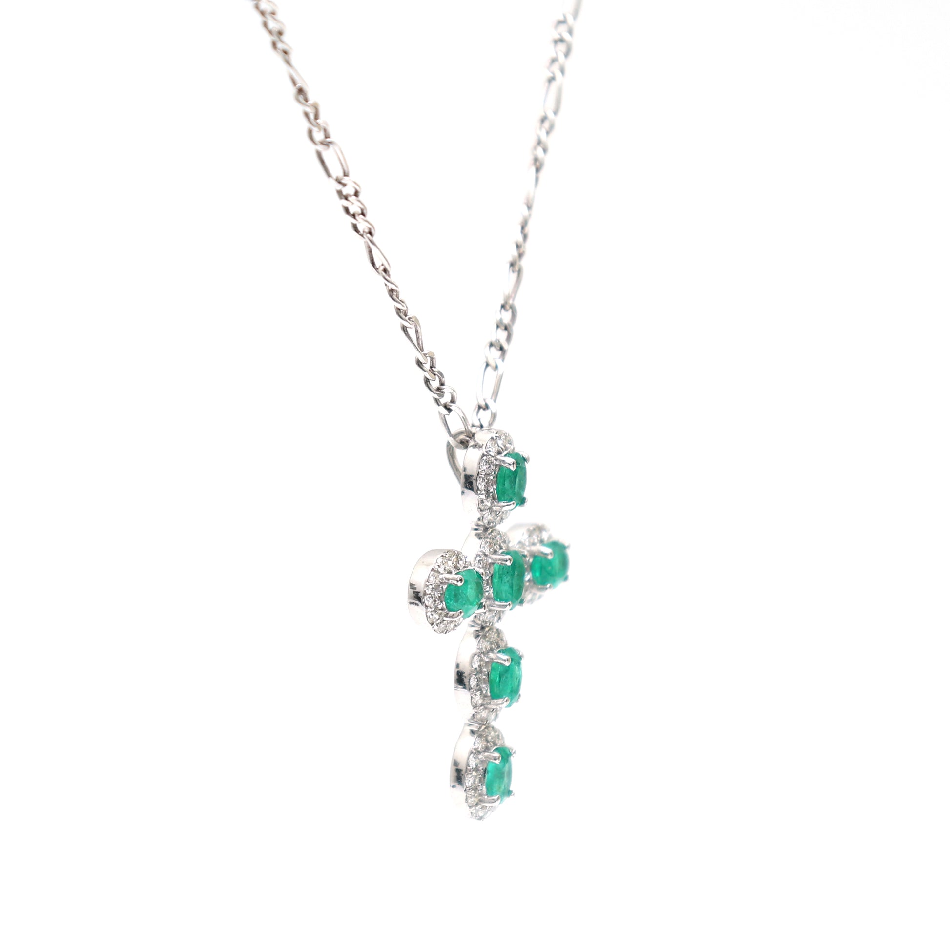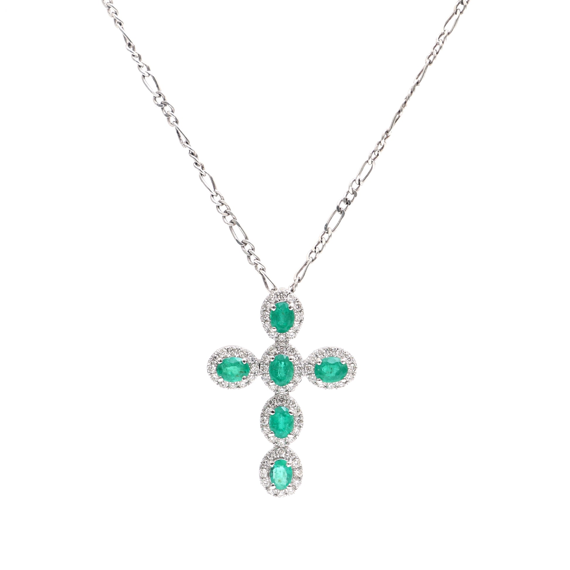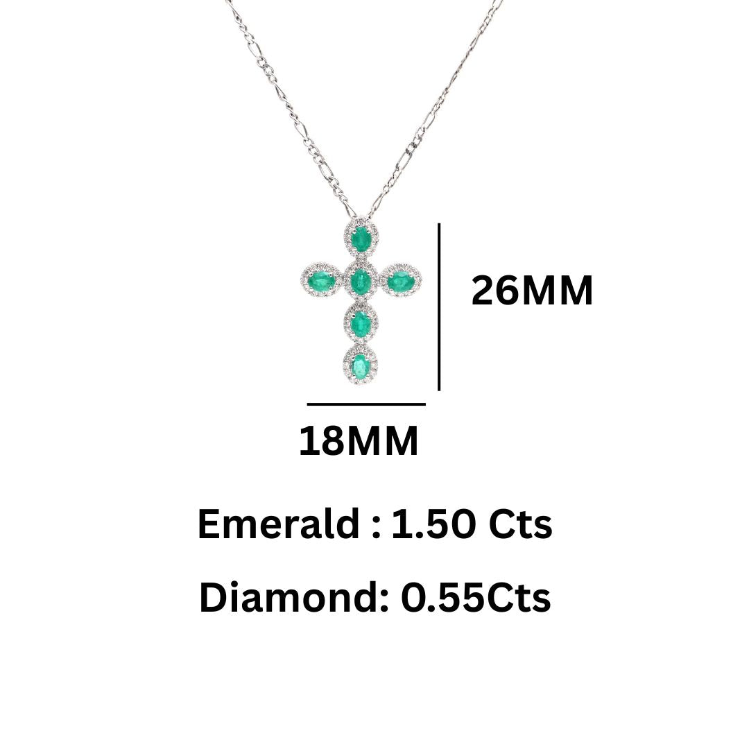 Emerald Diamond Cross Pendant Necklace Gold | Jewels Park
