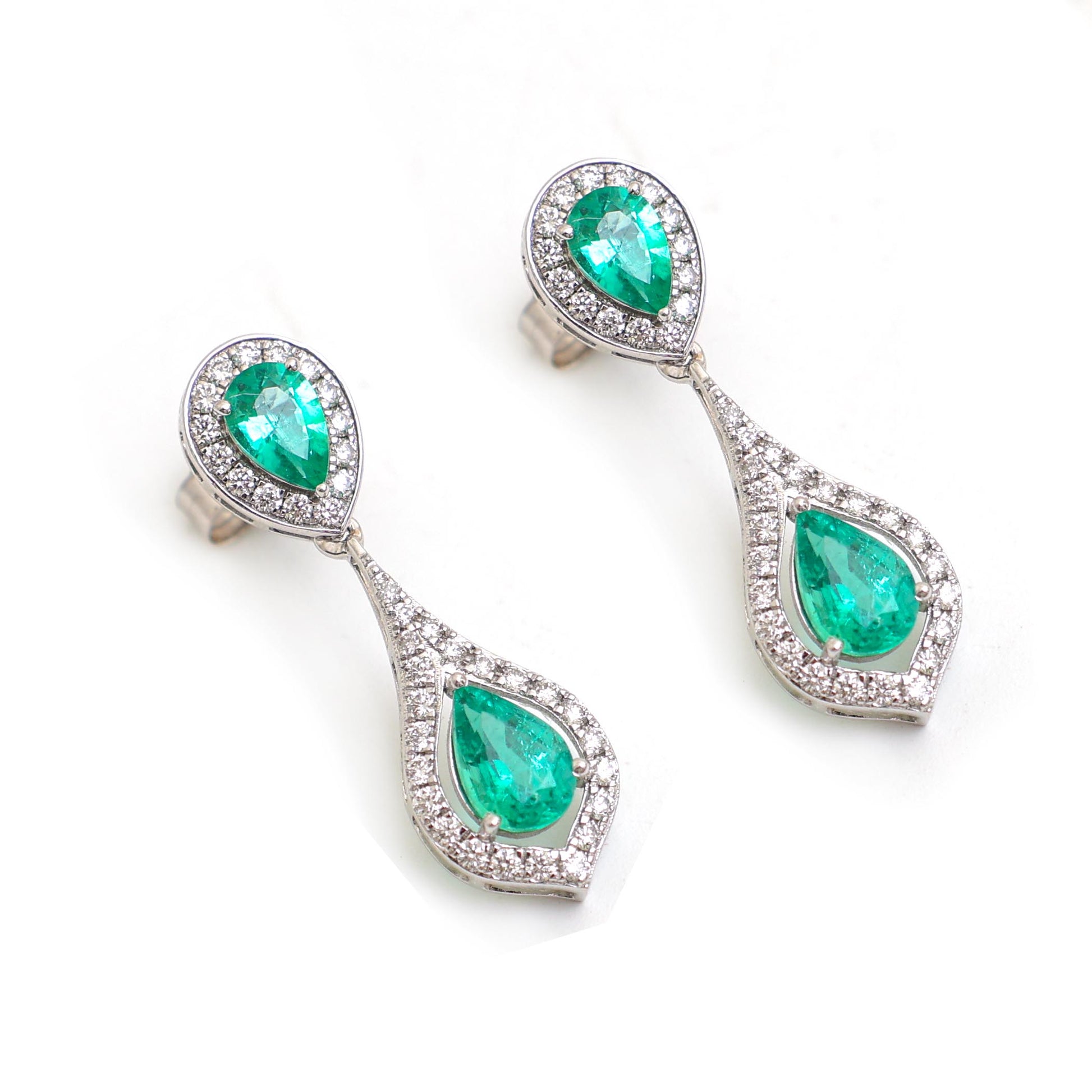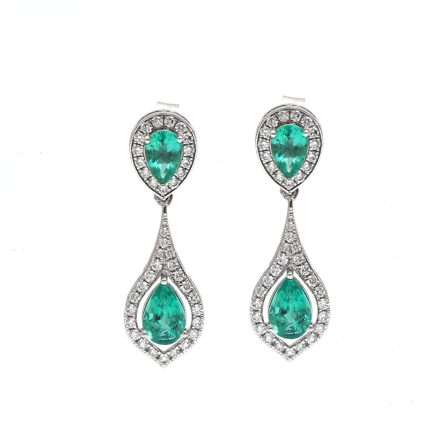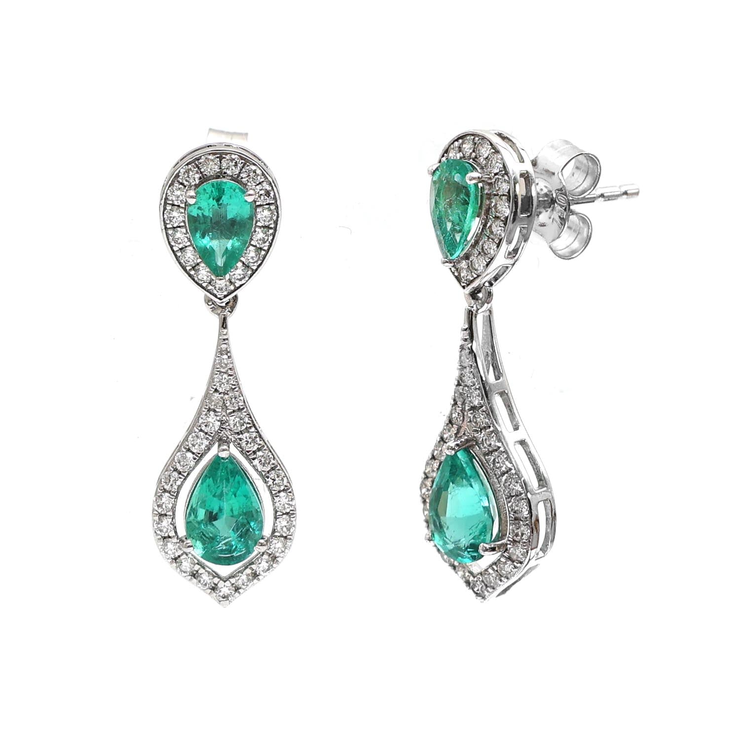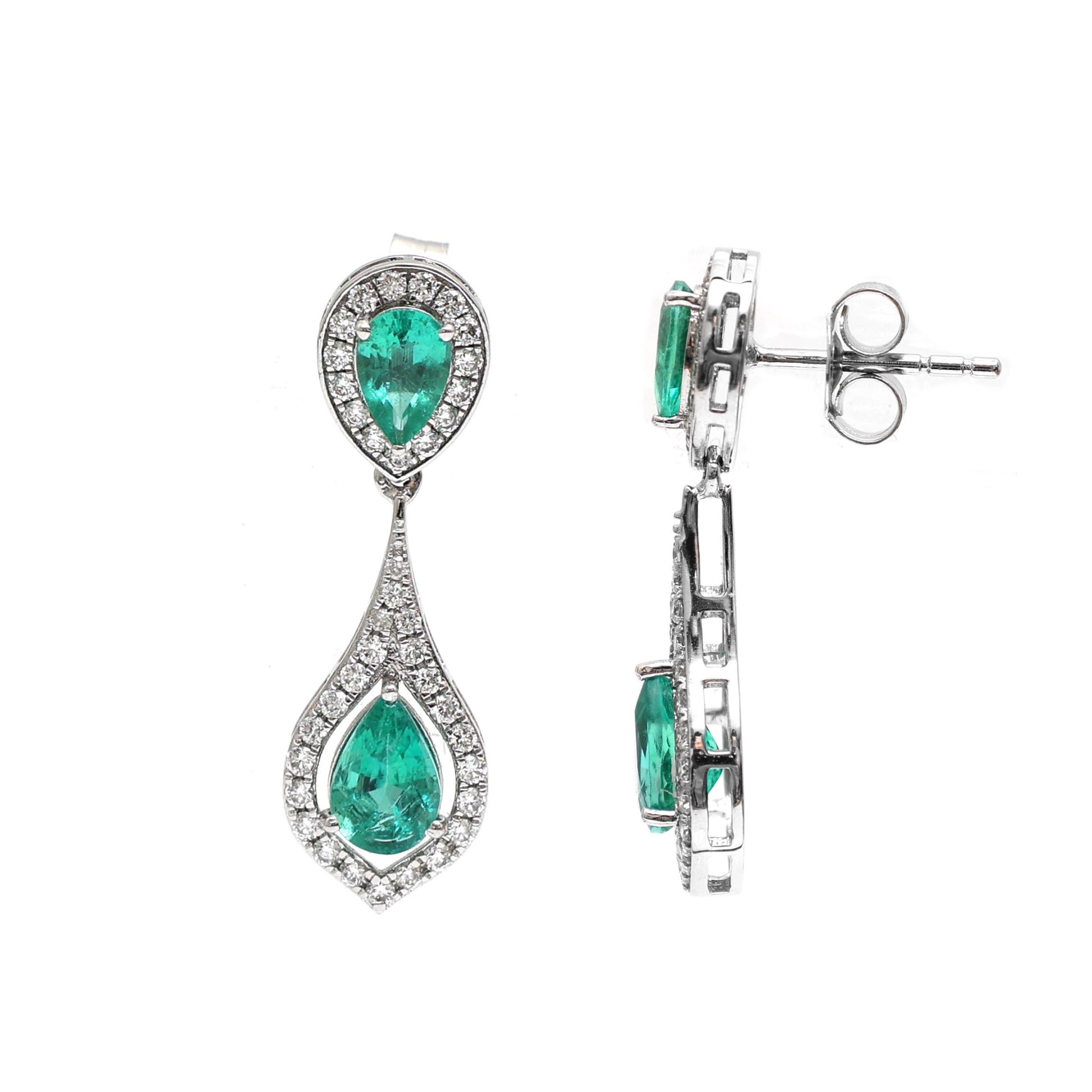 Emerald & Diamond Dangler Earrings Gold