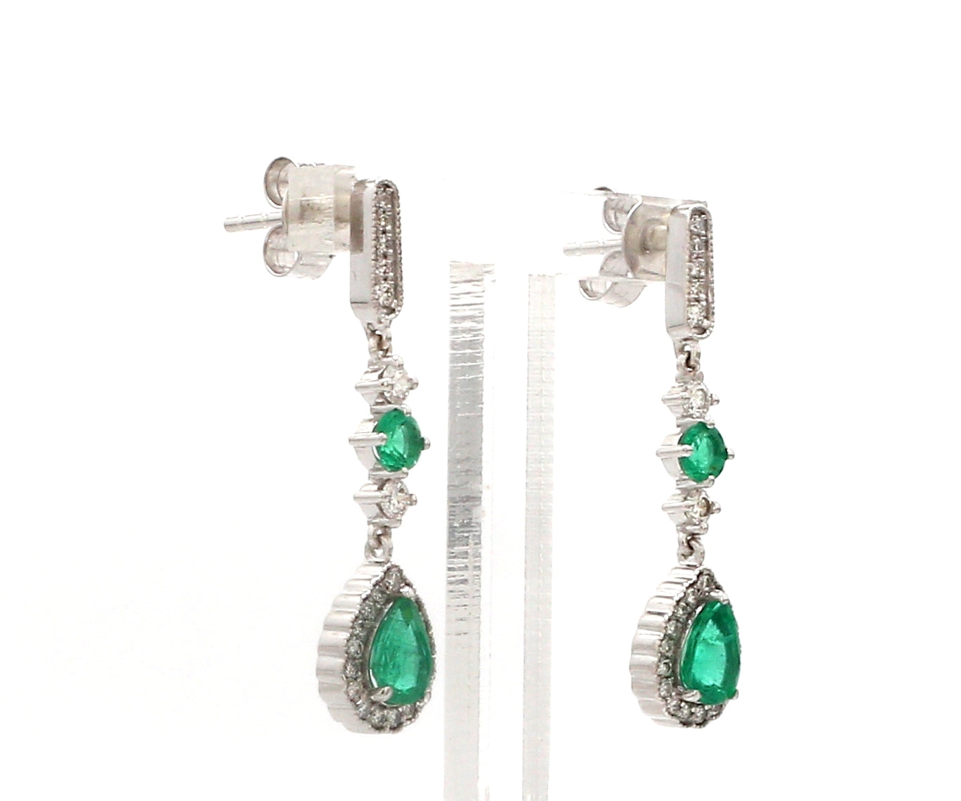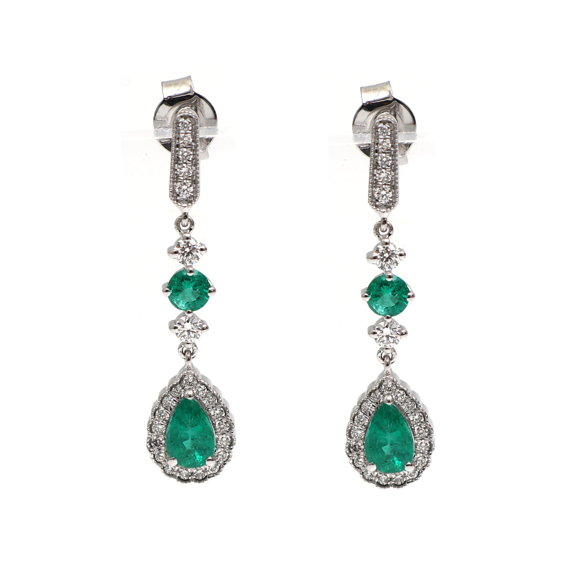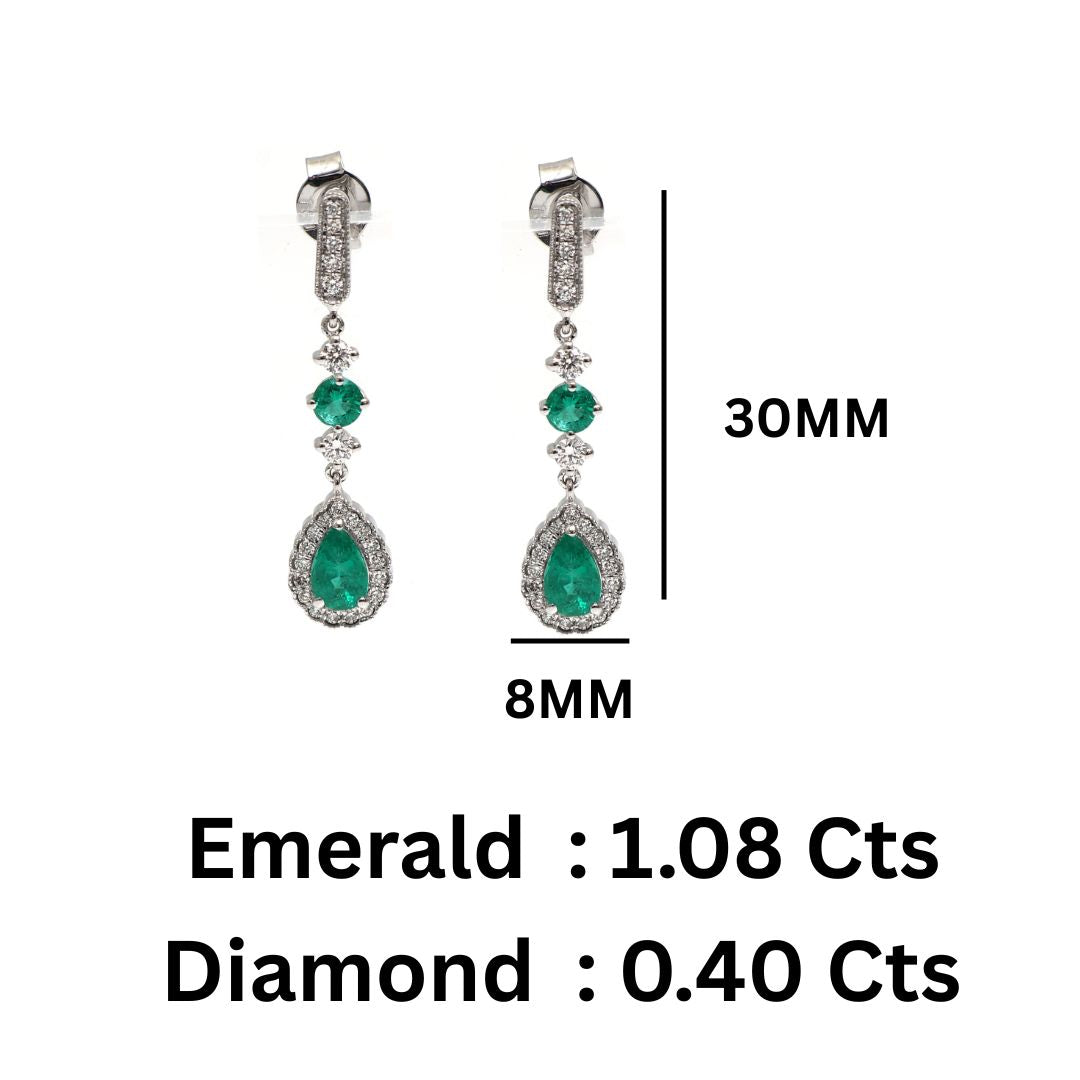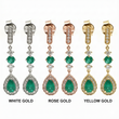 Art Deco Inspired Emerald Dangle Earrings Gold with Diamond Halo