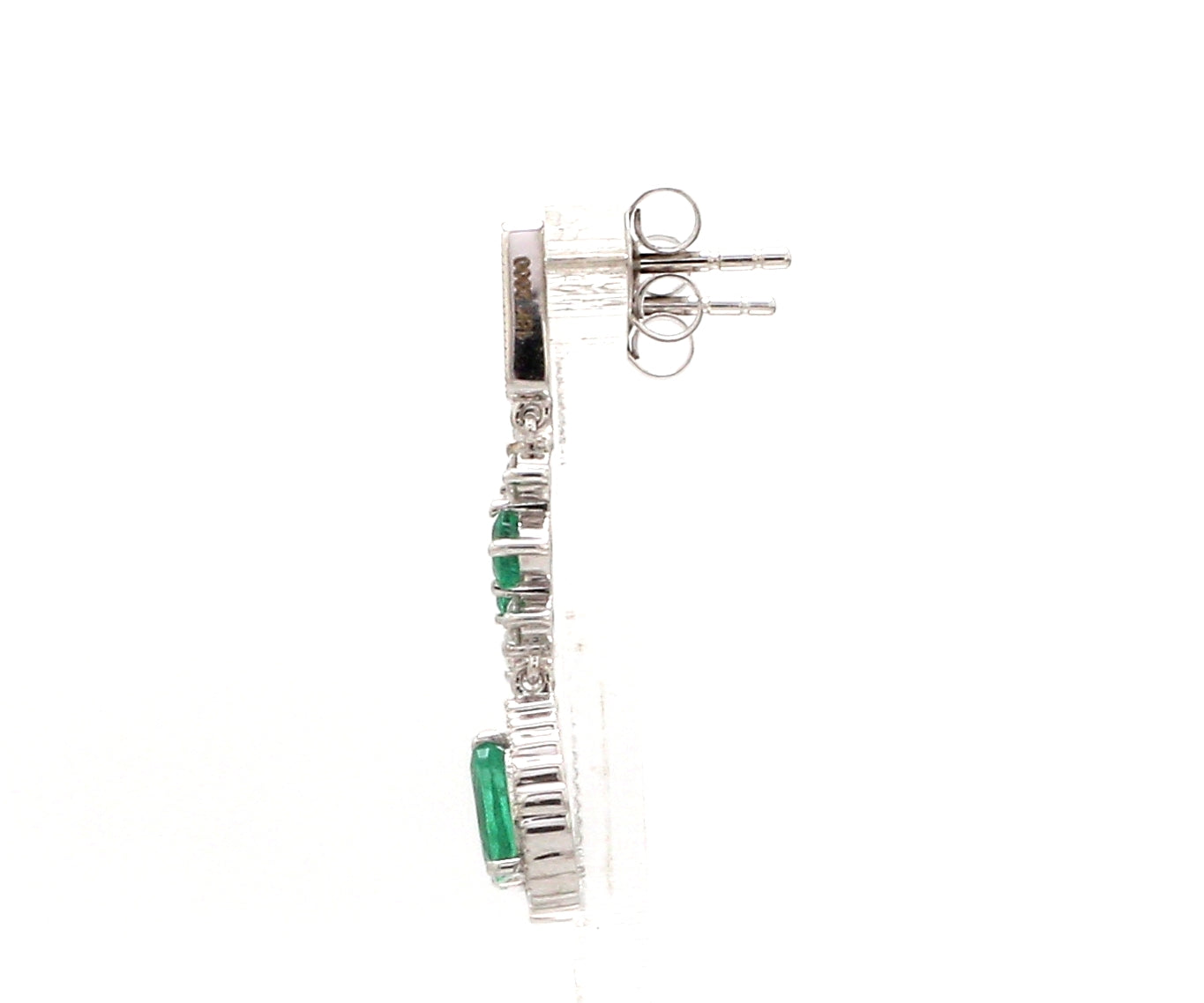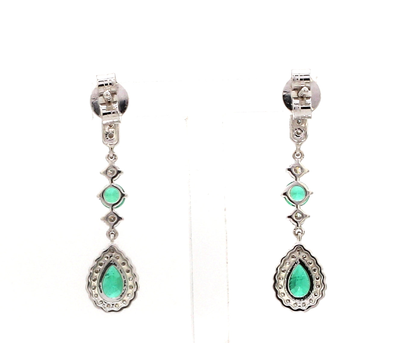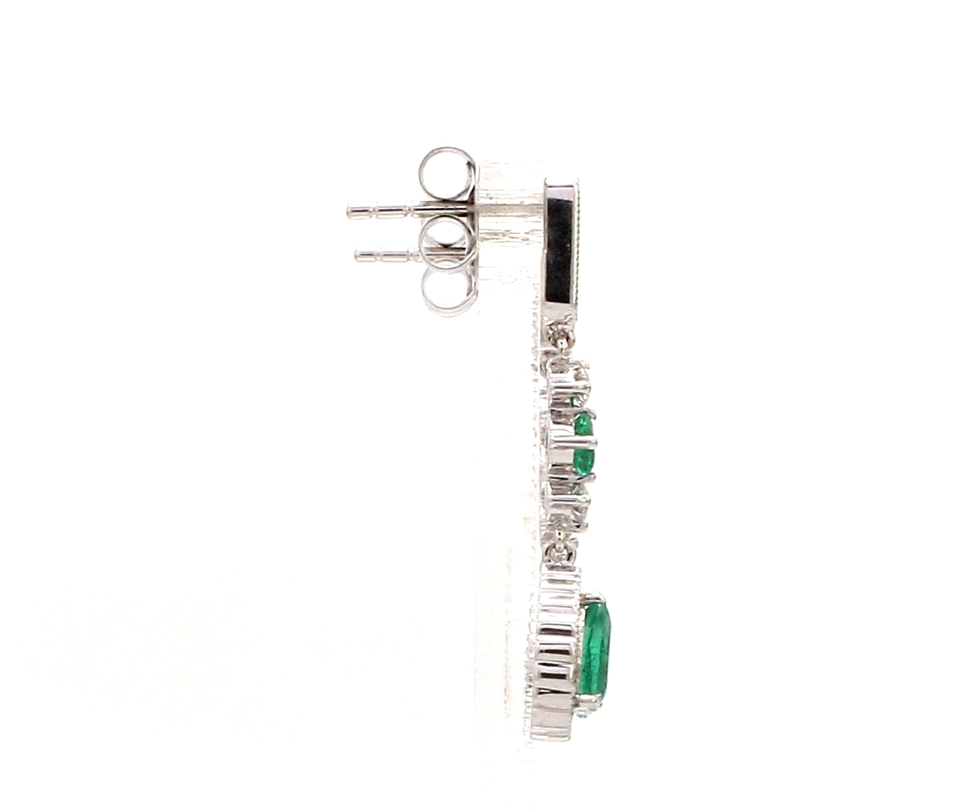 Art Deco Inspired Emerald Dangle Earrings Gold with Diamond Halo