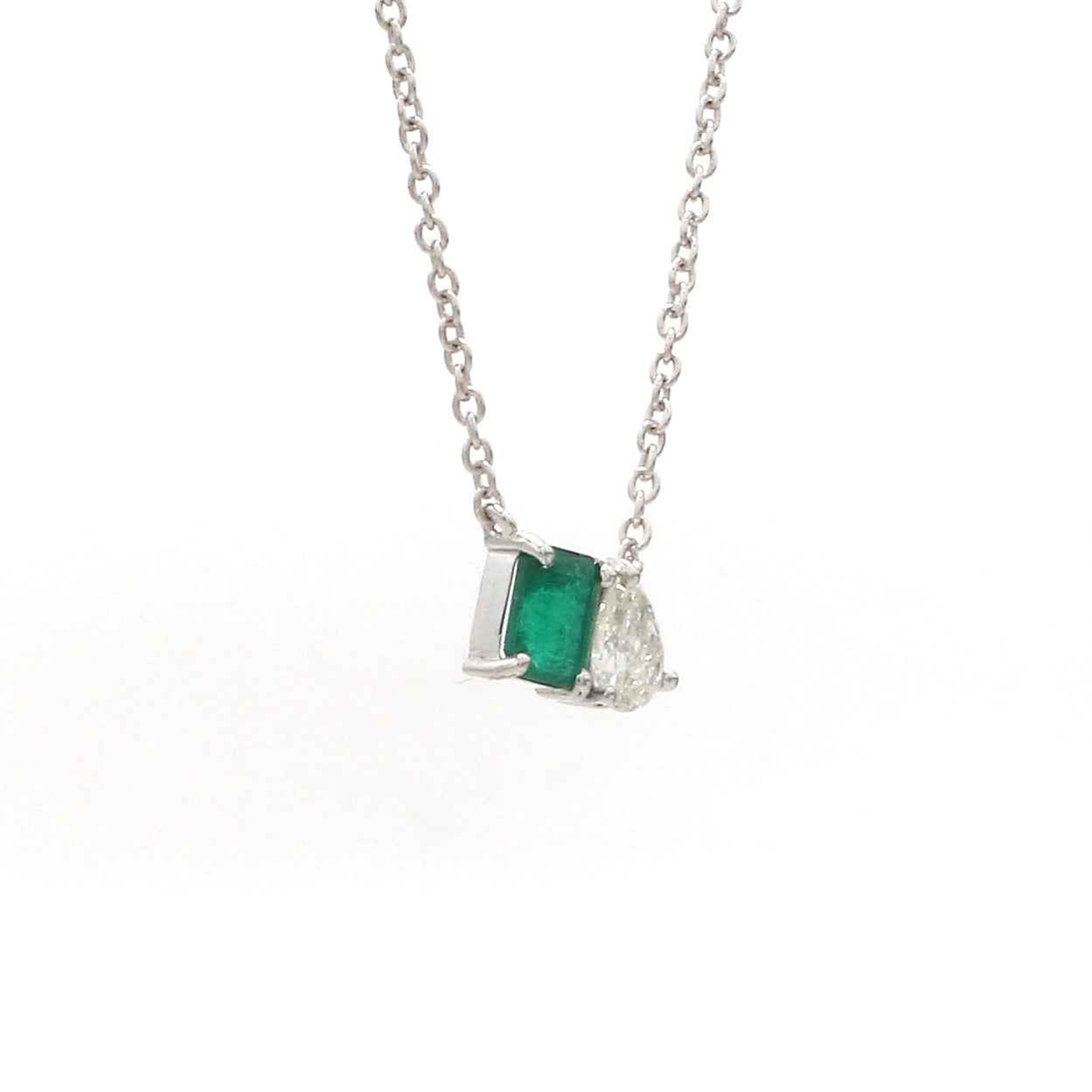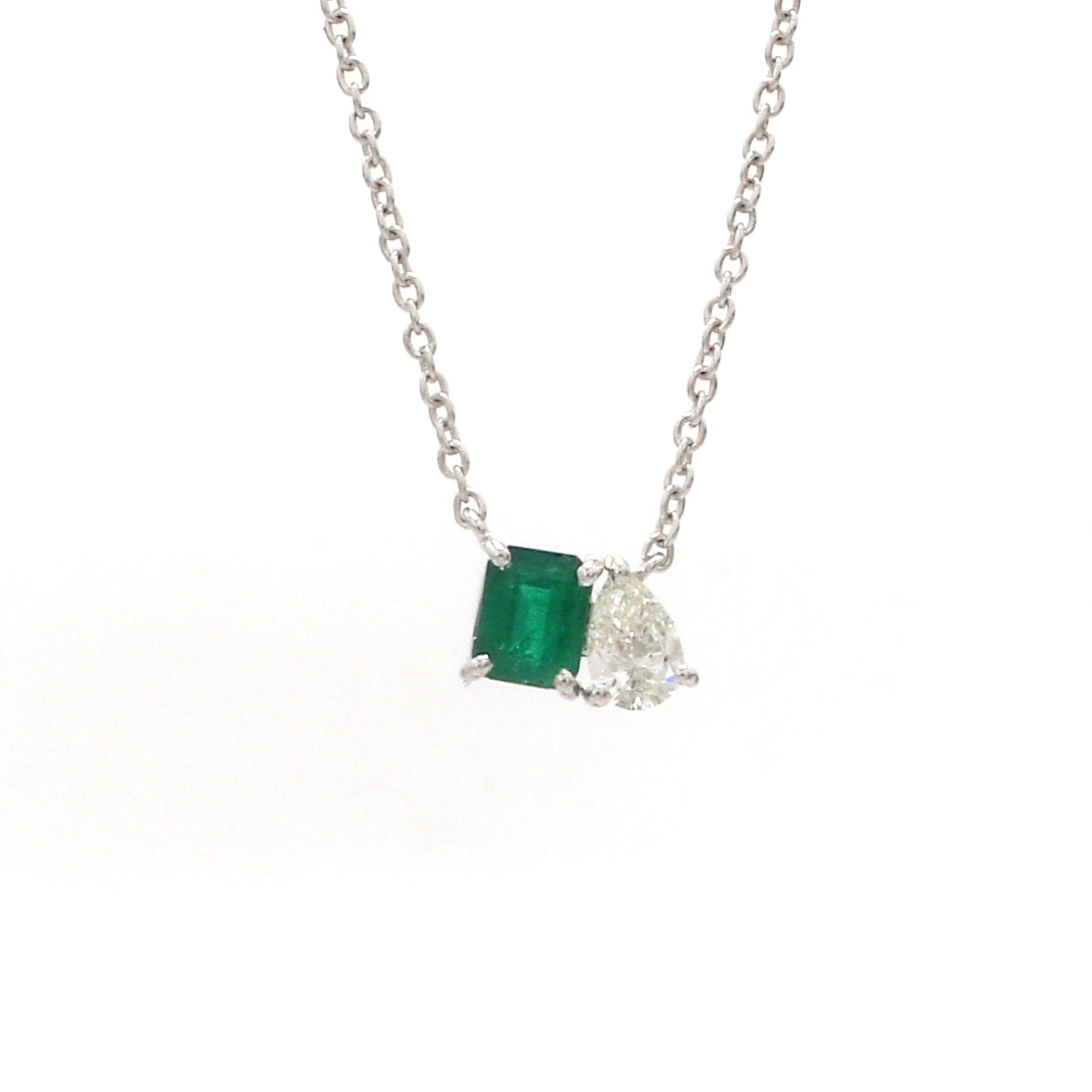 Emerald and Diamond Toi Et Moi Pendant Necklace Gold