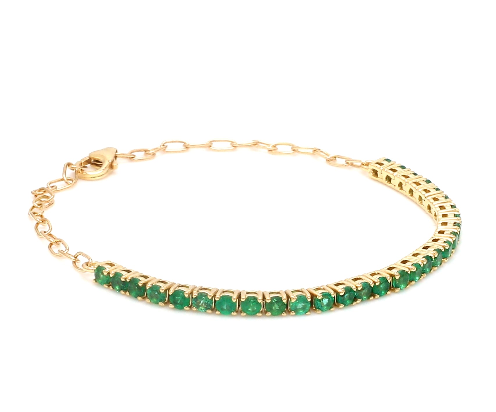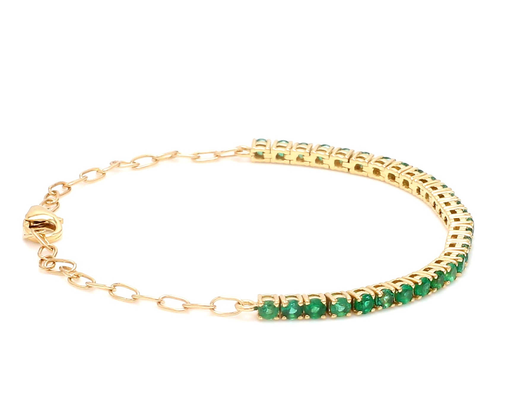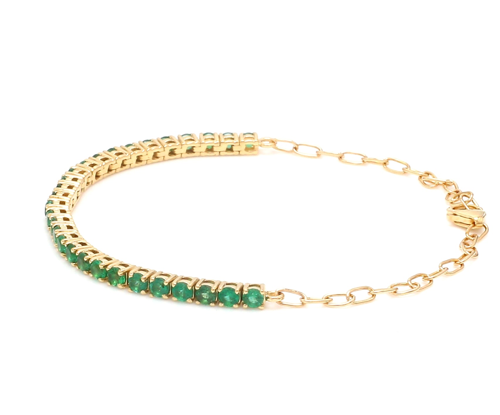 Emerald Half Tennis Bracelet Gold | Emerald half paperclip Chain Bracelet Gold