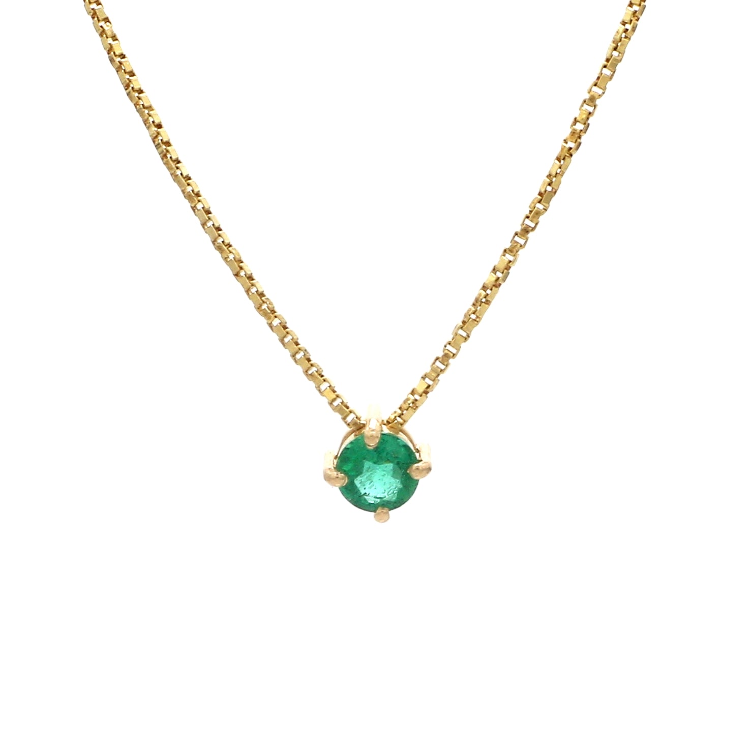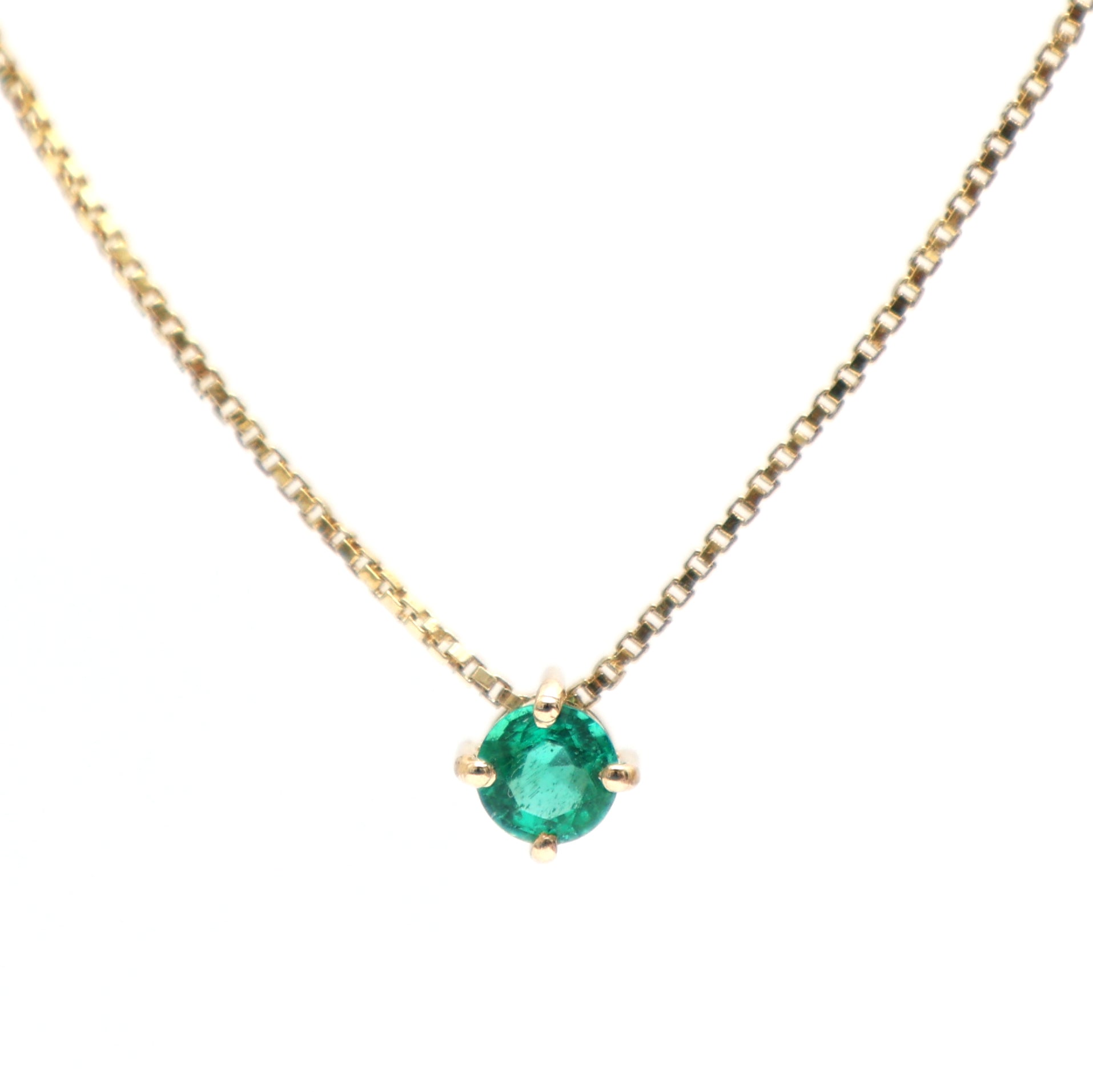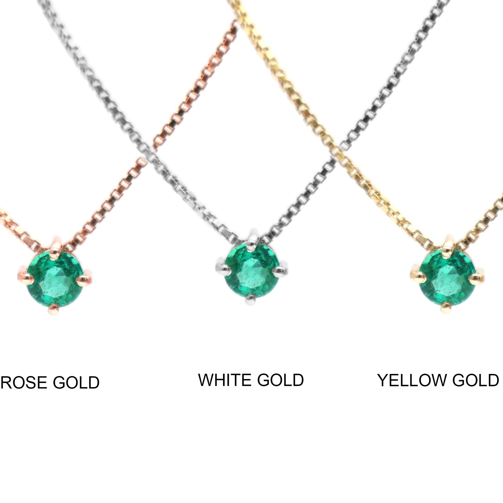 Emerald Mini Round Necklace Gold – Natural Round Emerald Pendant – Minimal Dainty Fine Jewelry