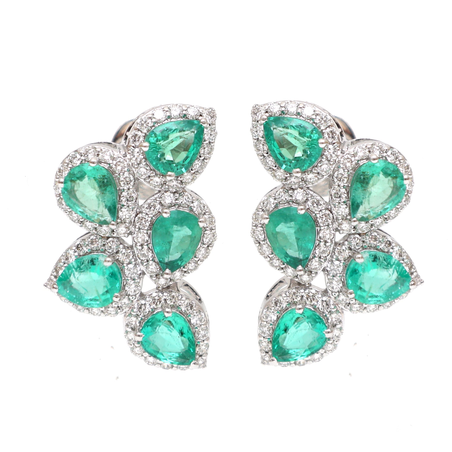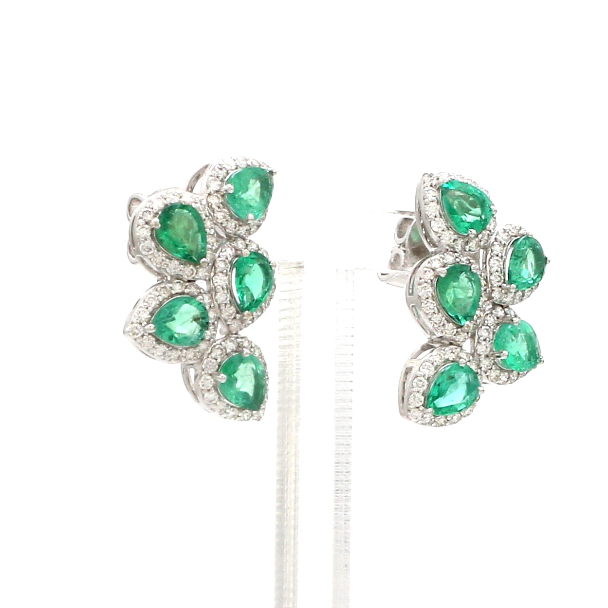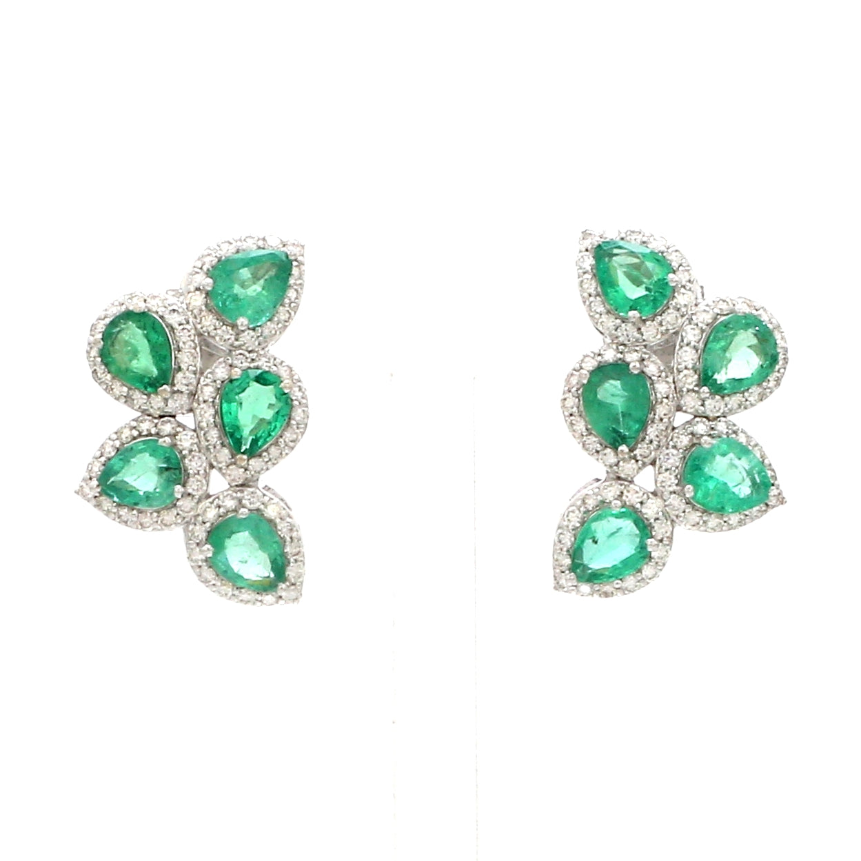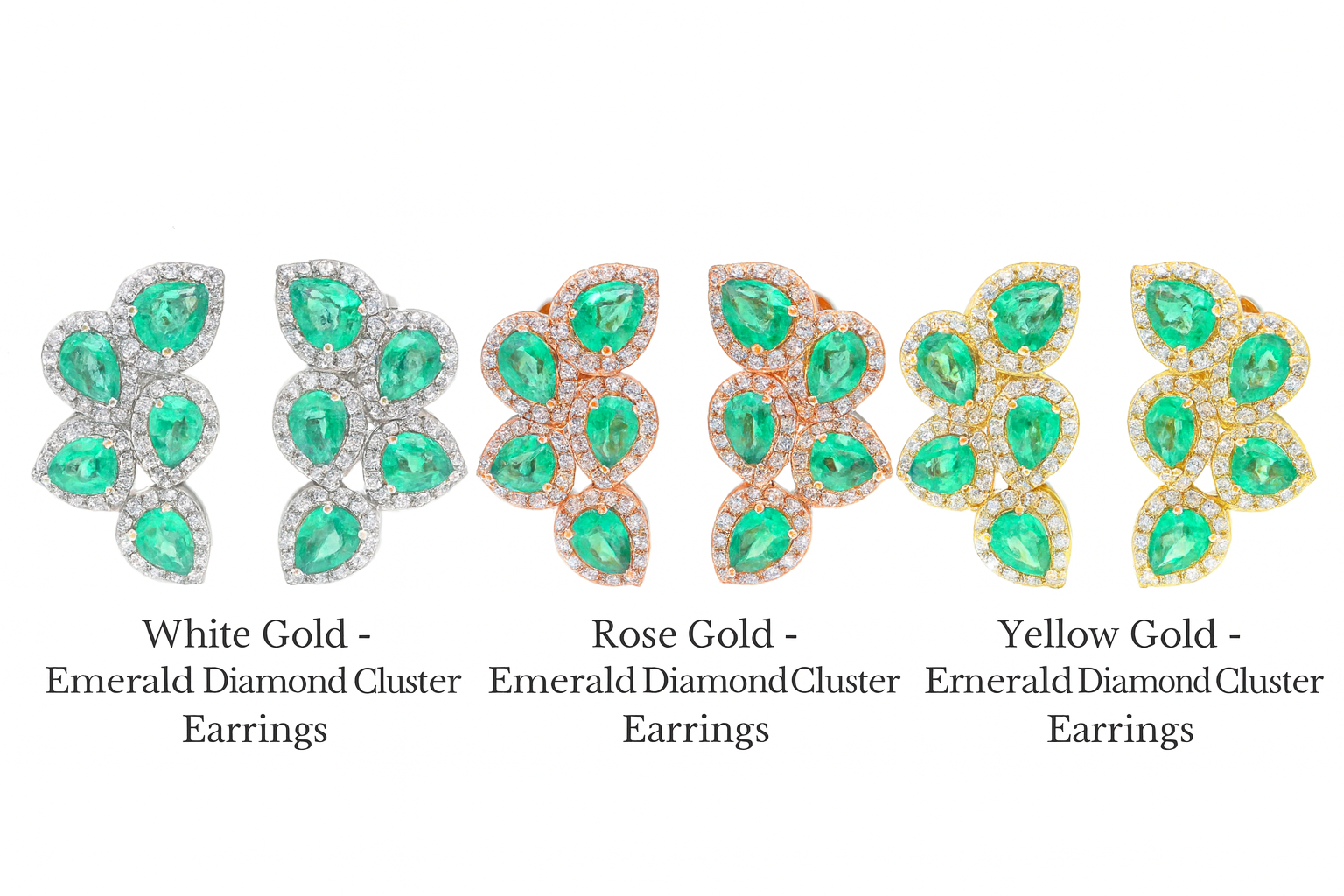 Emerald Pear Cluster Diamond Earrings Gold – Jewels Park
