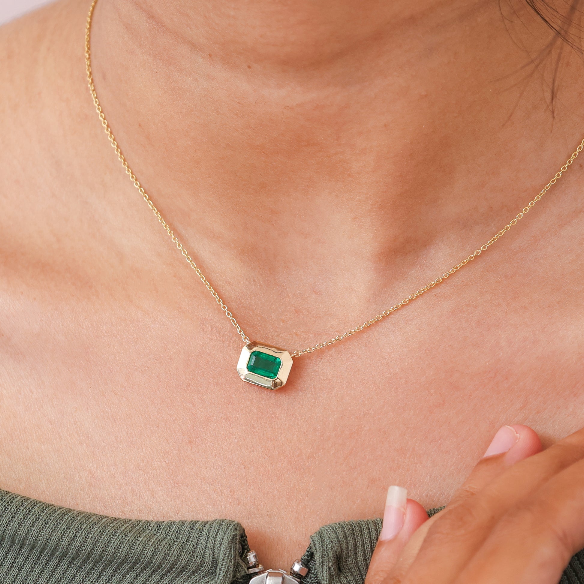 Emerald Pendant Necklace Gold | Emerald Cut Emerald Pendant