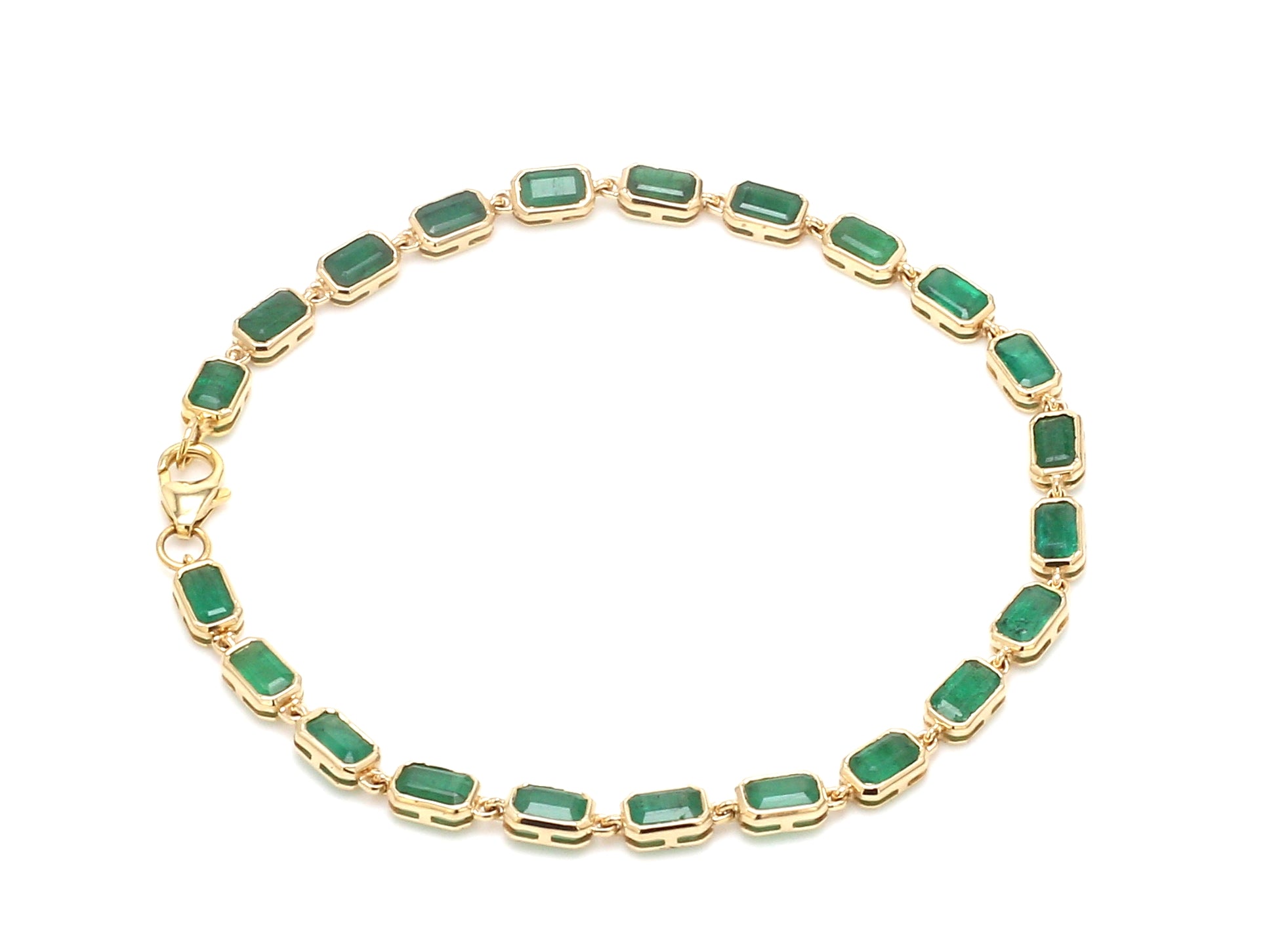 Emerald Tennis Bracelet Gold | Natural Emerald Octagon Cut Bracelet | Jewels Park