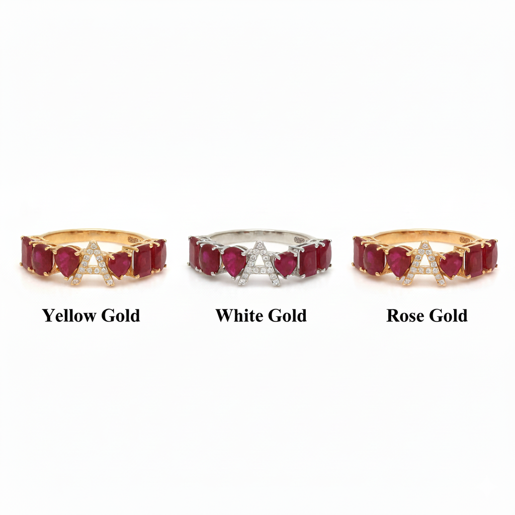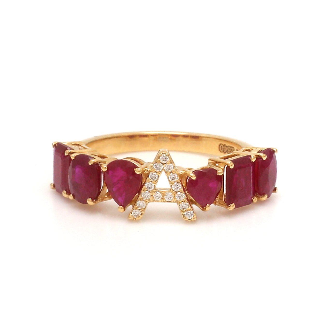 Gold Ruby & Diamond Initial 'A' Ring | Personalized Letter Ruby Ring Gold