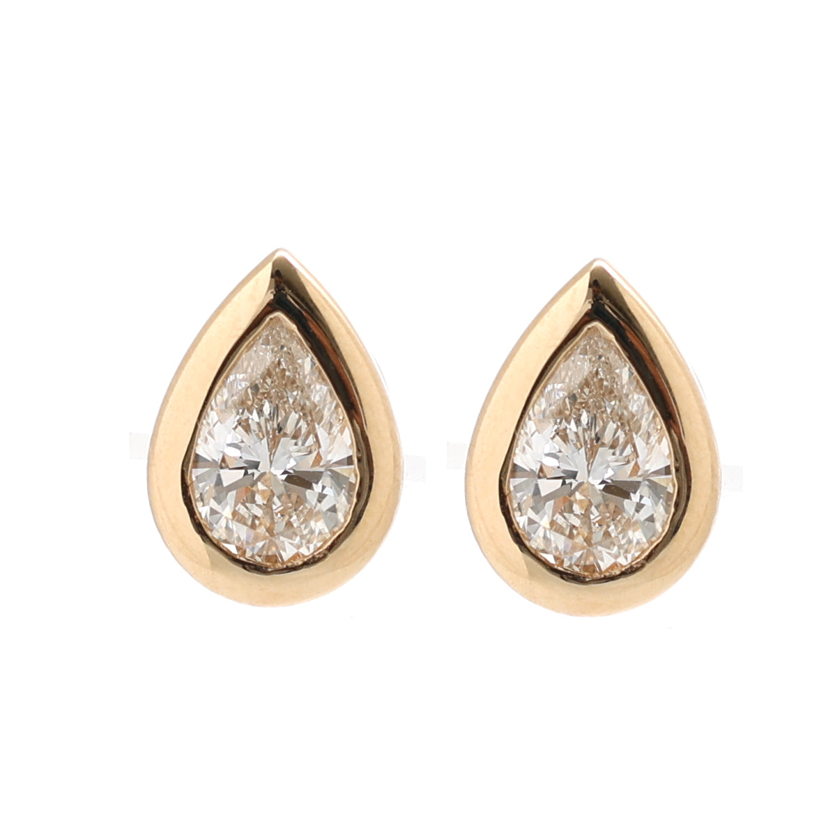 Lab Grown Diamond Pear Chunky Bezel Set Stud Earrings in 14K 18K Gold