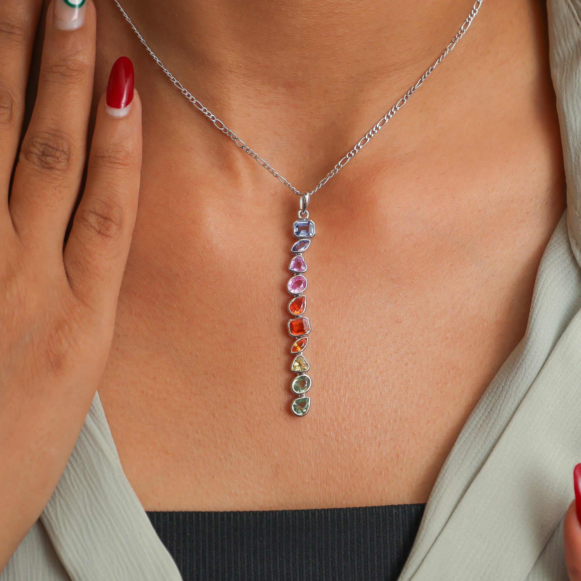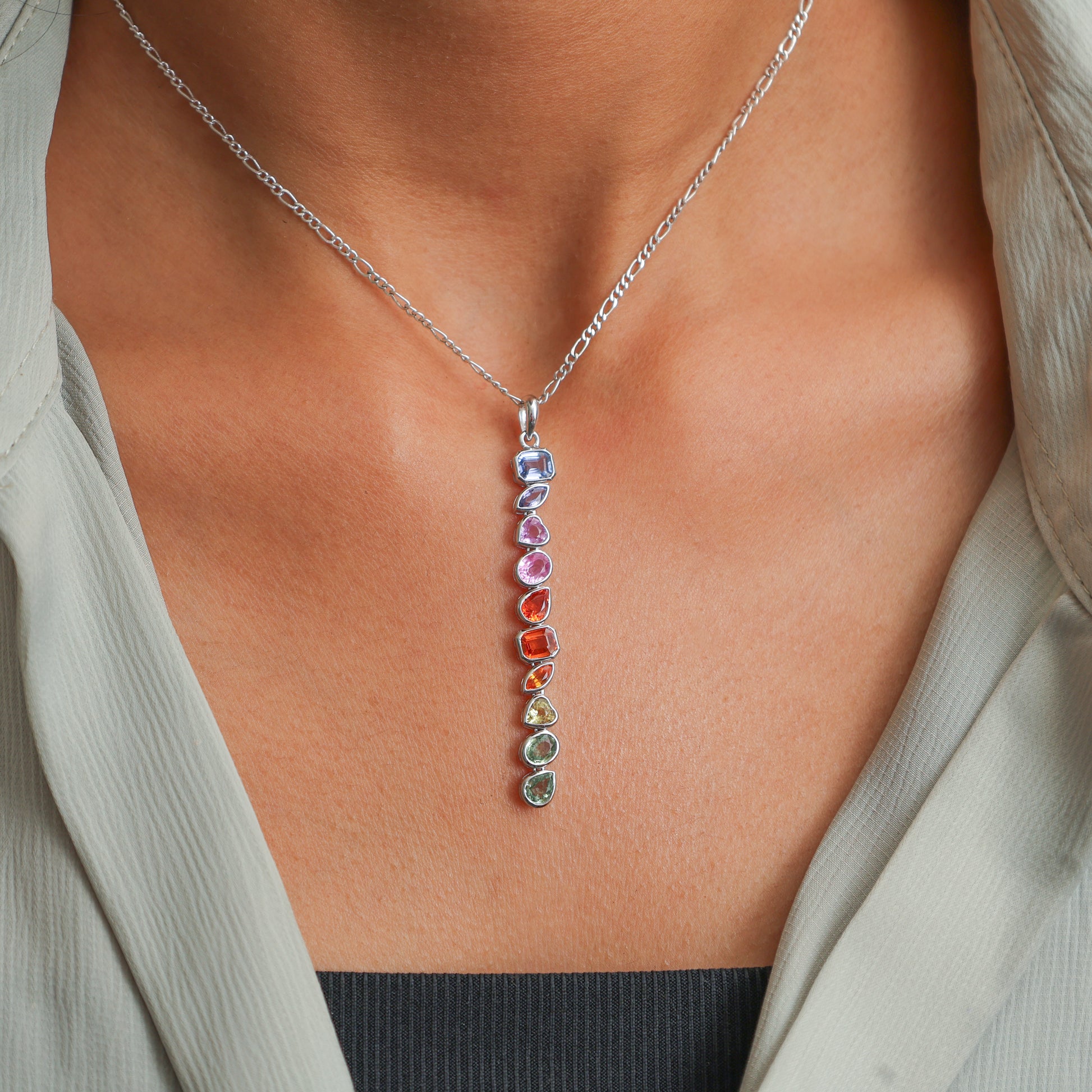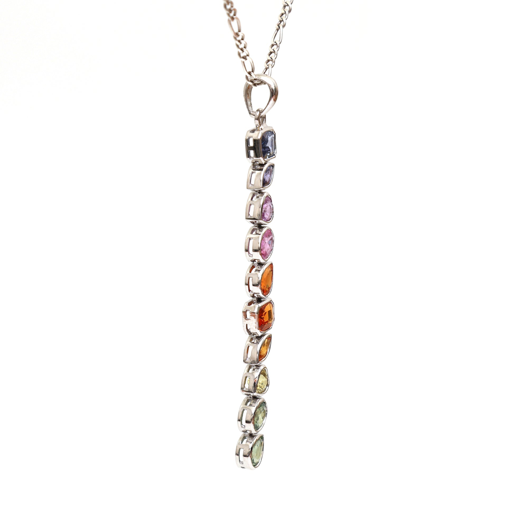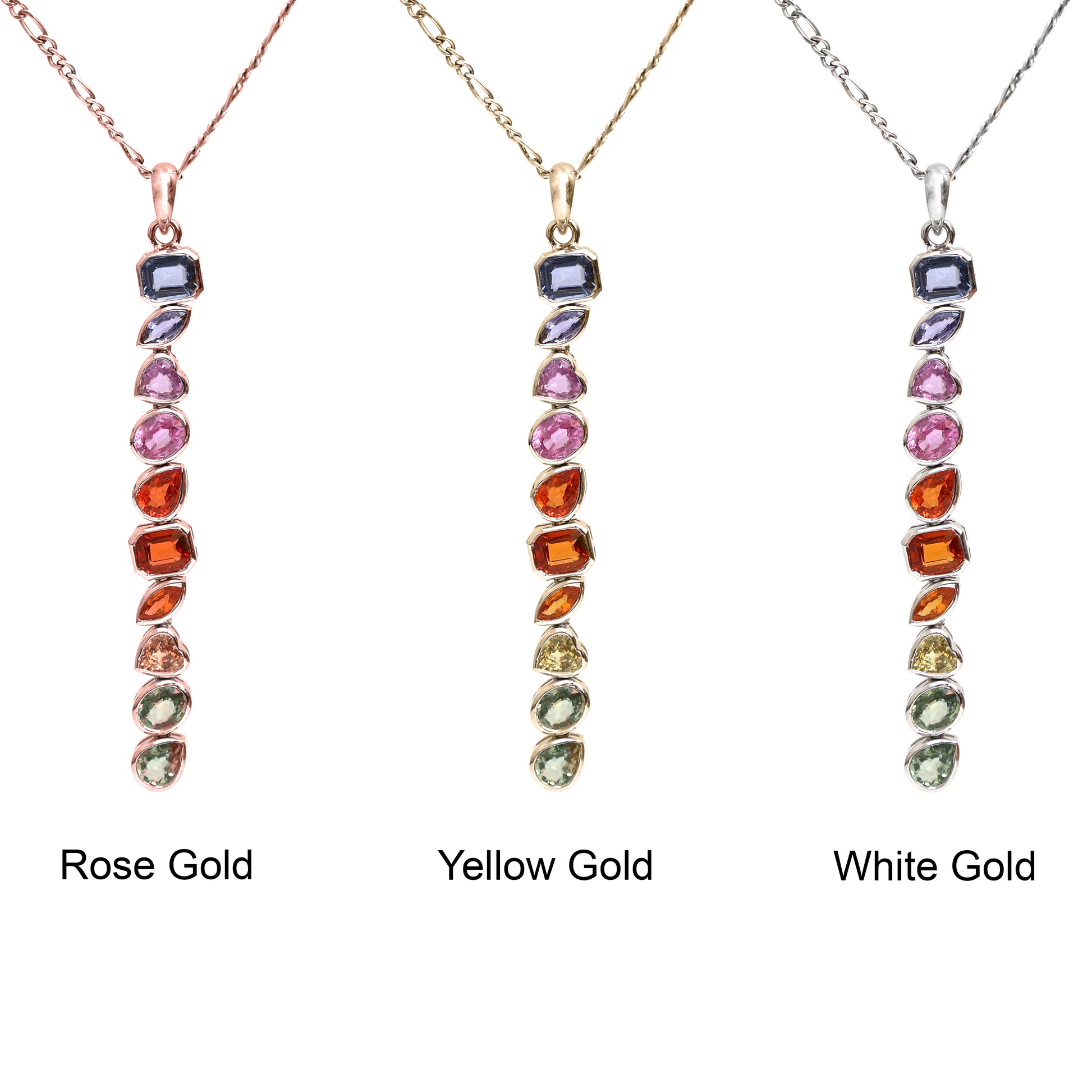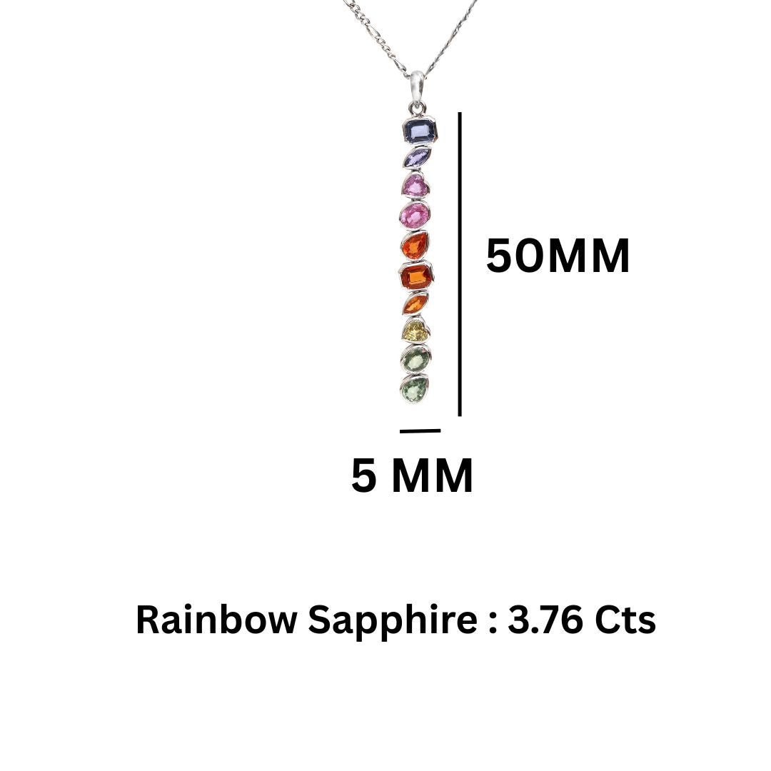 Natural Rainbow Sapphire Long Pendant Gold