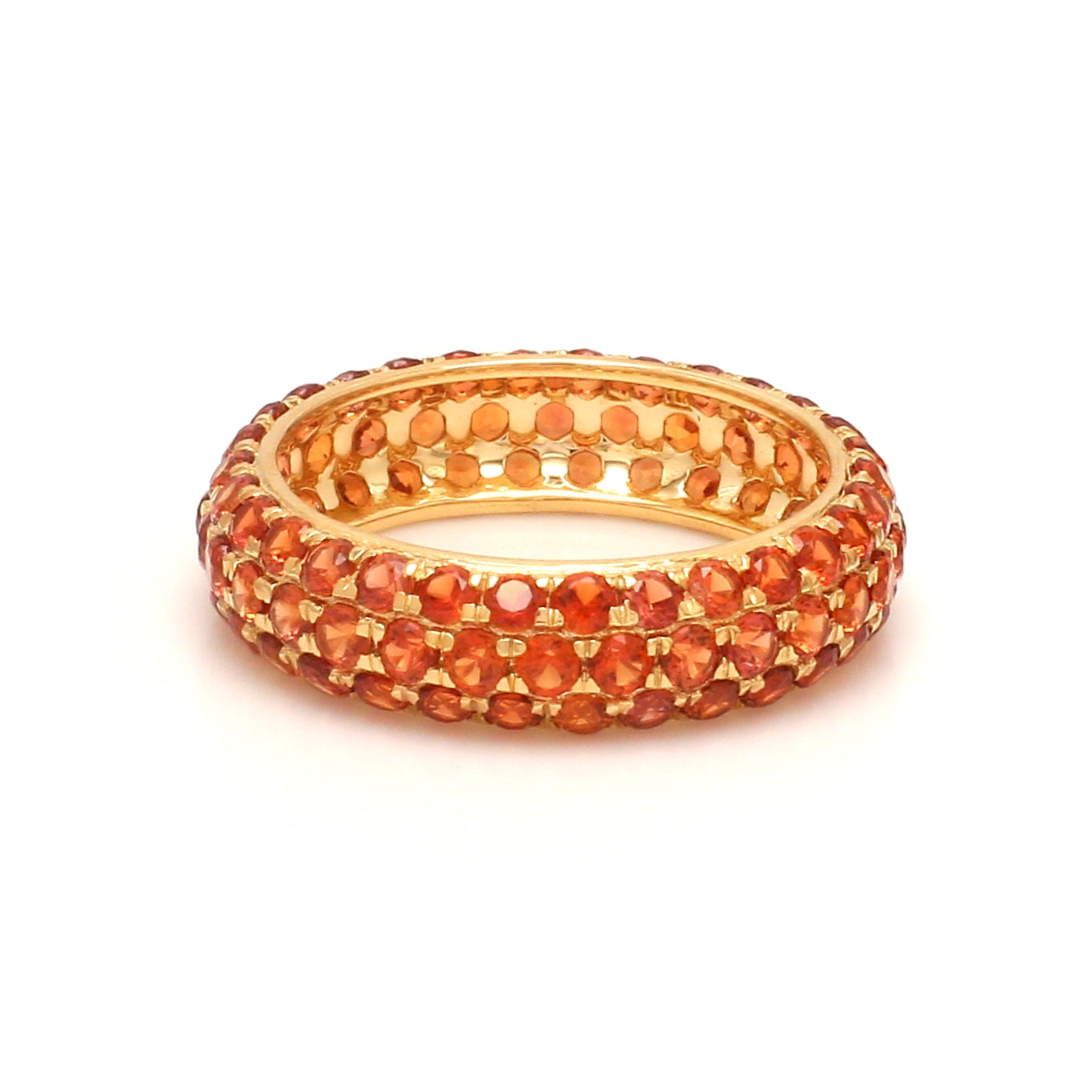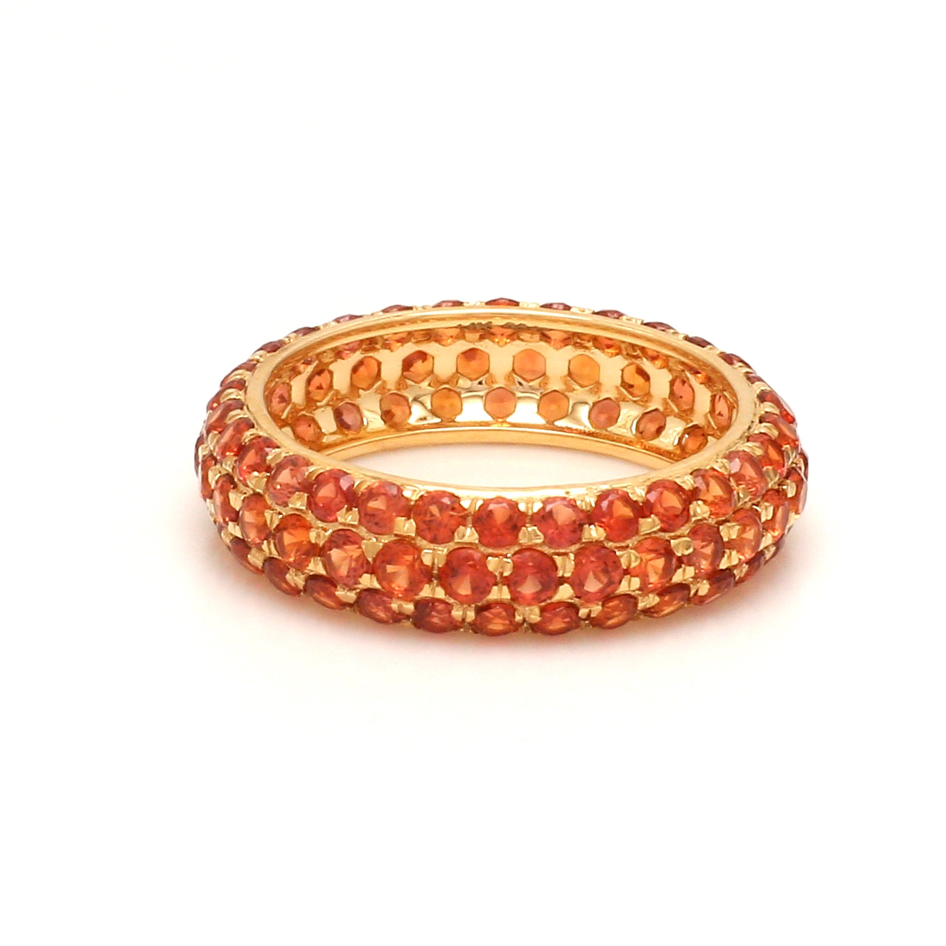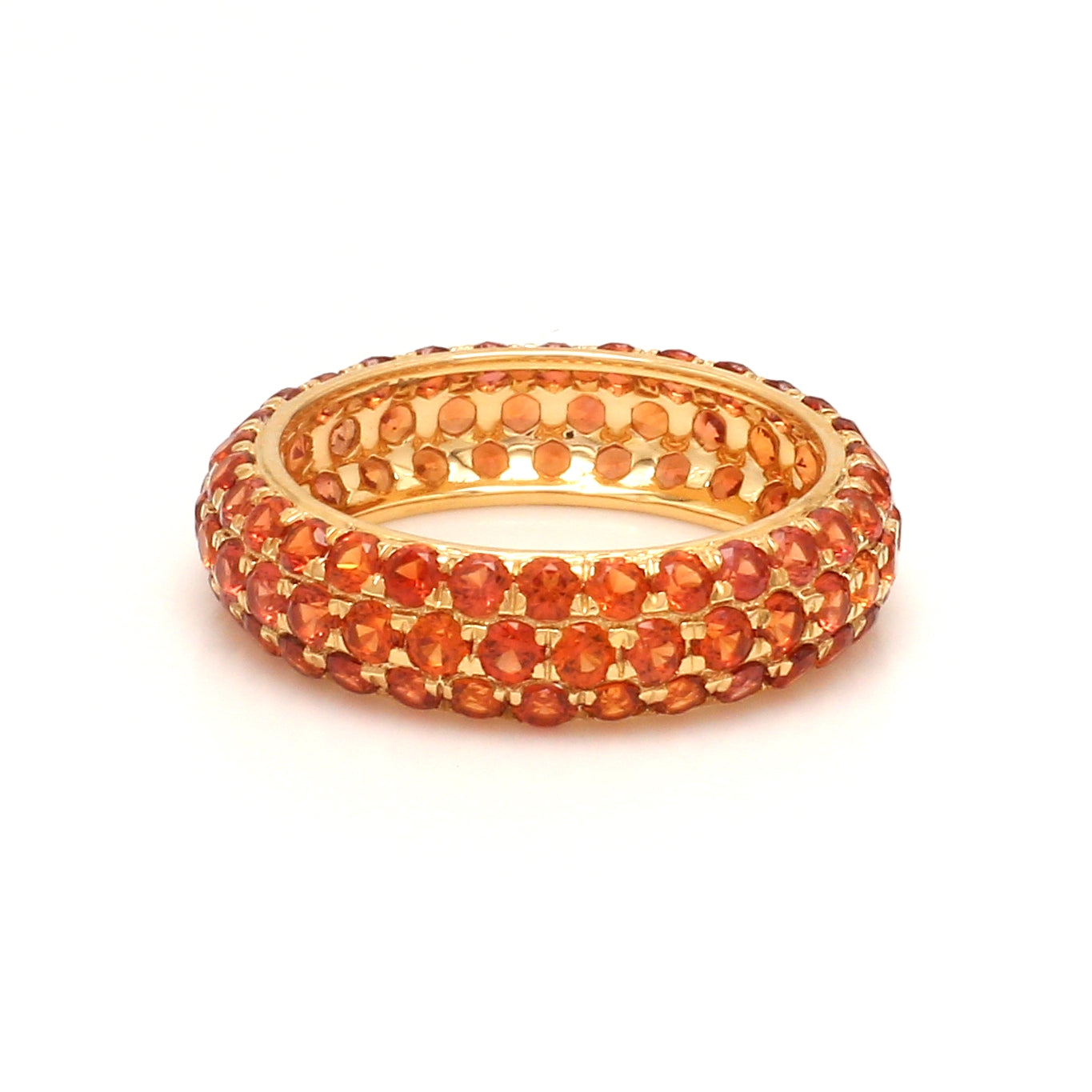 Orange Sapphire Eternity Band Ring in Solid Gold – Pave Setting