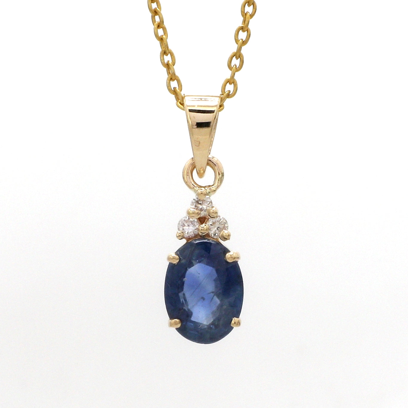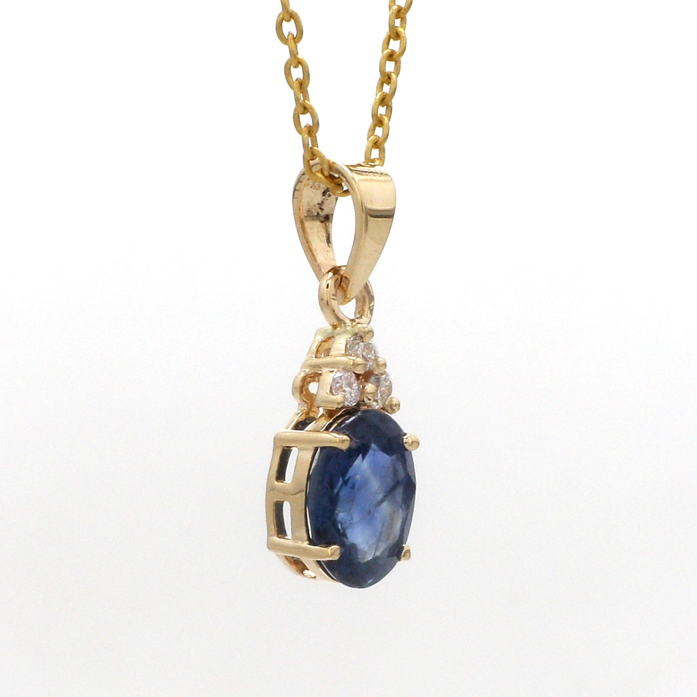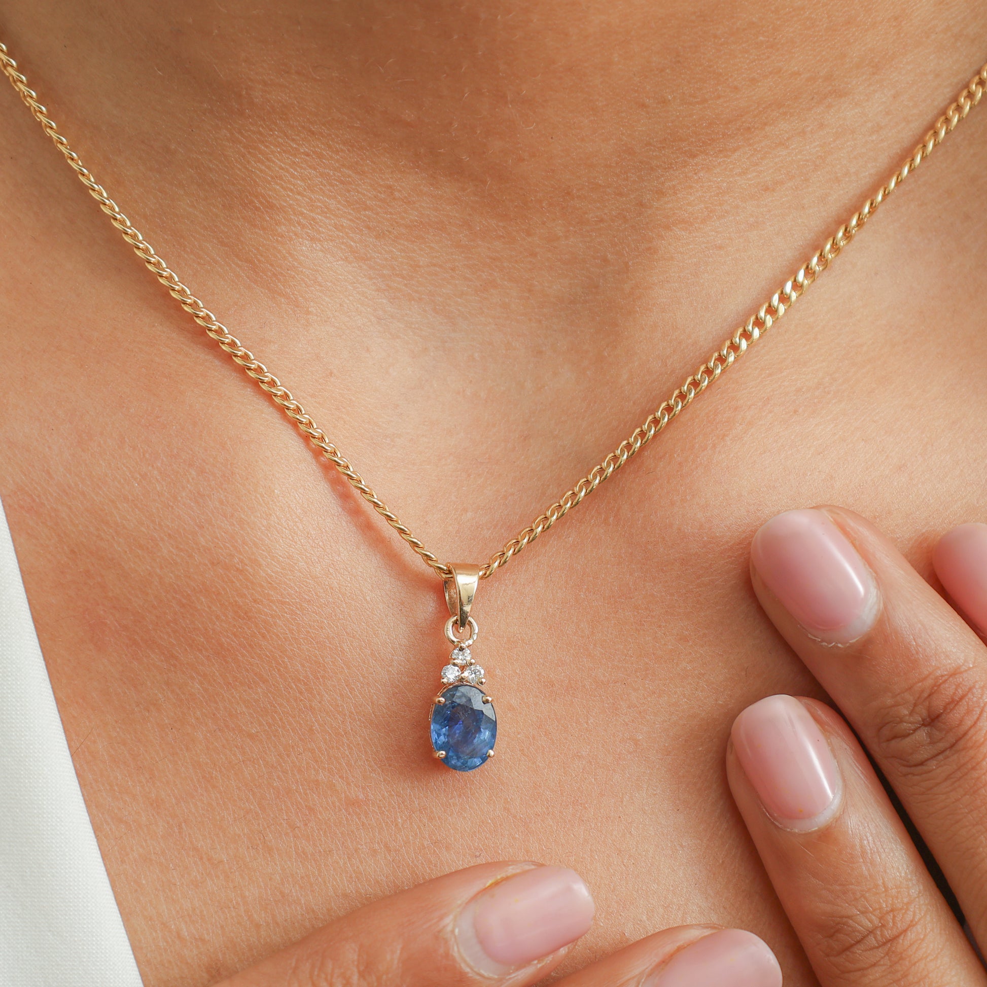 Oval Blue Sapphire & Diamond Accent Pendant Necklace | Minimal Cluster Drop | Jewels Park