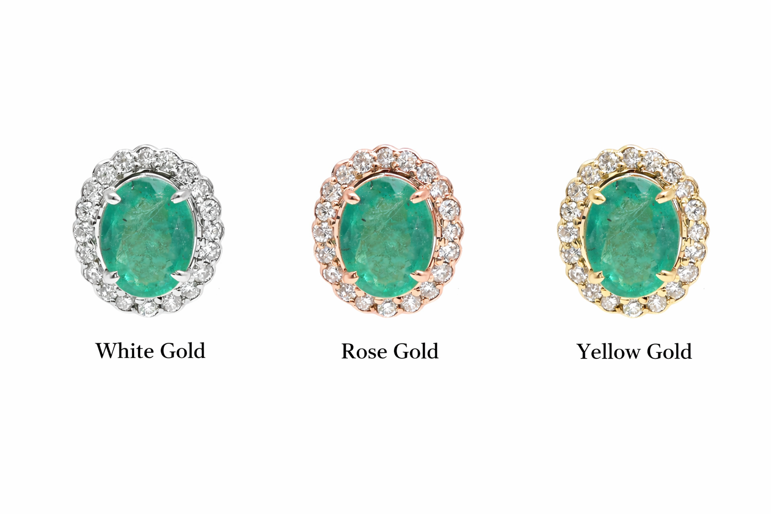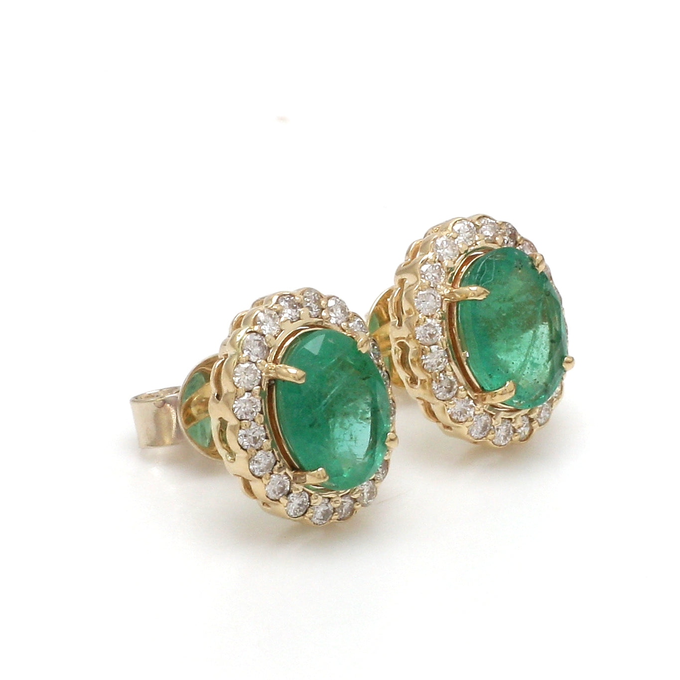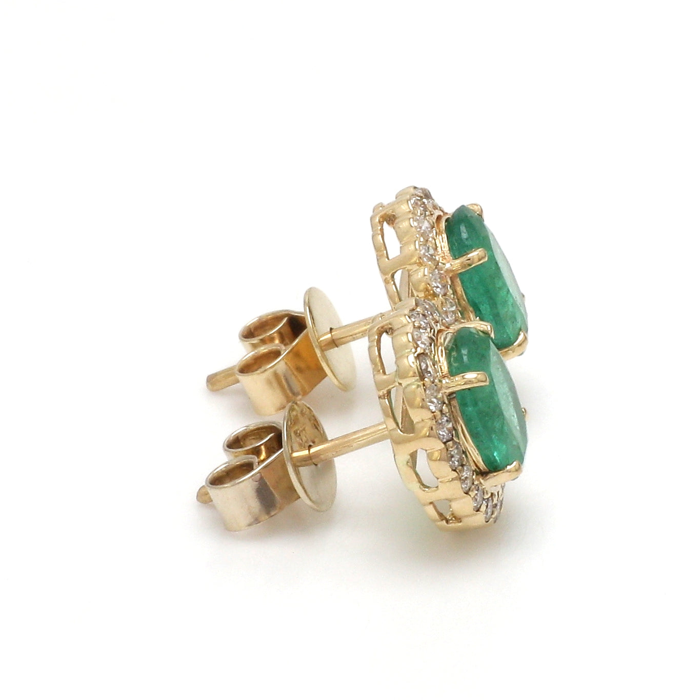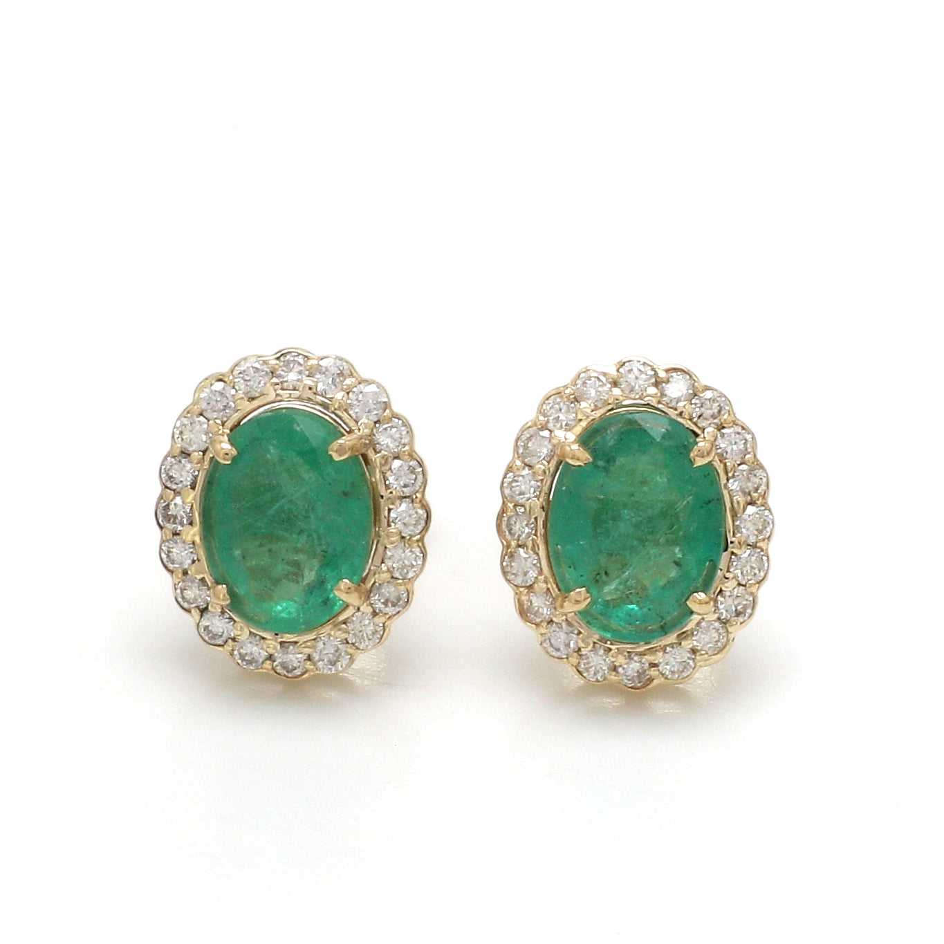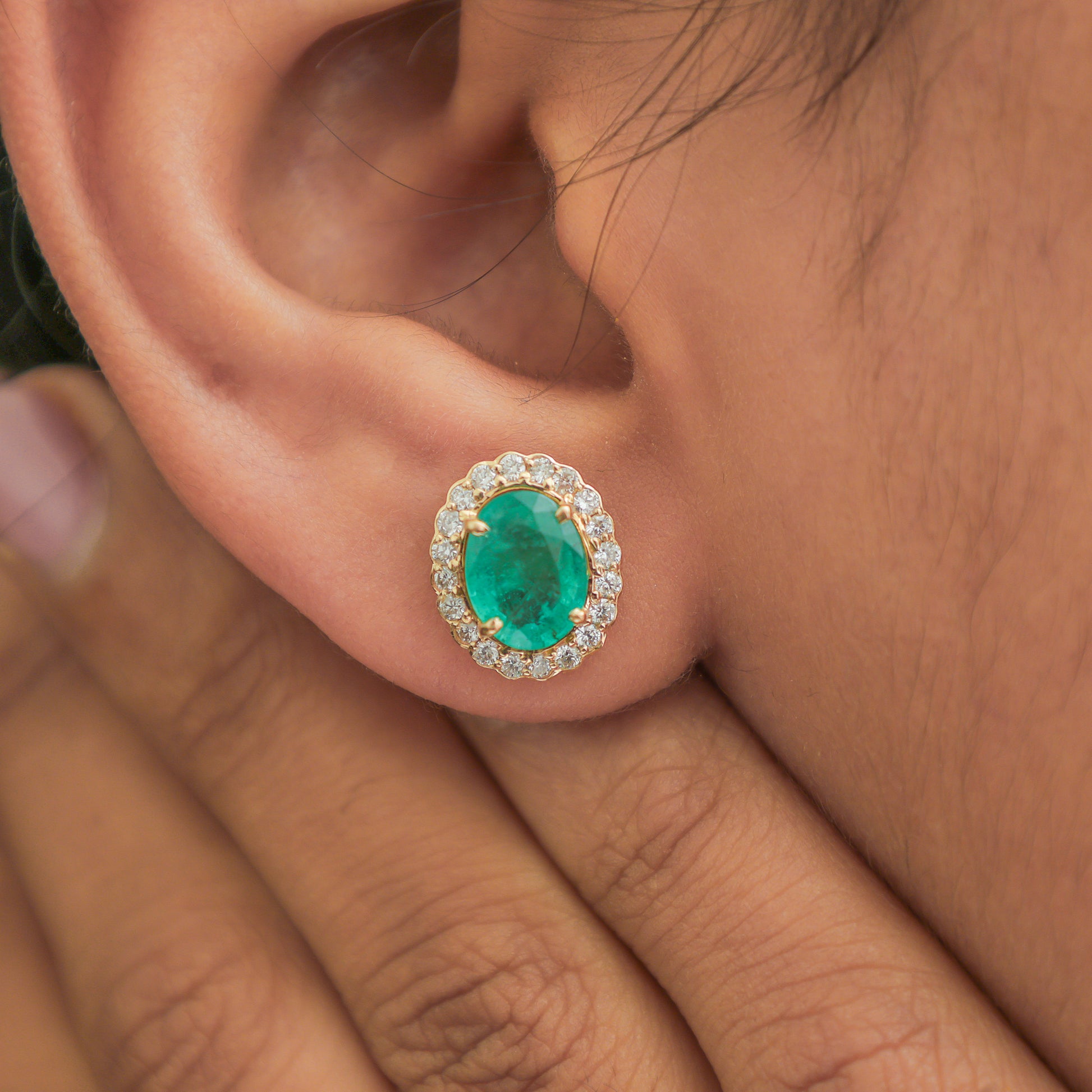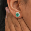 Oval Emerald & Diamond Halo Stud Earrings Gold | Fine Jewelry | Jewels Park