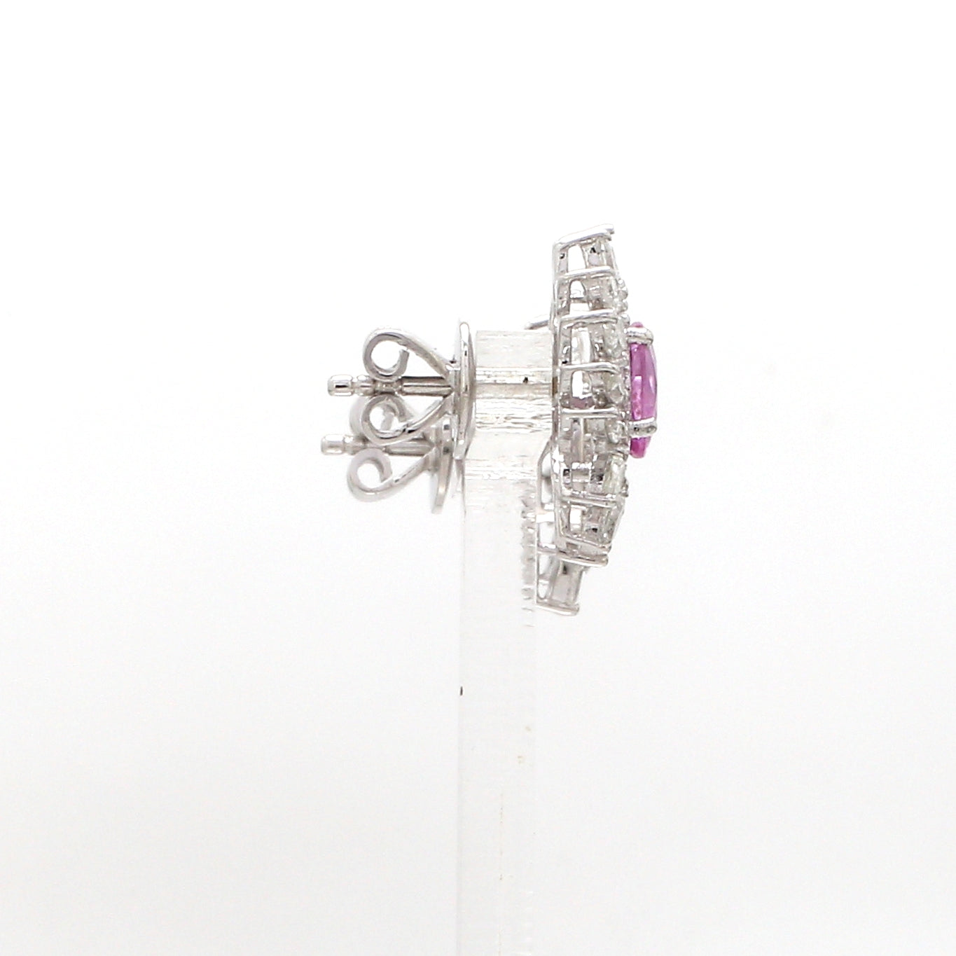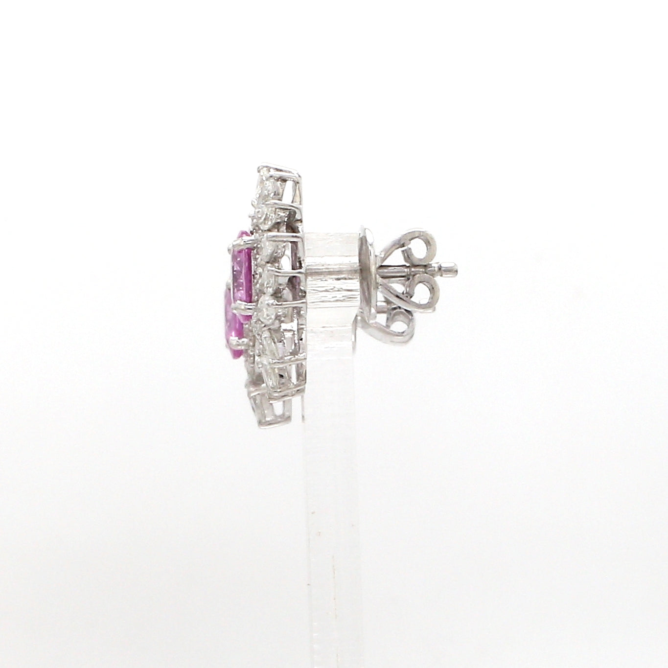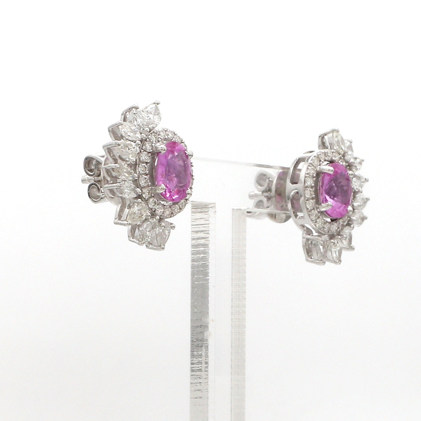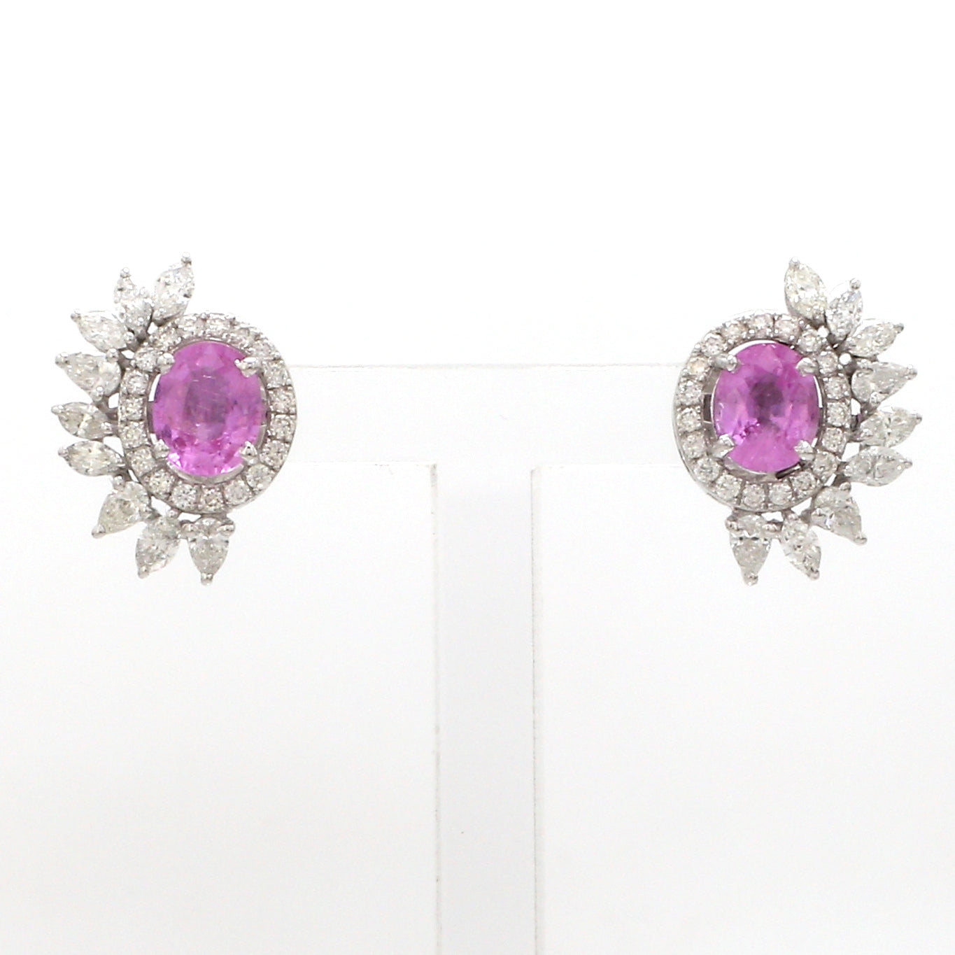 Oval Pink Sapphire & Diamond Halo Earrings in Solid Gold – Double Halo with Marquise Cluster