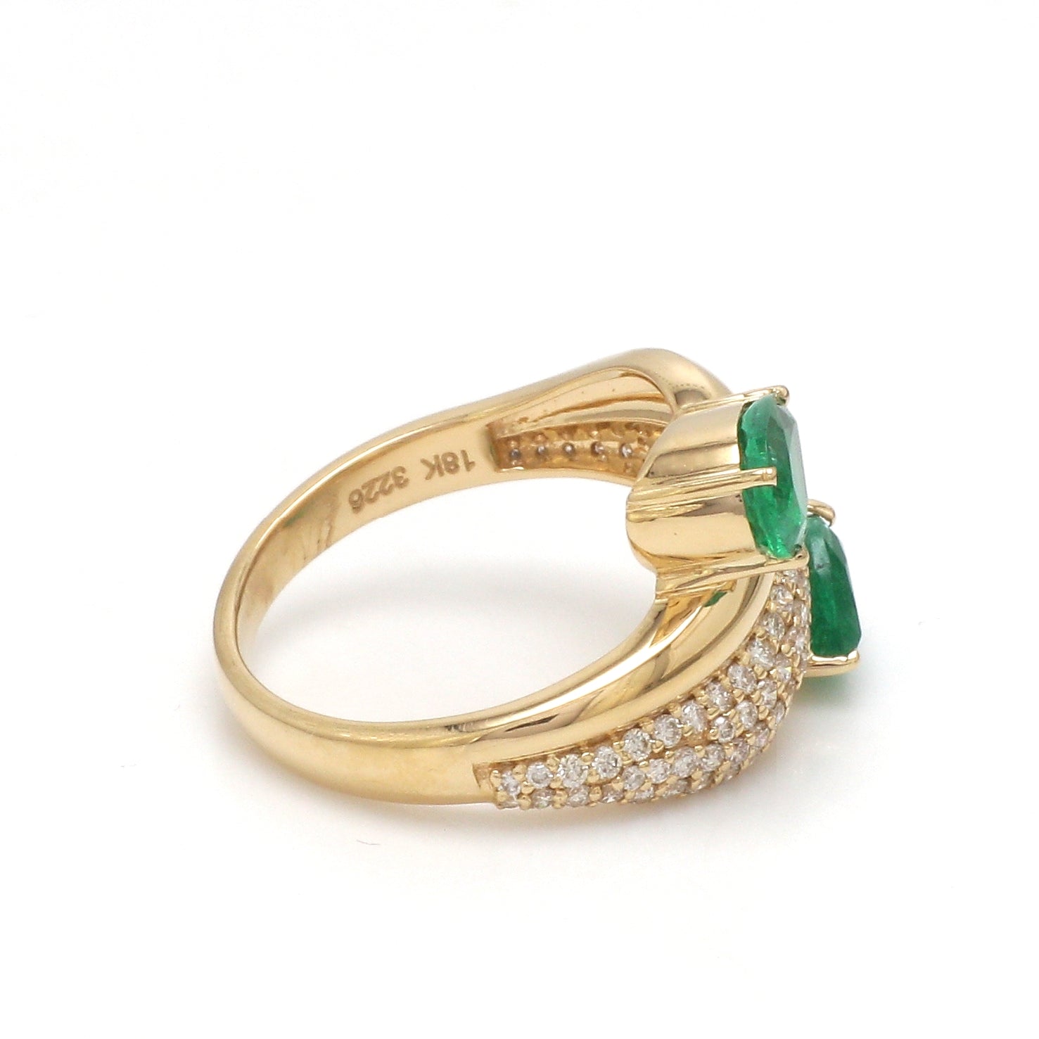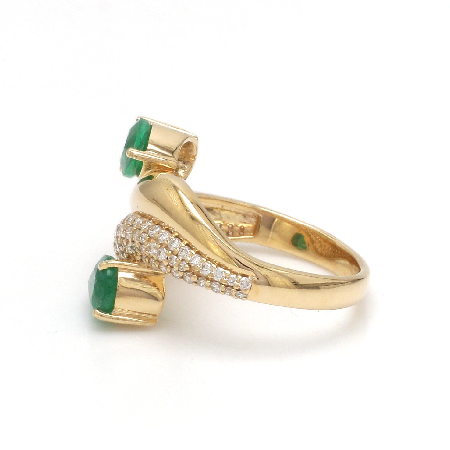 Pear Cut Emerald Bypass Ring Gold | Pavé Diamond Statement Ring | Double Emerald Wrap Ring | Fine Jewelry by Jewels Park