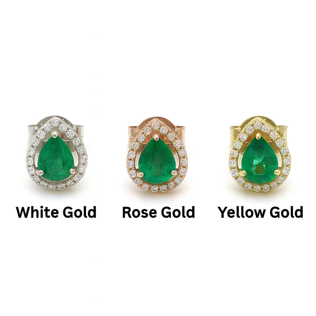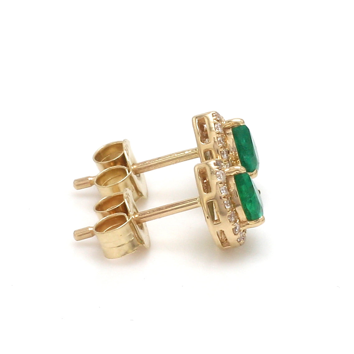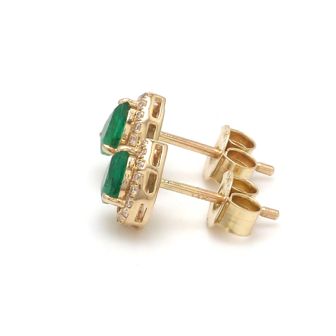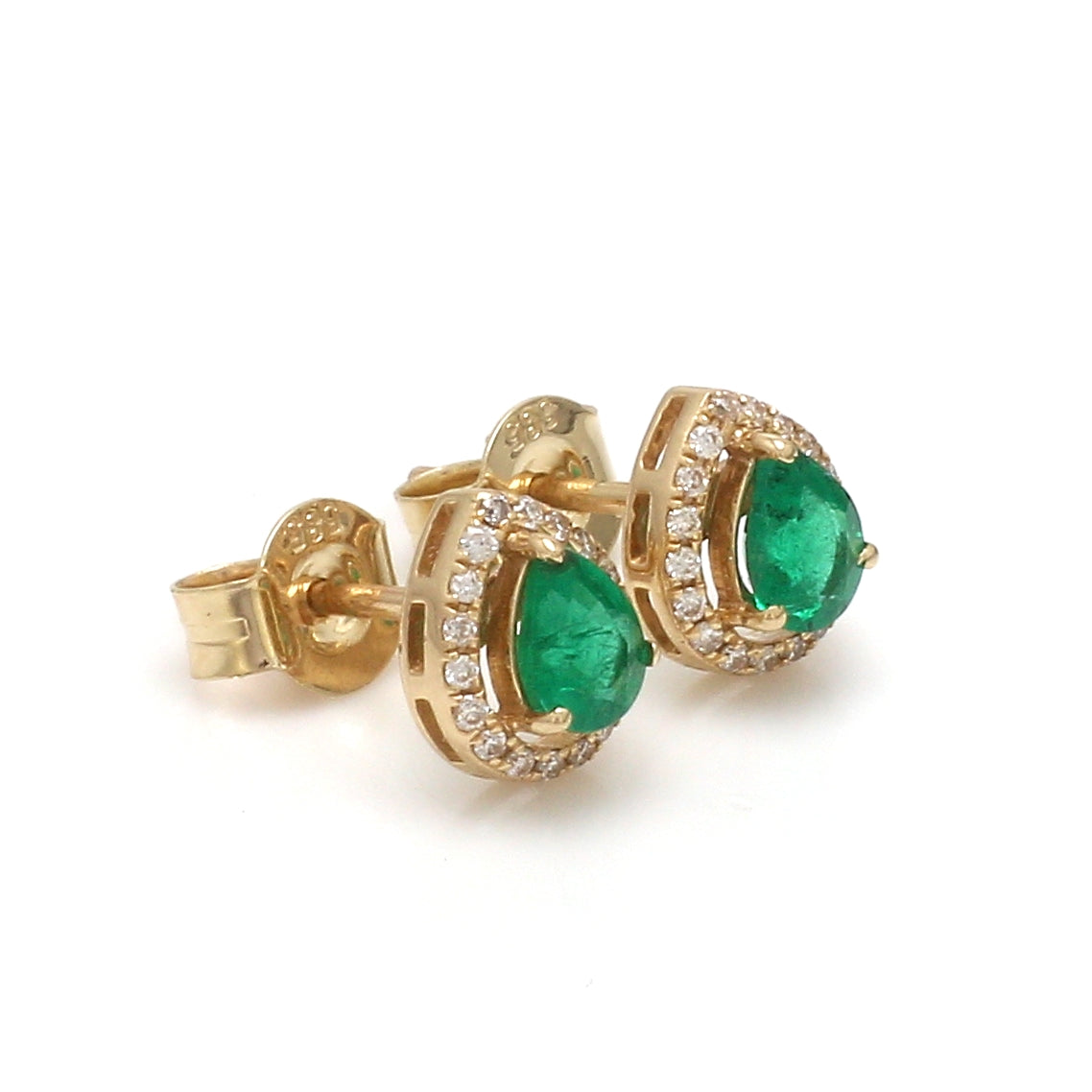 Emerald Earrings – Pear Diamond Halo Studs Gold – Natural Emerald Birthstone Jewelry