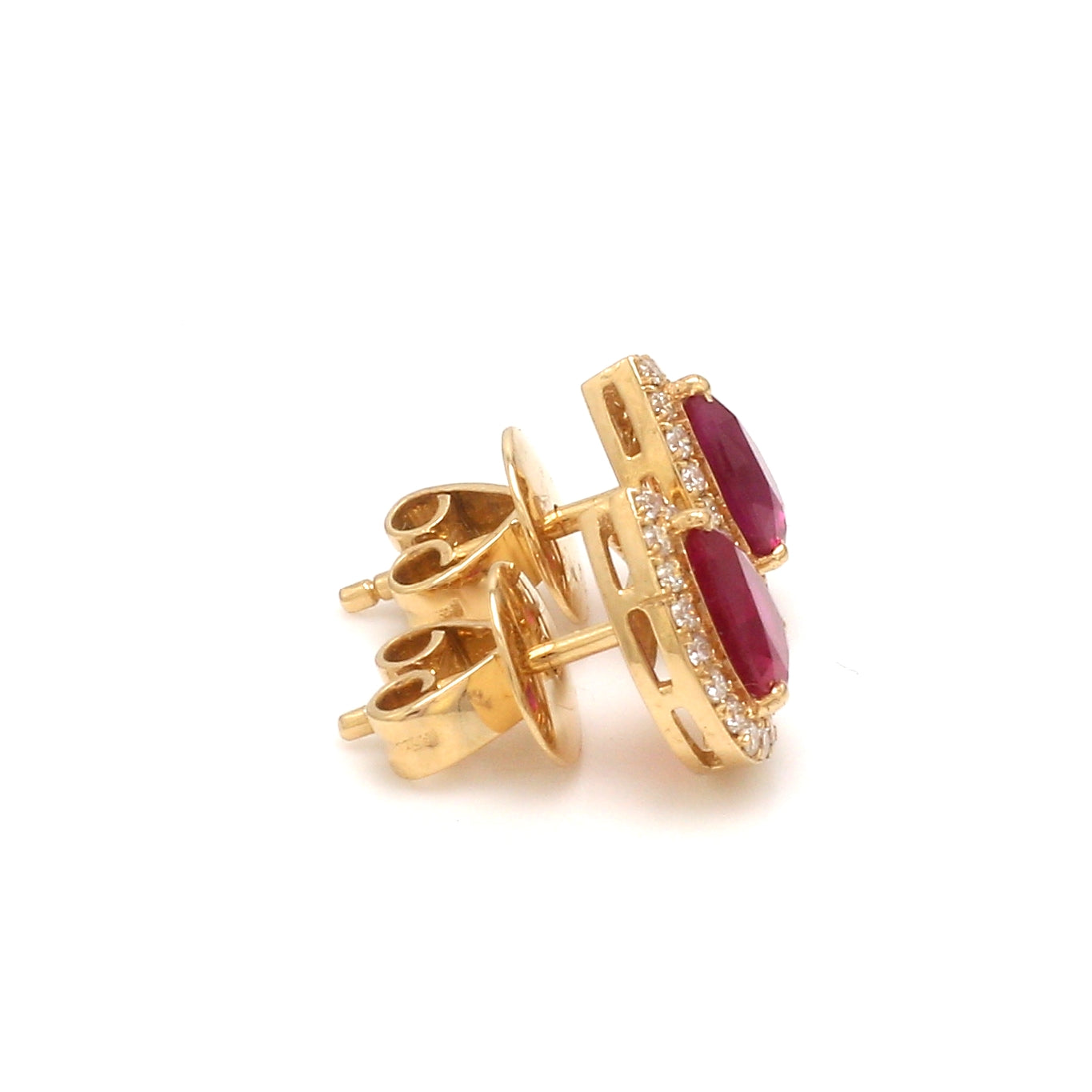 Pear-Shaped Ruby & Diamond Halo Stud Earrings in Solid Gold