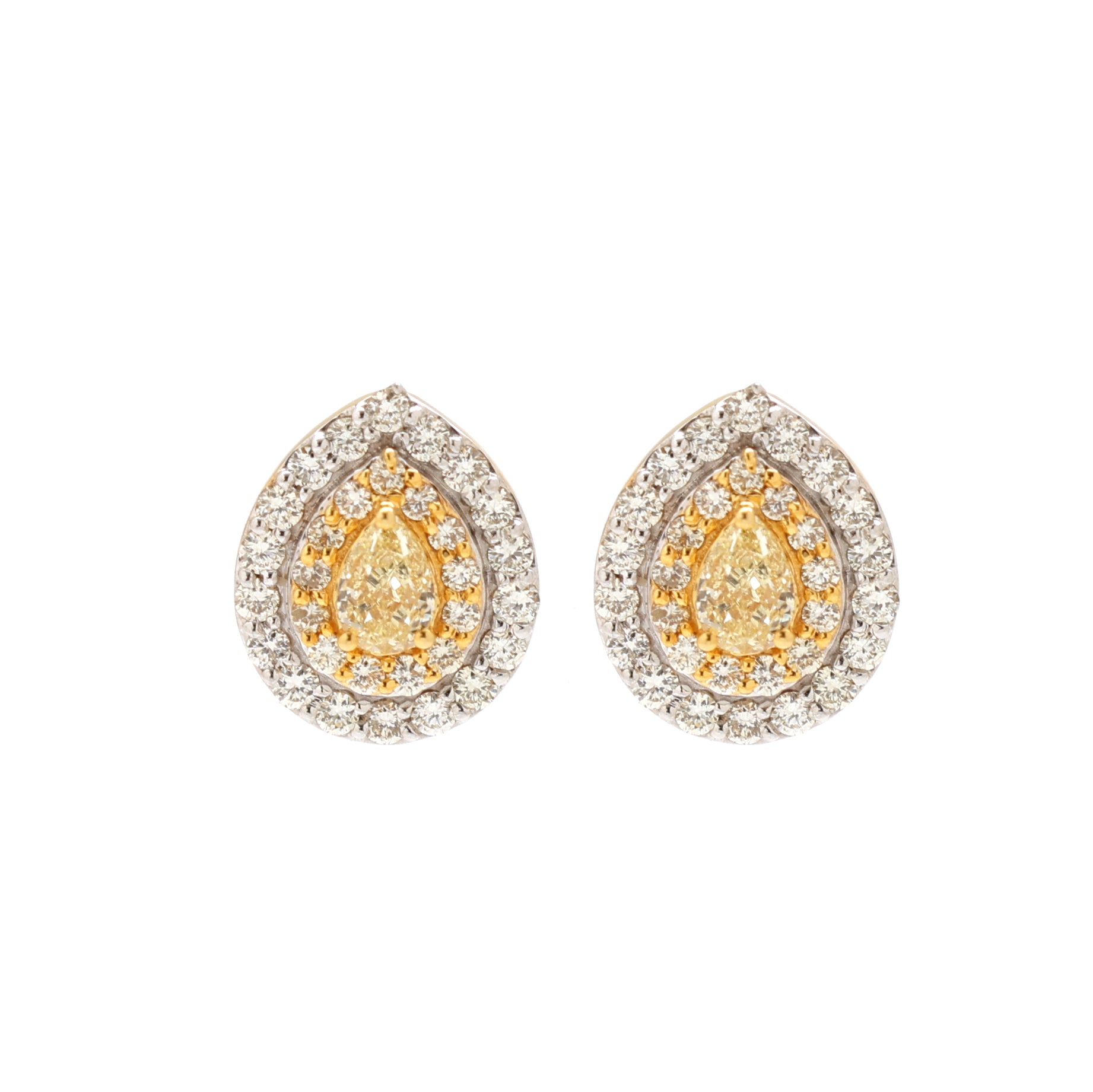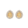 Pear Shaped Yellow Diamond Stud Earrings in Gold – Halo Setting with White & Yellow Diamonds, Elegant Fine Jewelry