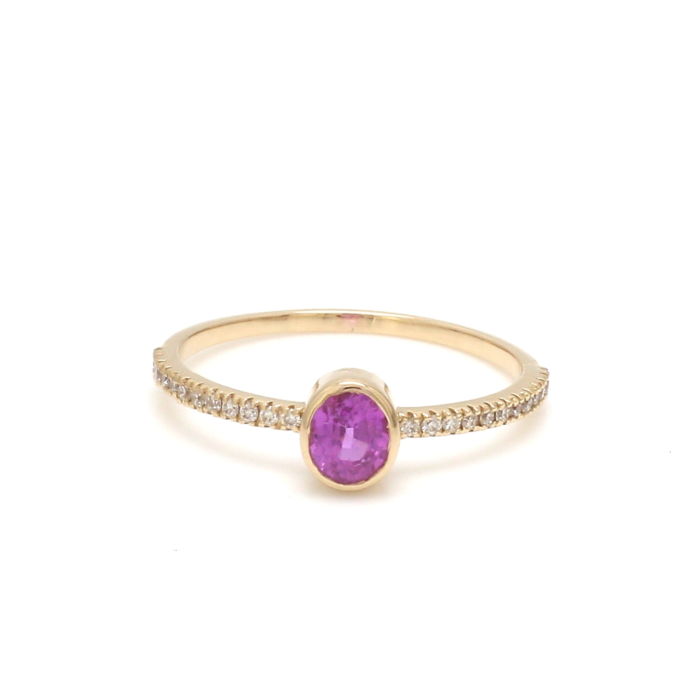 Pink Sapphire Bezel Ring with Diamond Band in Solid Gold