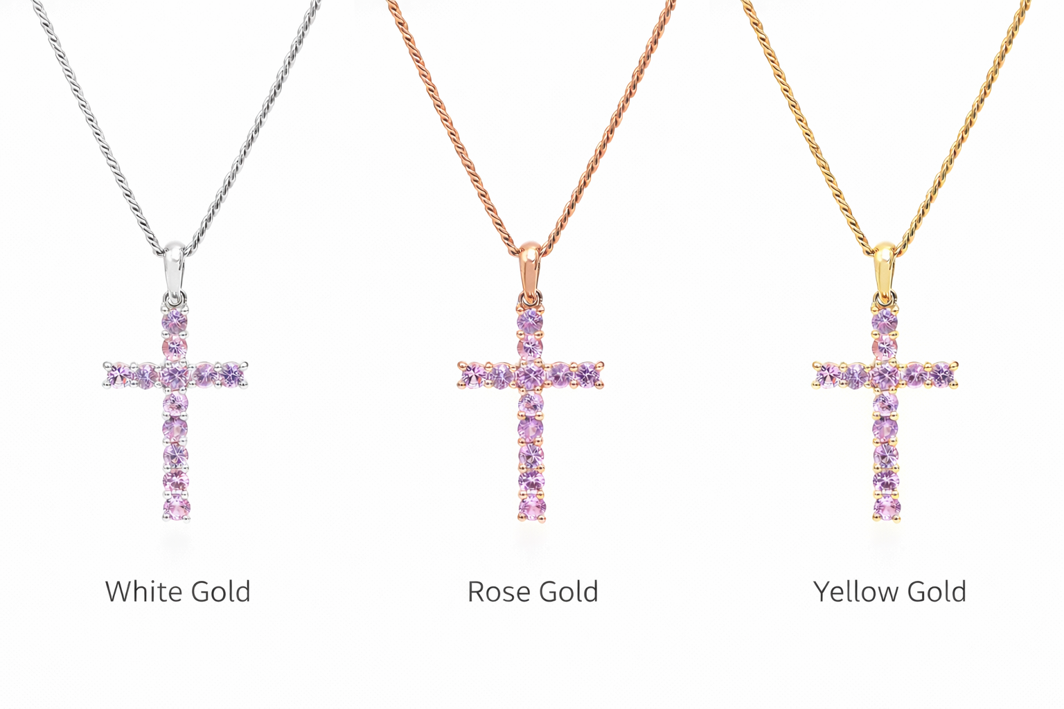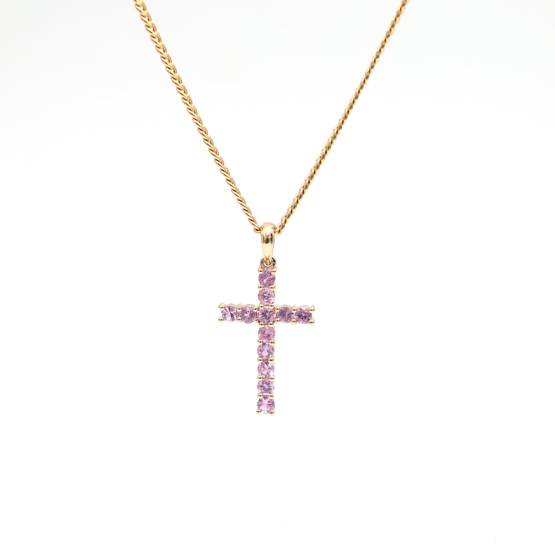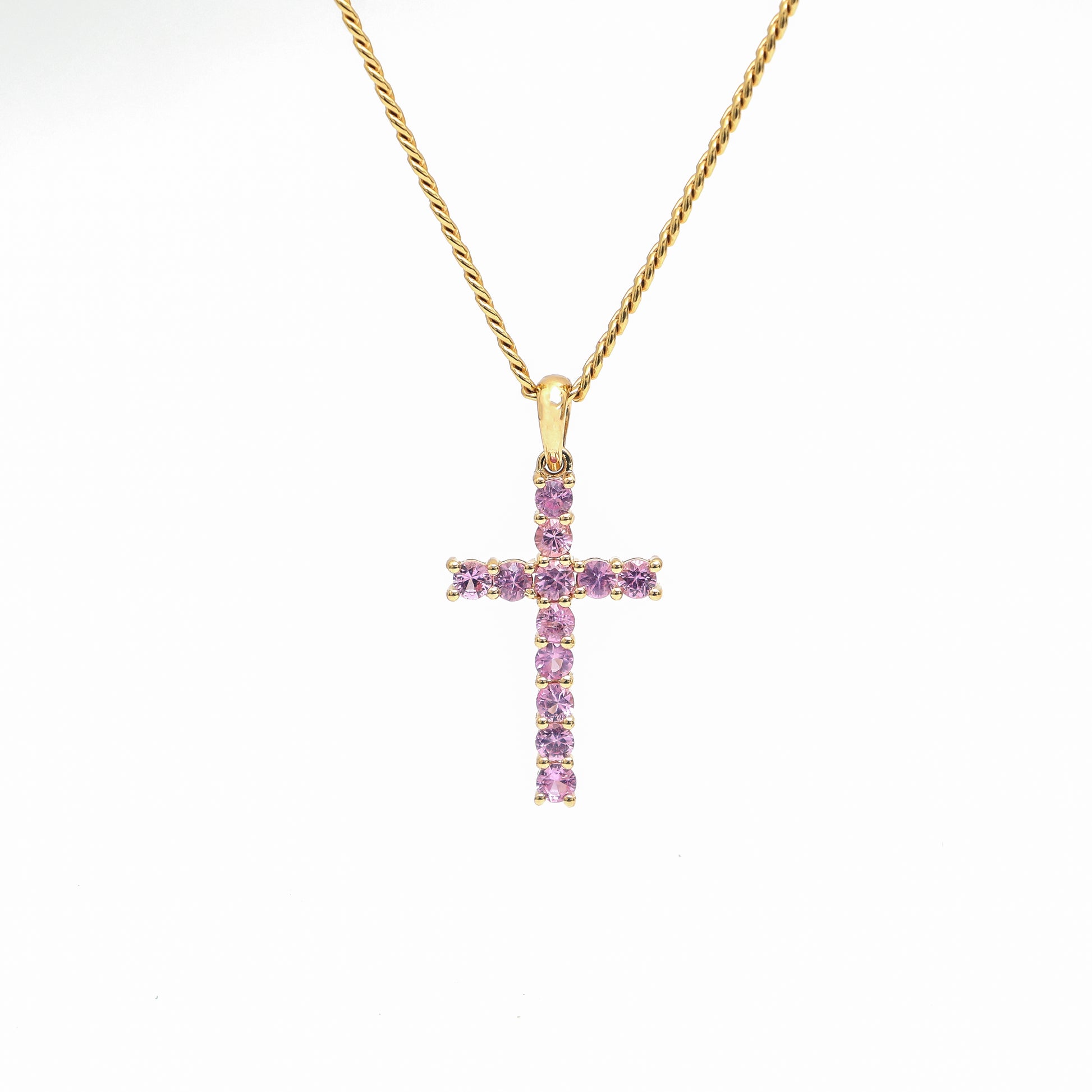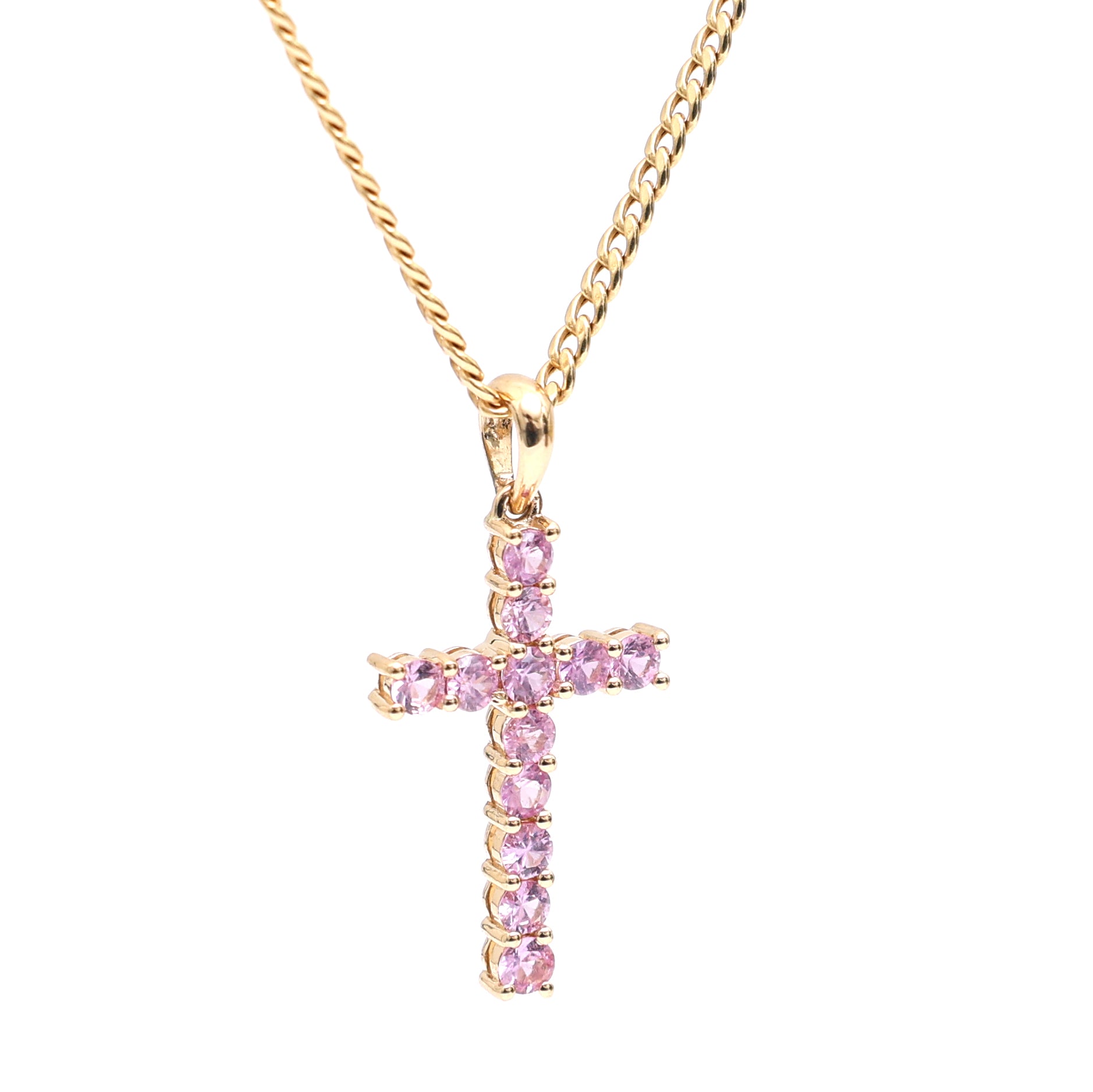 Pink Sapphire Cross Pendant Necklace Gold | Jewels Park