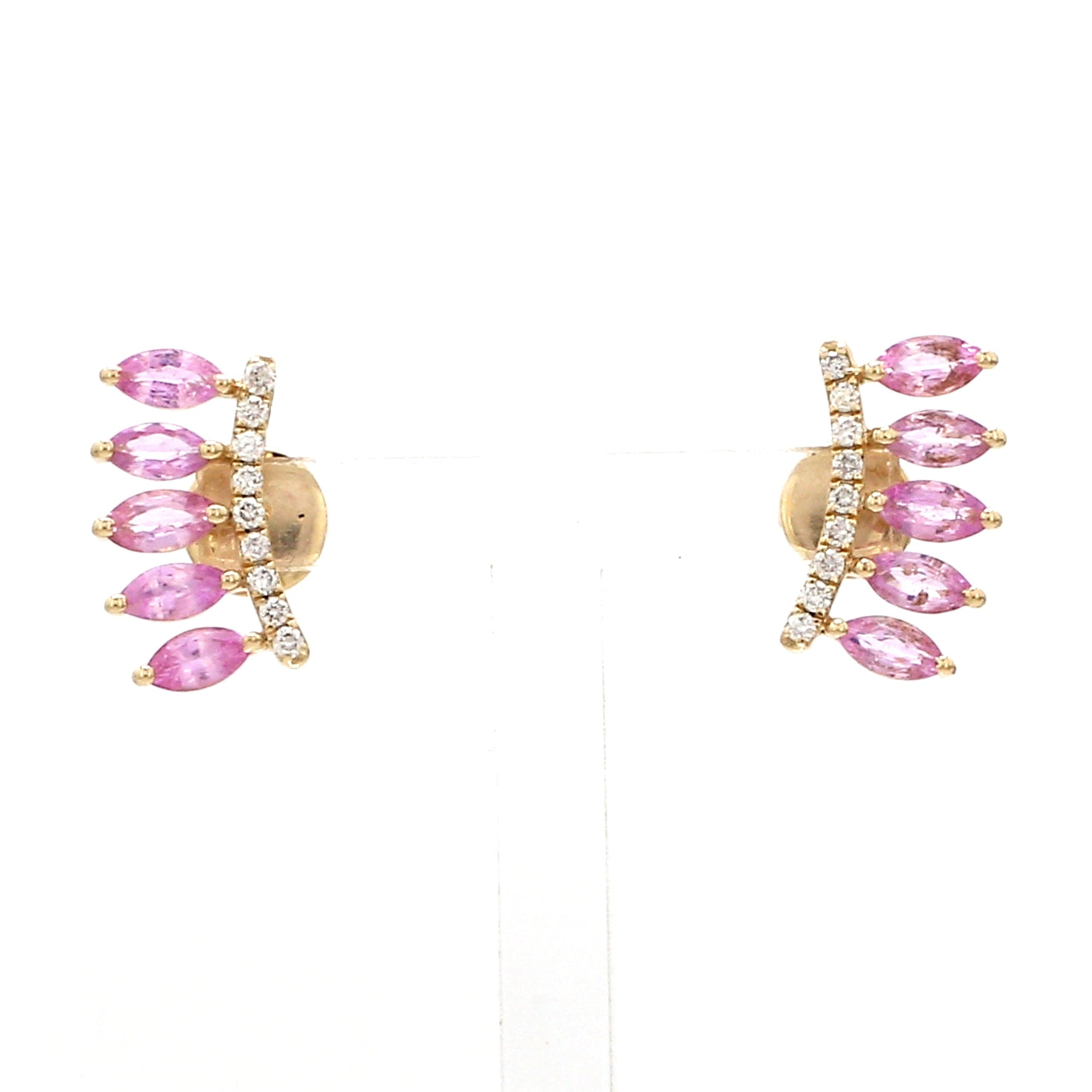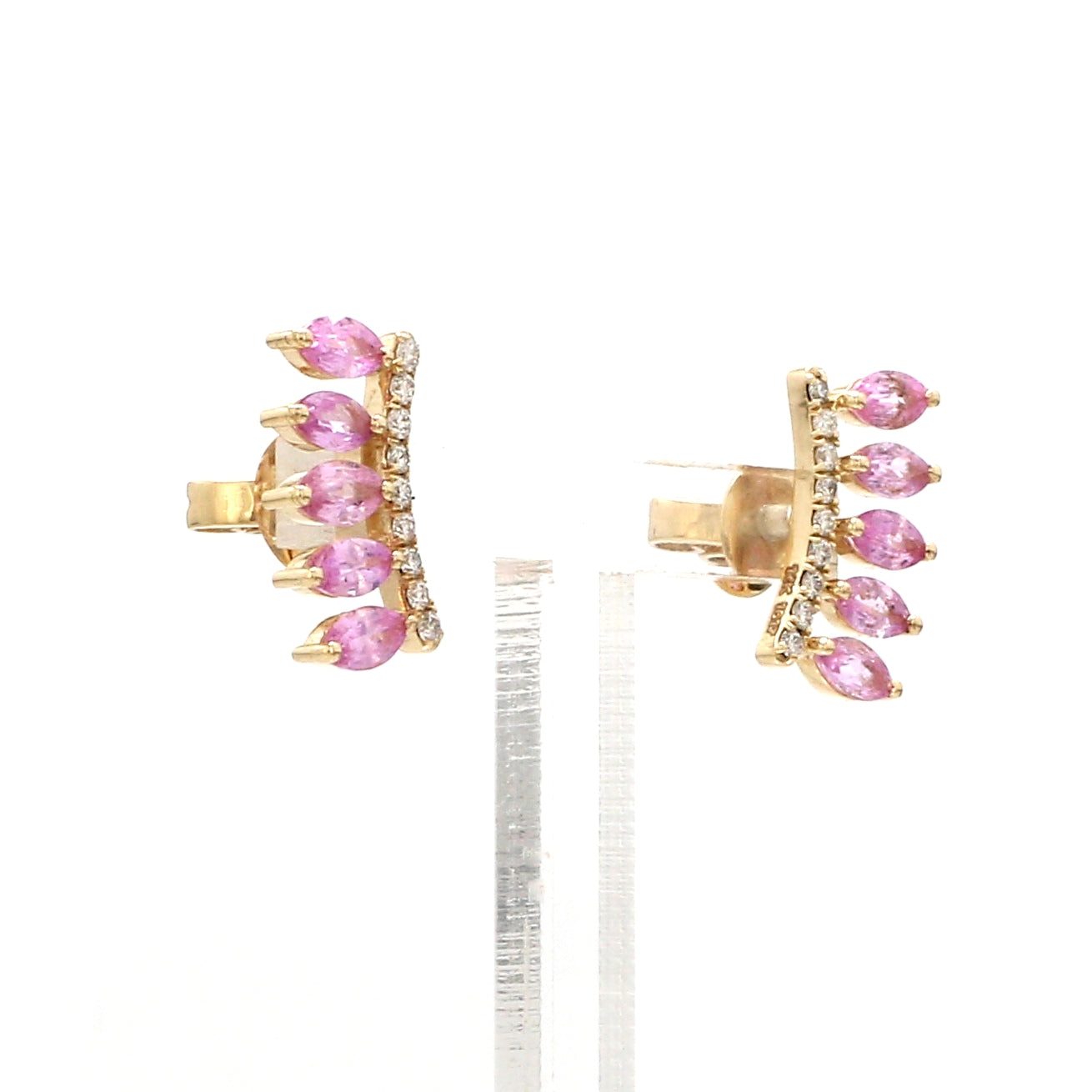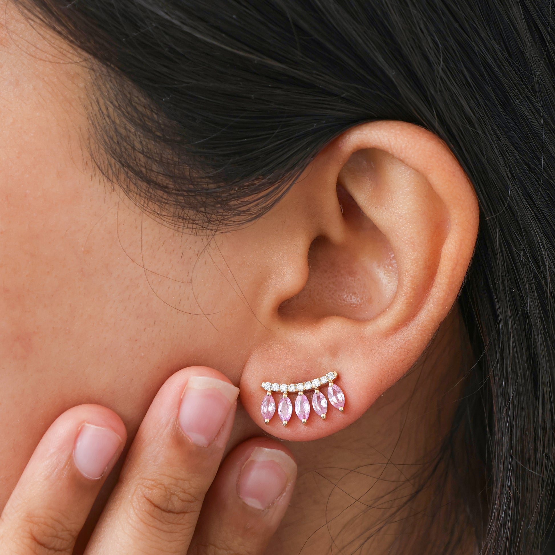 Pink Sapphire & Diamond Climber Earrings Gold – Modern Ear Crawlers