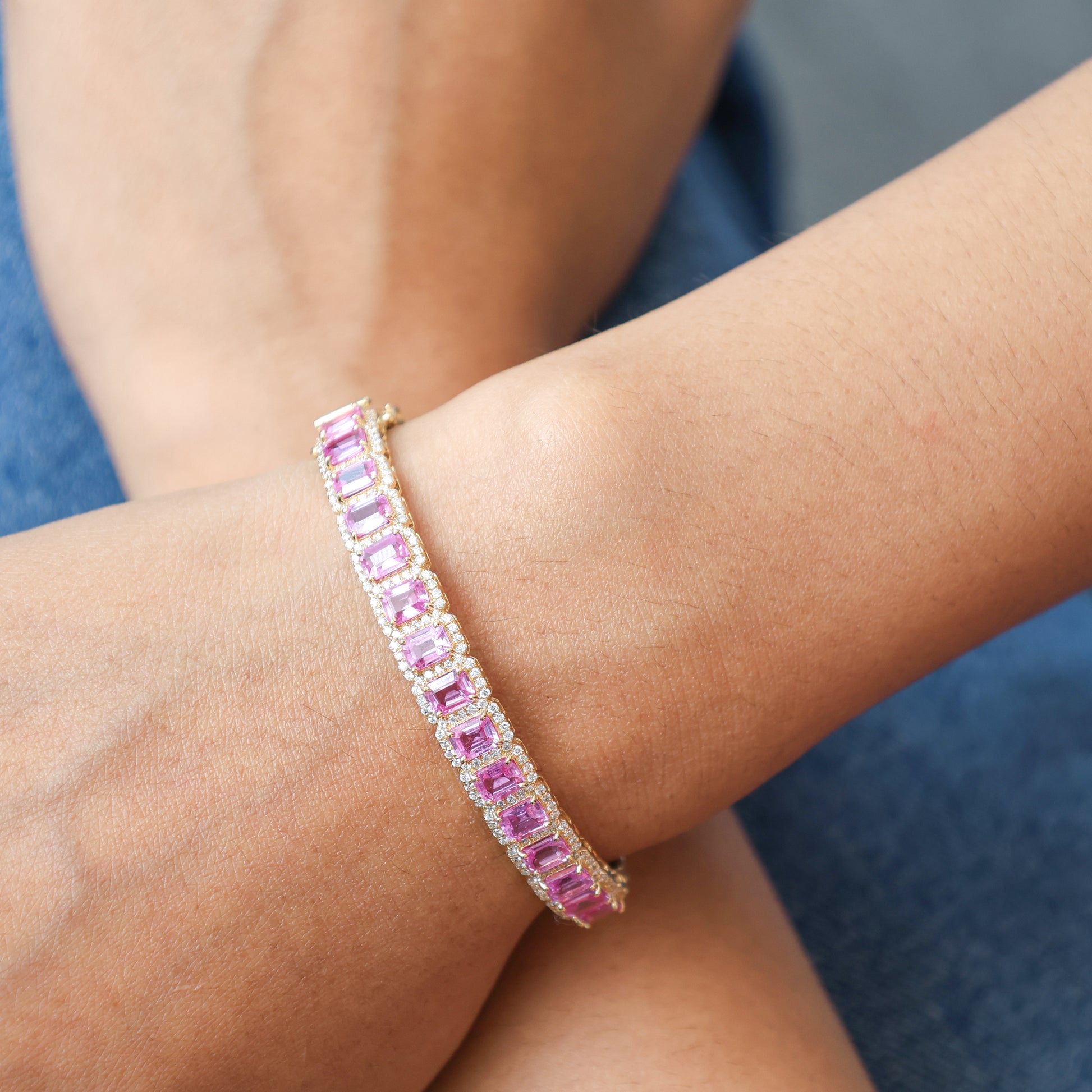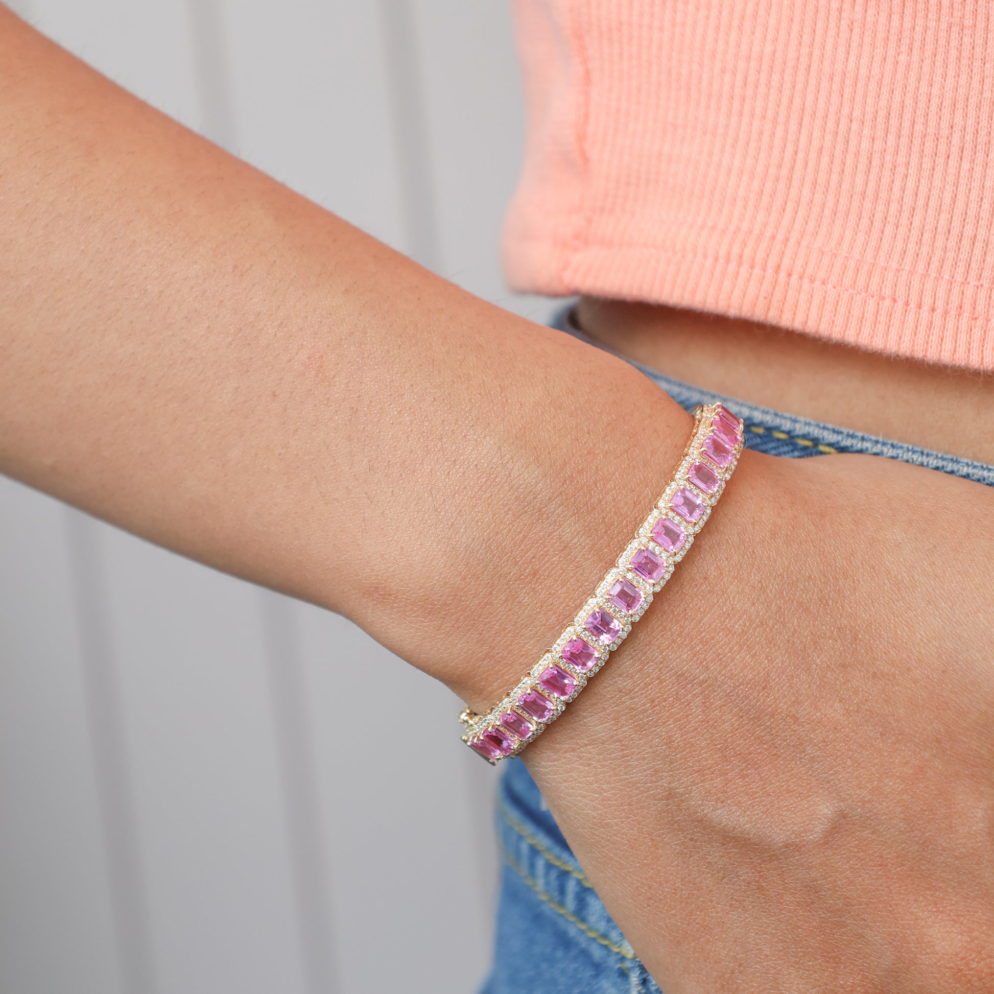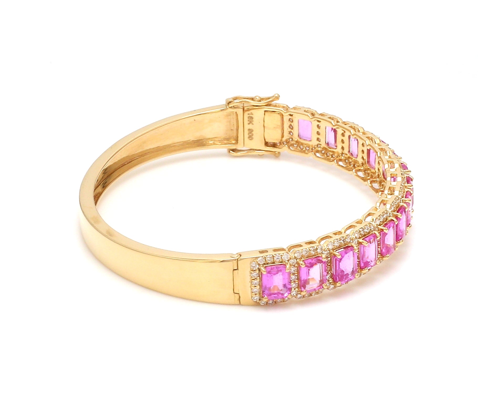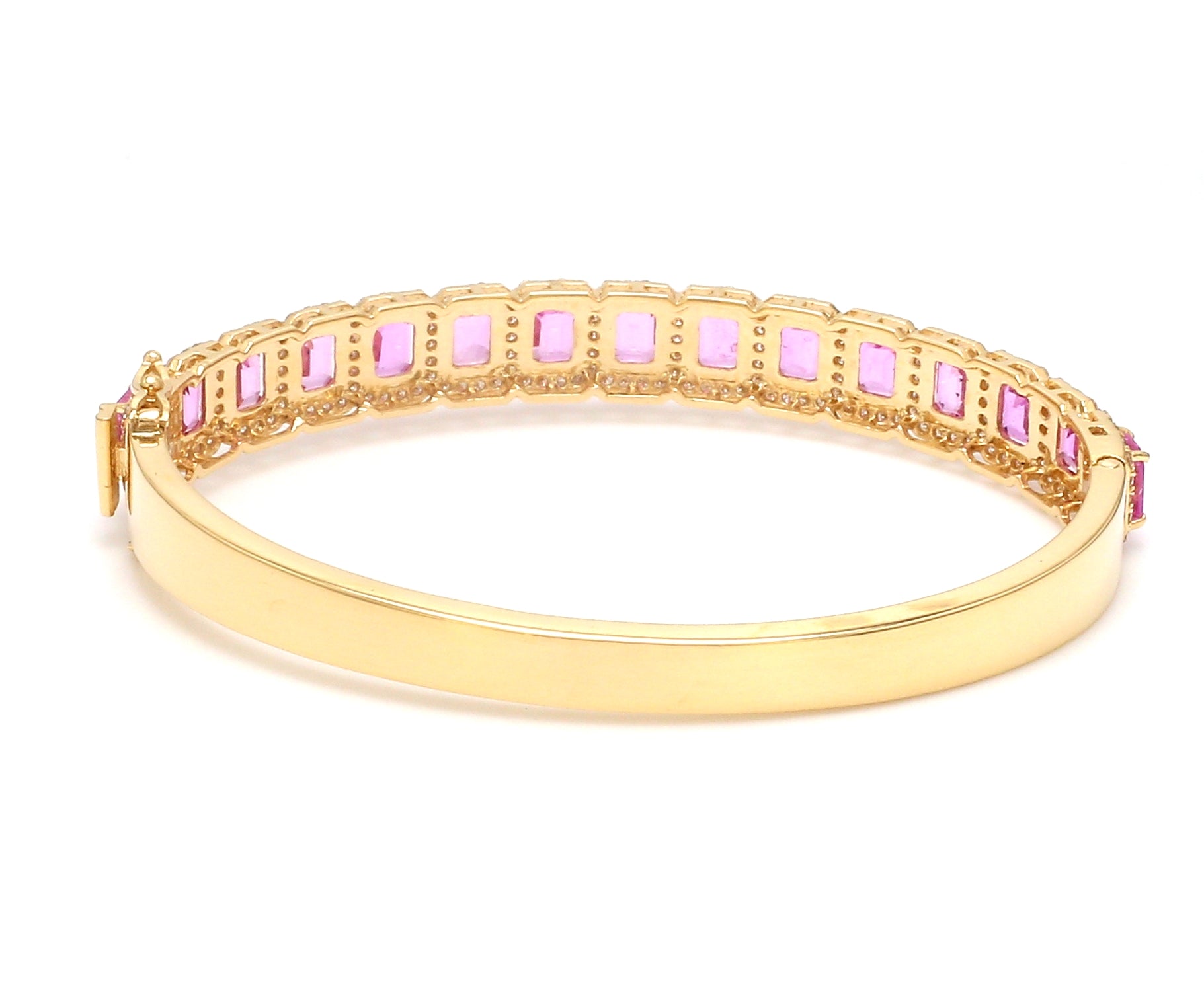 Pink Sapphire & Diamond Bangle Gold | Elegant Gemstone Bracelet