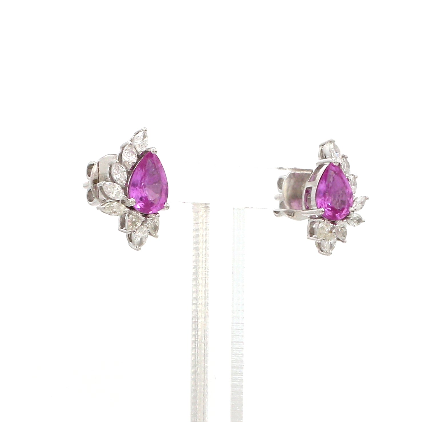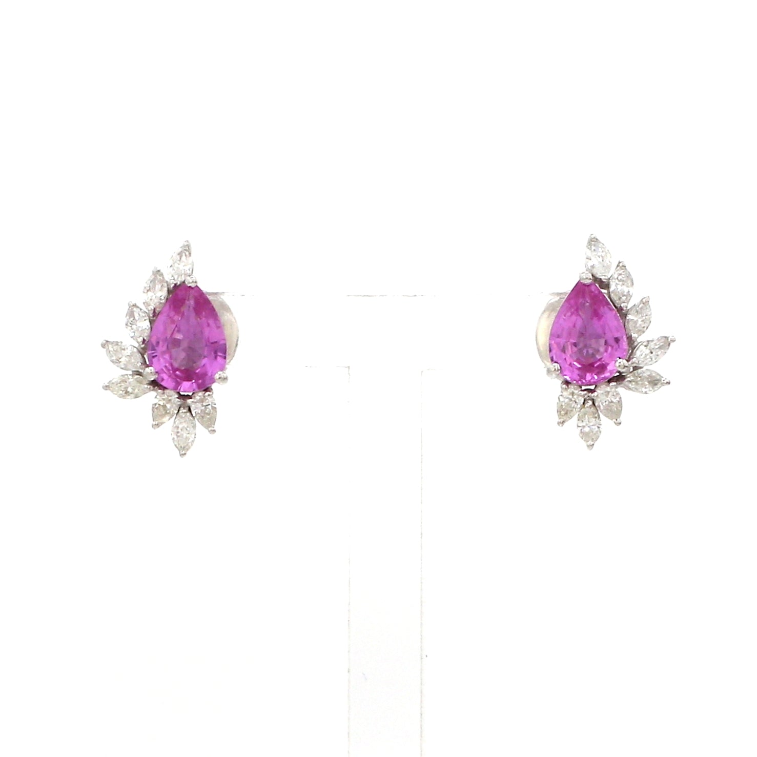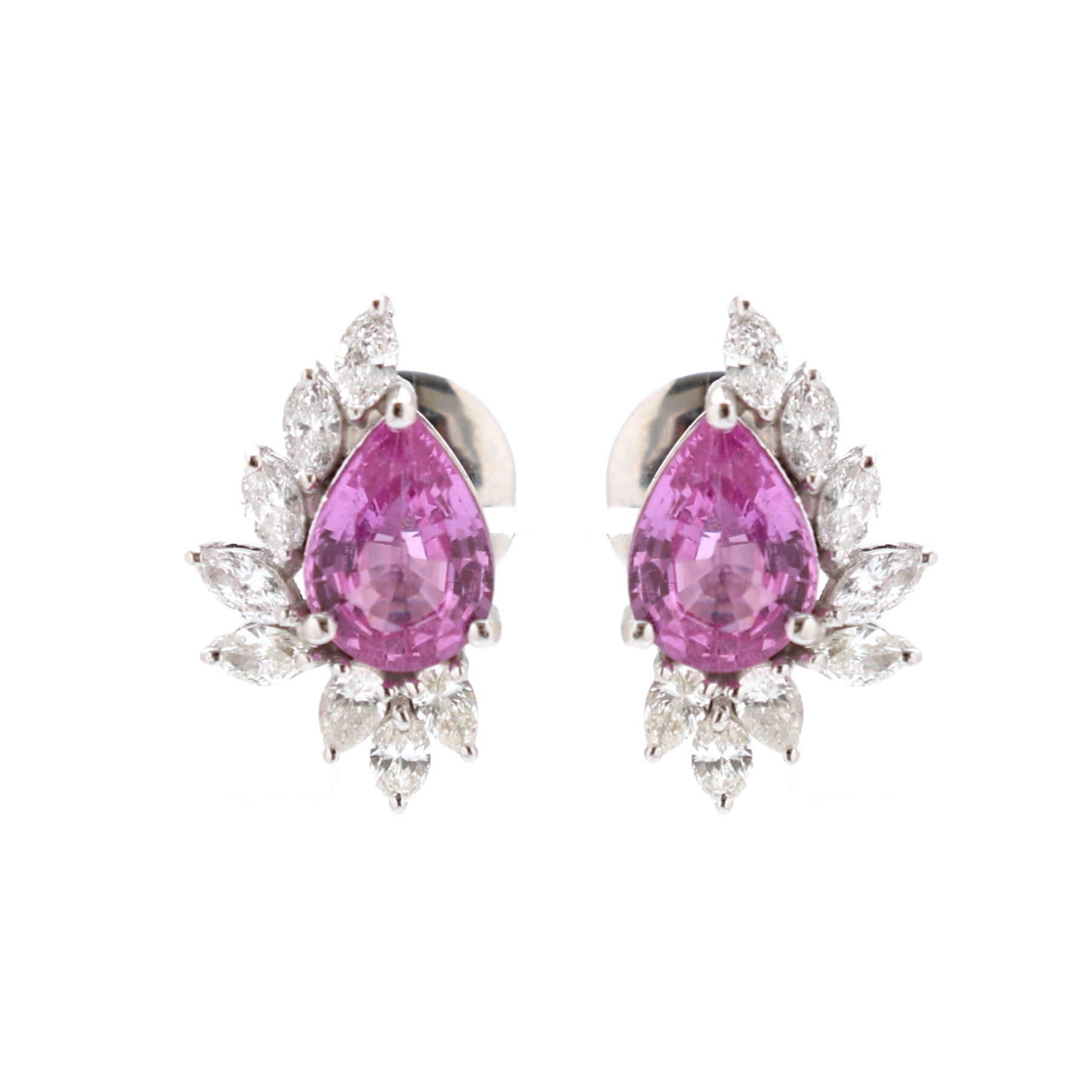 Pink Sapphire and Diamond Cluster Earrings Gold – Pear Shape Studs