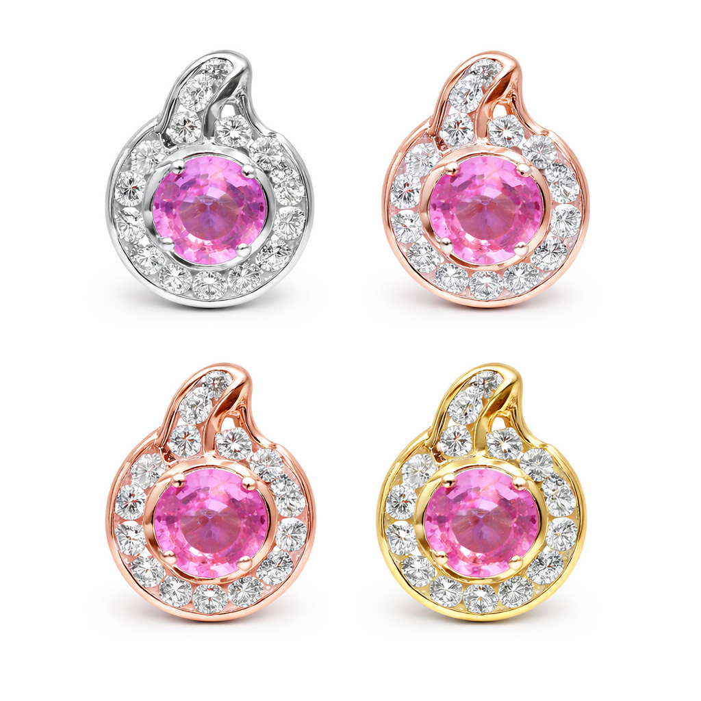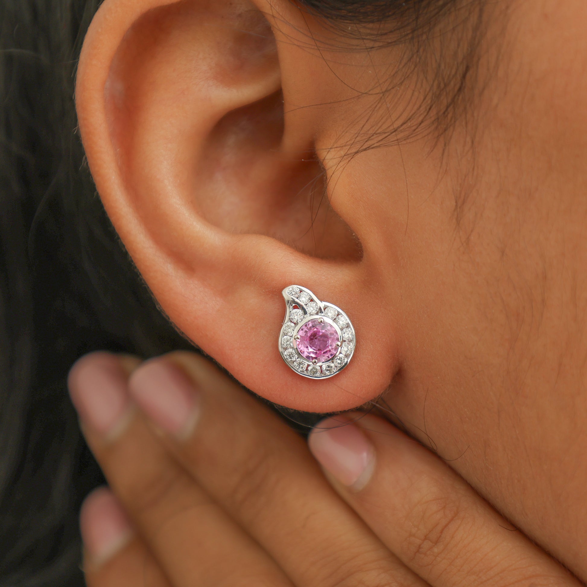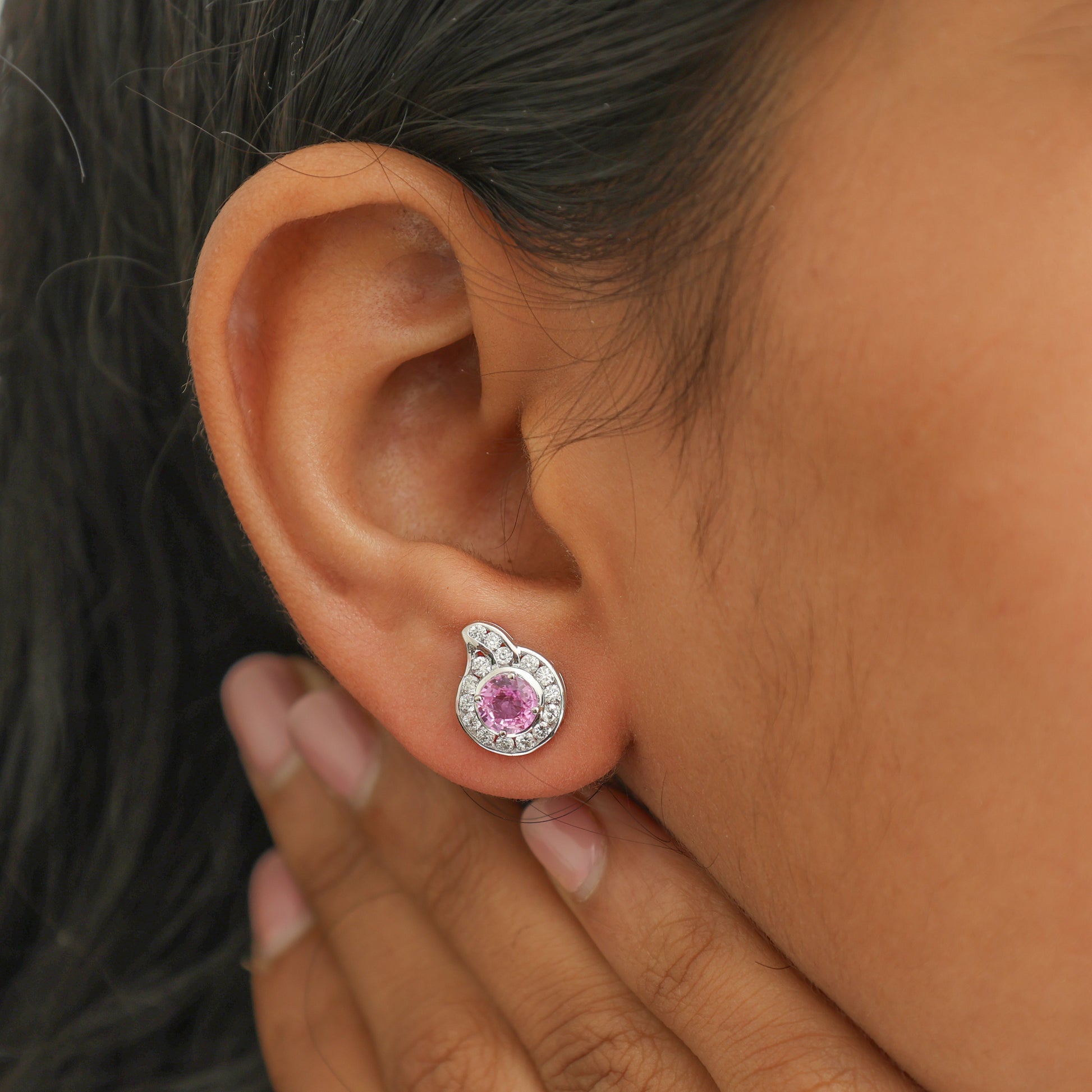 Pink Sapphire Diamond Halo Stud Earrings Gold | Jewels Park