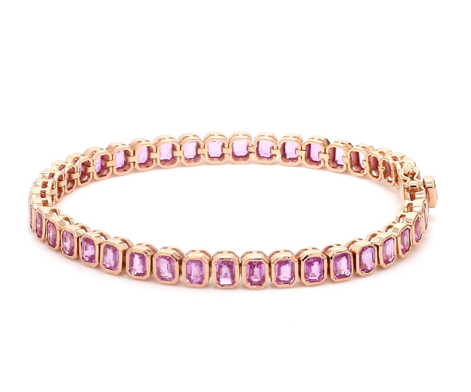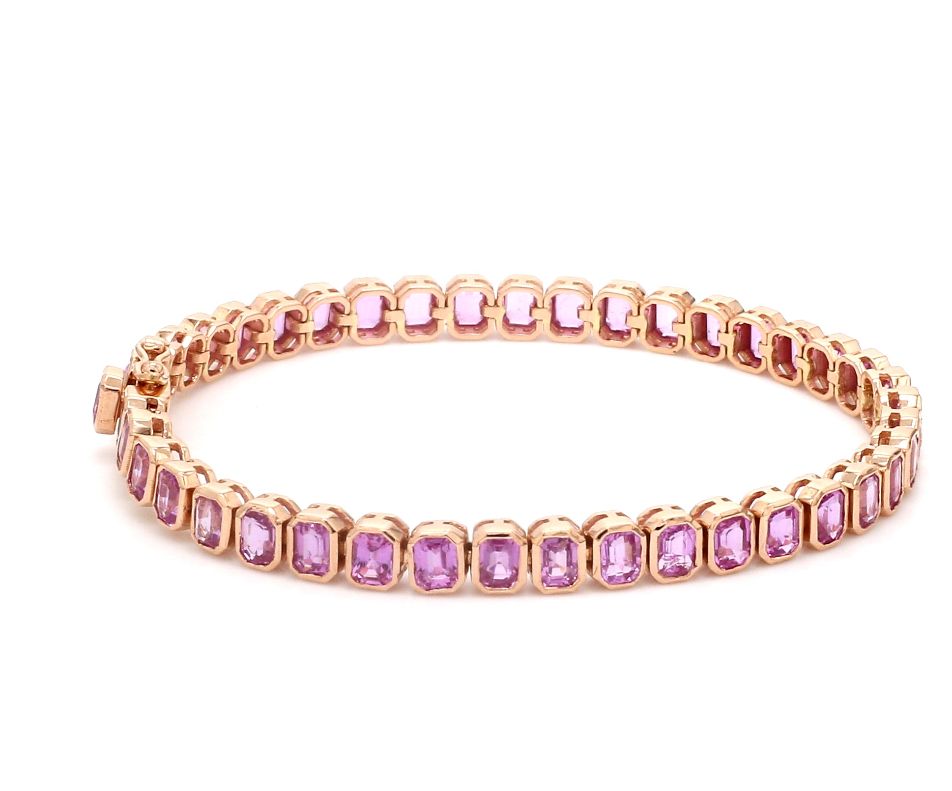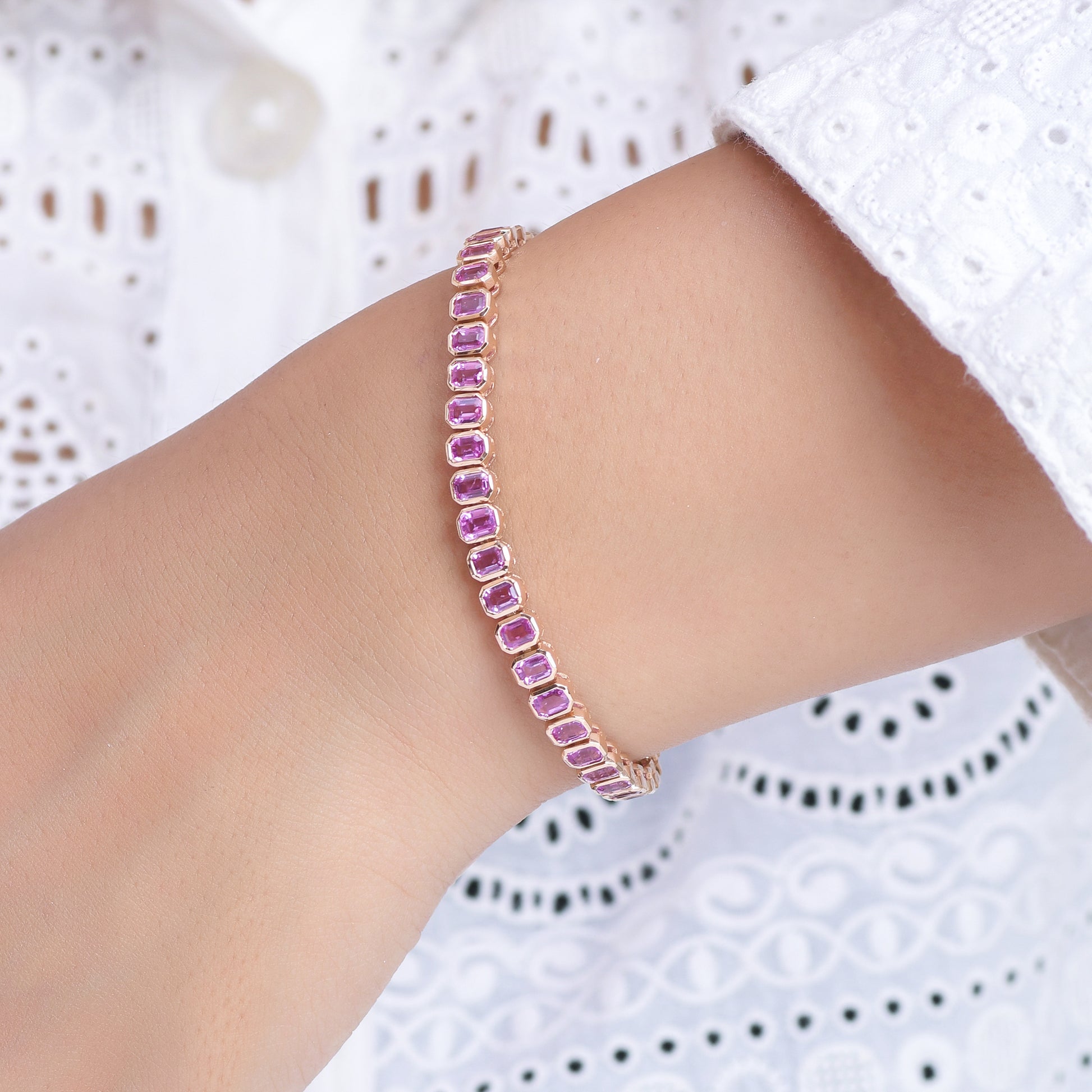 Pink Sapphire Emerald Cut Bezel Set Bracelet