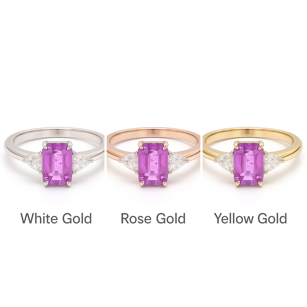 Pink Sapphire Three Stone Ring Gold – Natural Sapphire & Diamond | Jewels Park