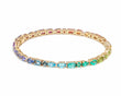 This classic rainbow gemstone bracelet has ten types of natural gemstones arranged in a perfect vibrant ombre. The stones are Amethyst, Tanzanite, Topaz, Emerald, Peridot, Yellow Sapphire, Orange Sapphire, Ruby, Tourmaline and Garnet. Set in 14K/18K gold this bracelet is perfectly stackable and suitable for all occasions.