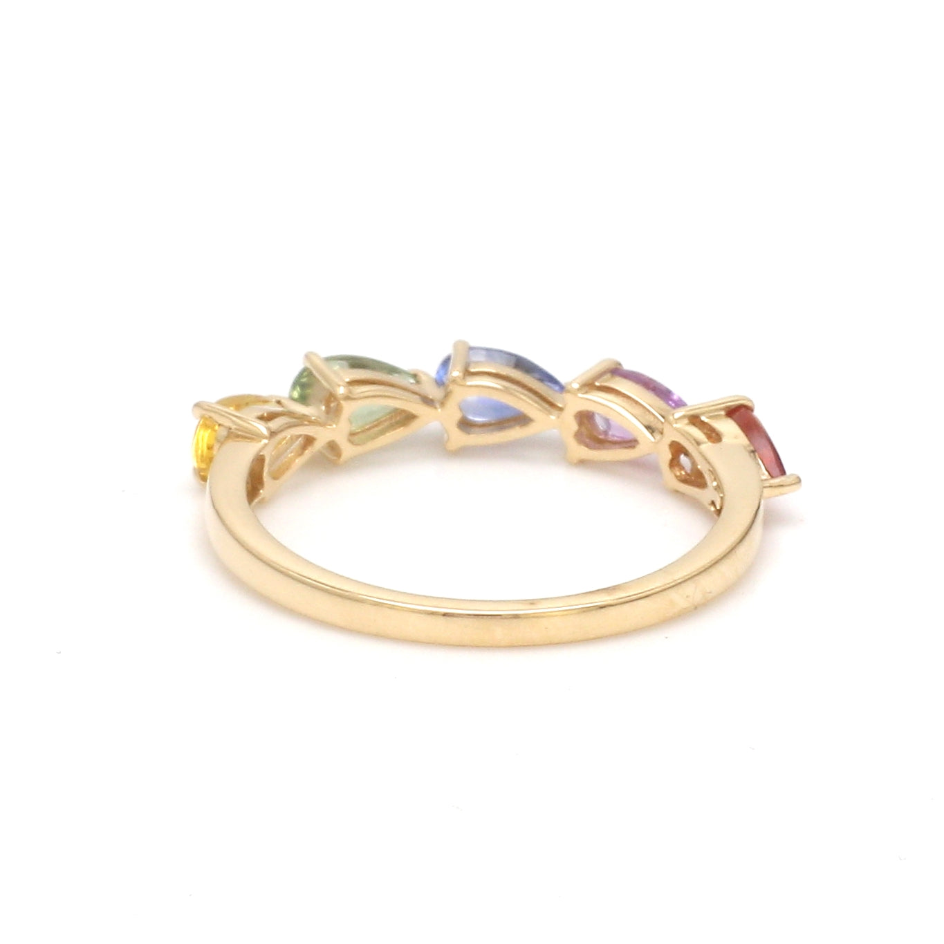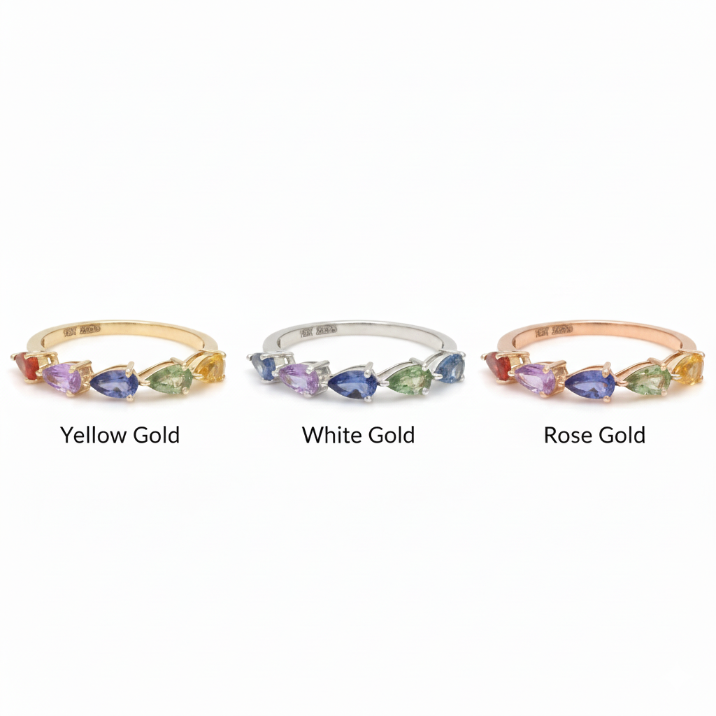 Rainbow Ombre Sapphire Ring Gold | Pear Cut Multi-Color Gemstone Eternity Band