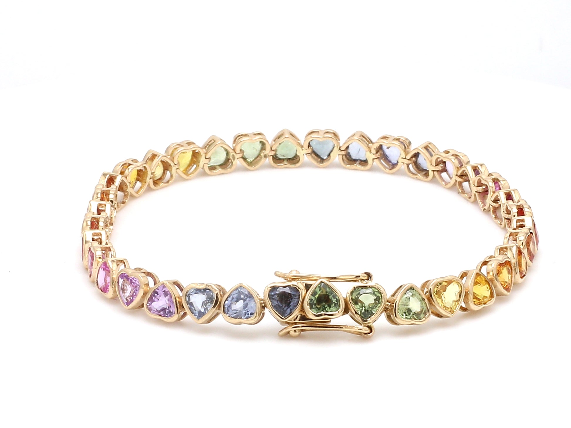 Rainbow Sapphire Heart Bezel Set Bracelet