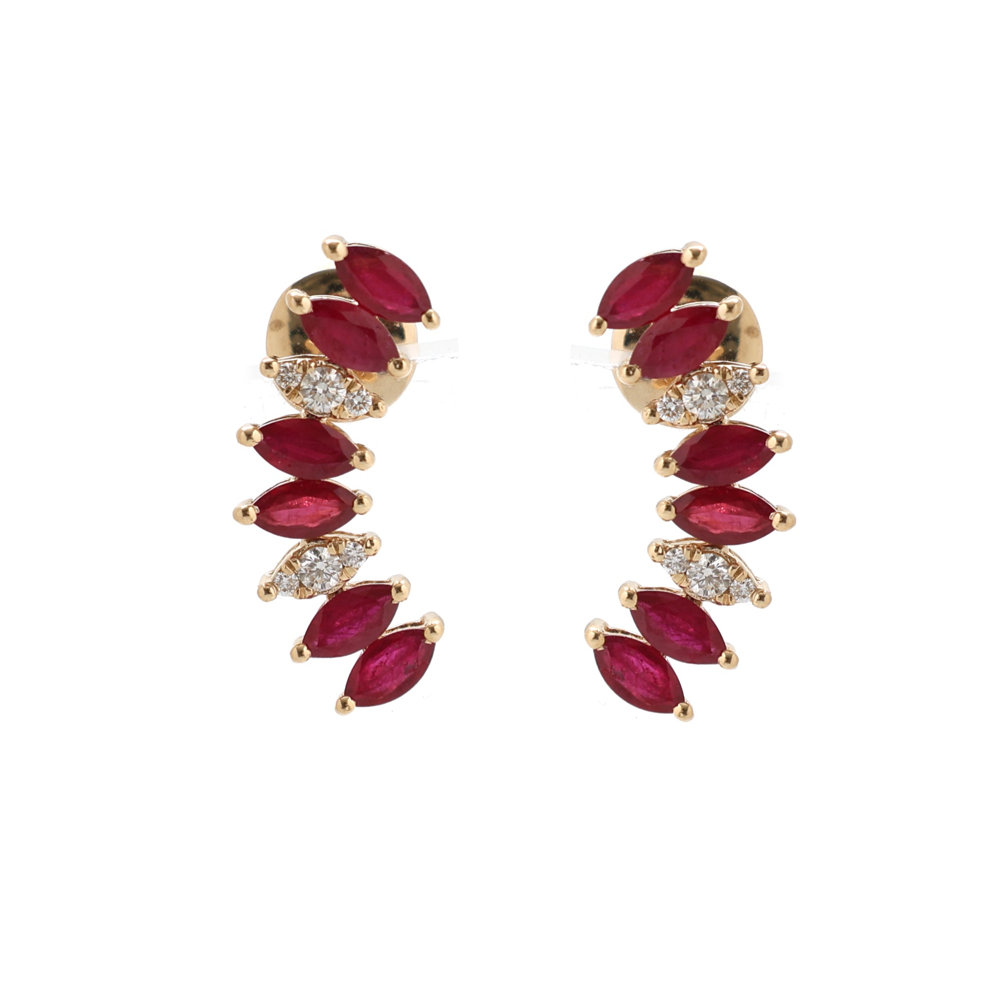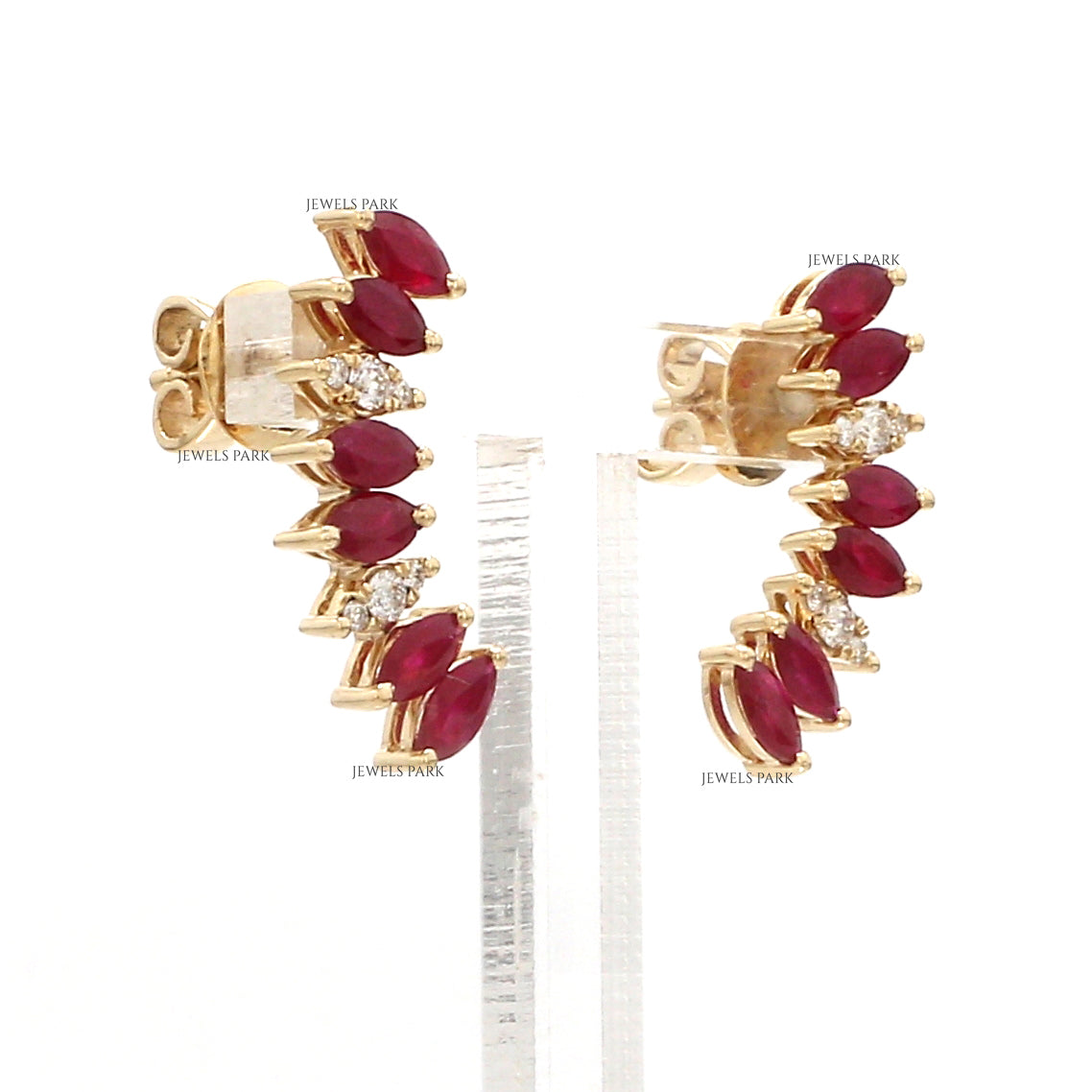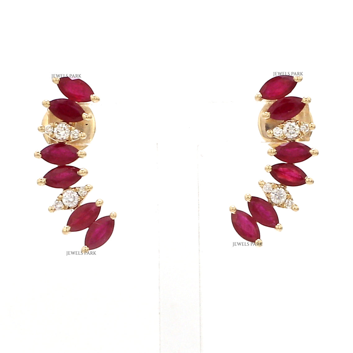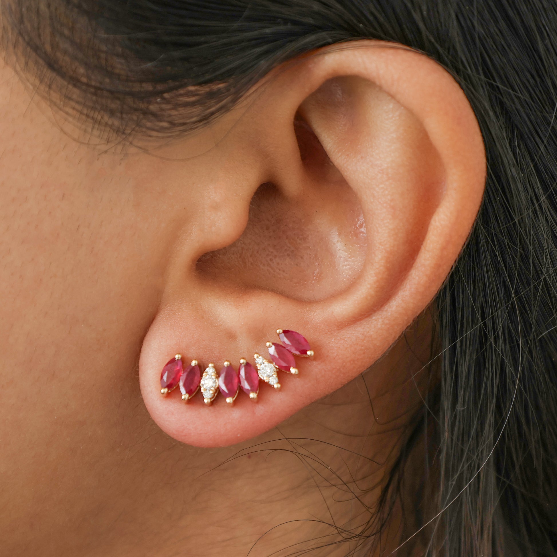 Ruby Diamond Climber Earrings Gold – Marquise Ruby Ear Crawlers