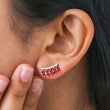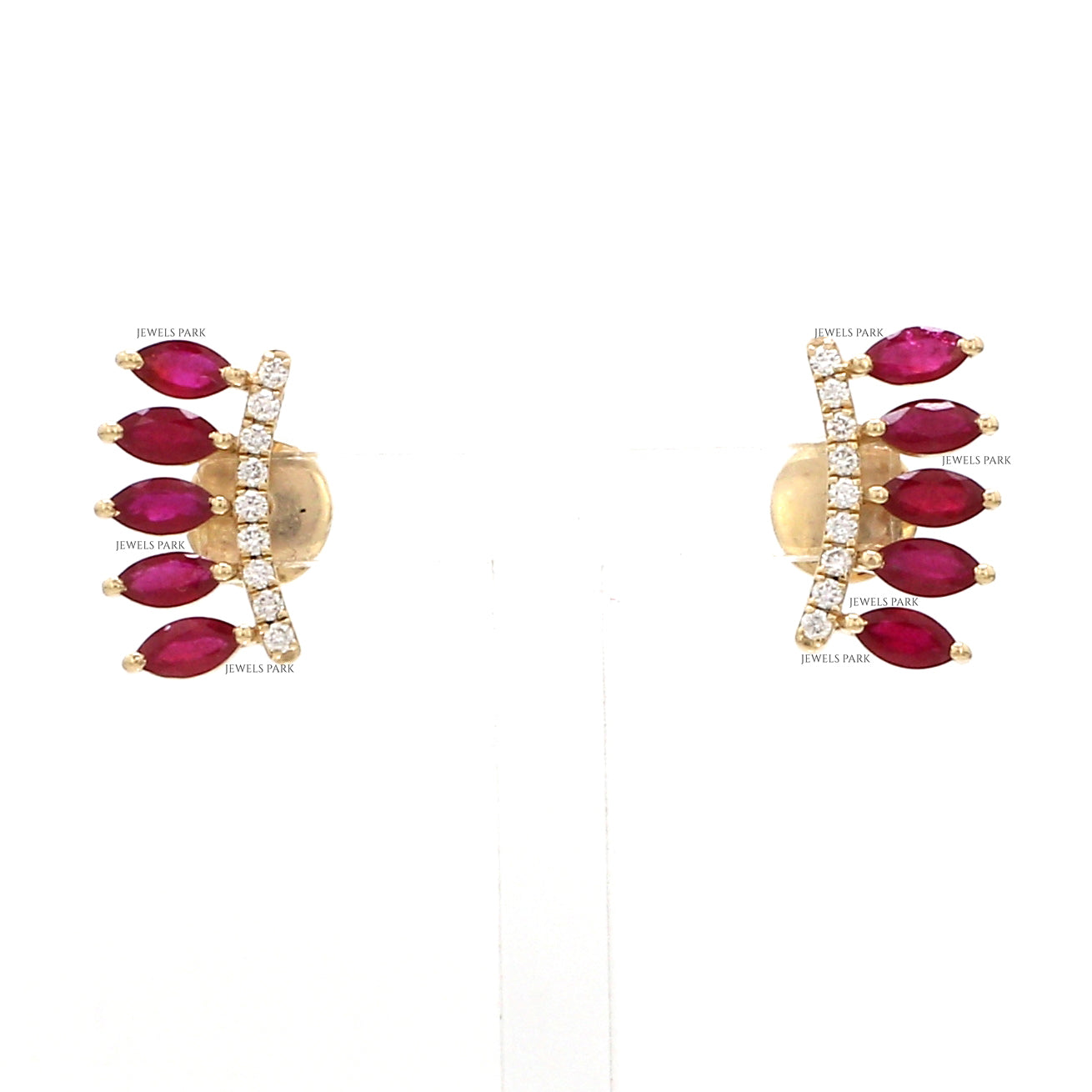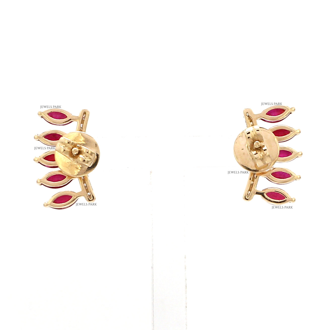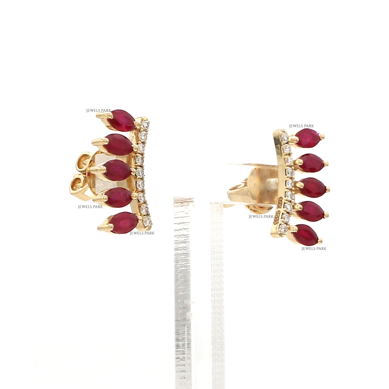 Ruby Marquise & Diamond Climber Earrings Gold | Jewels Park