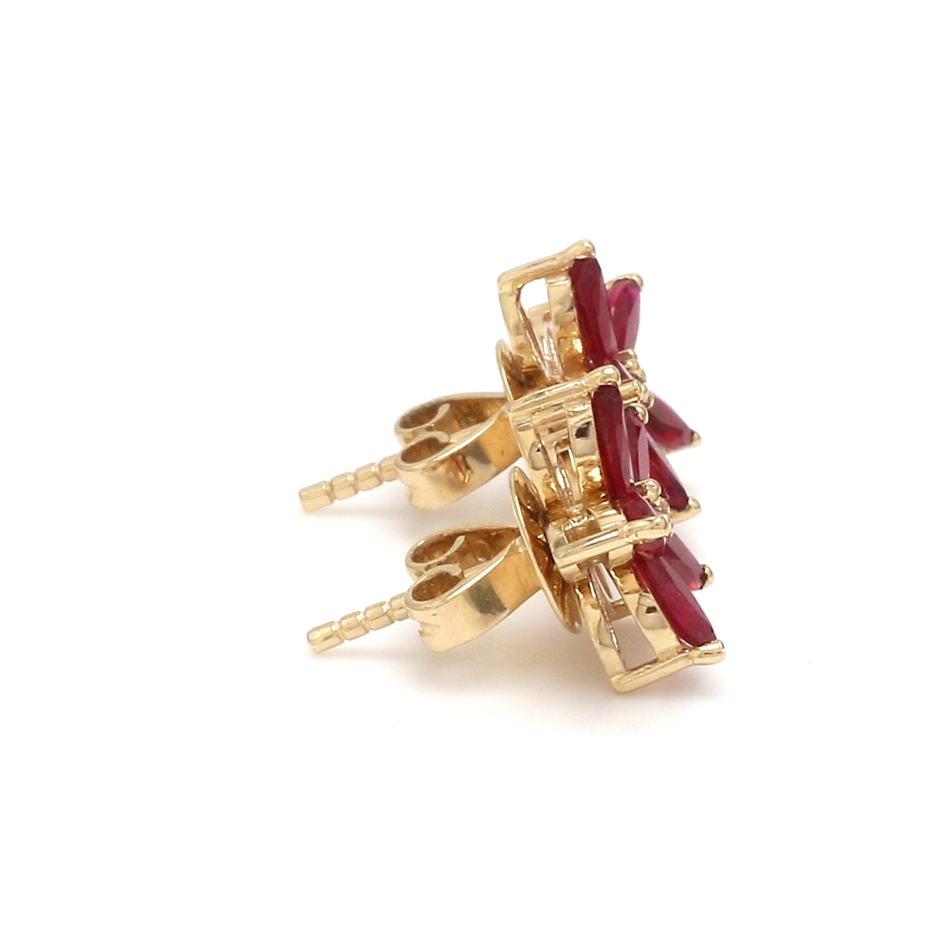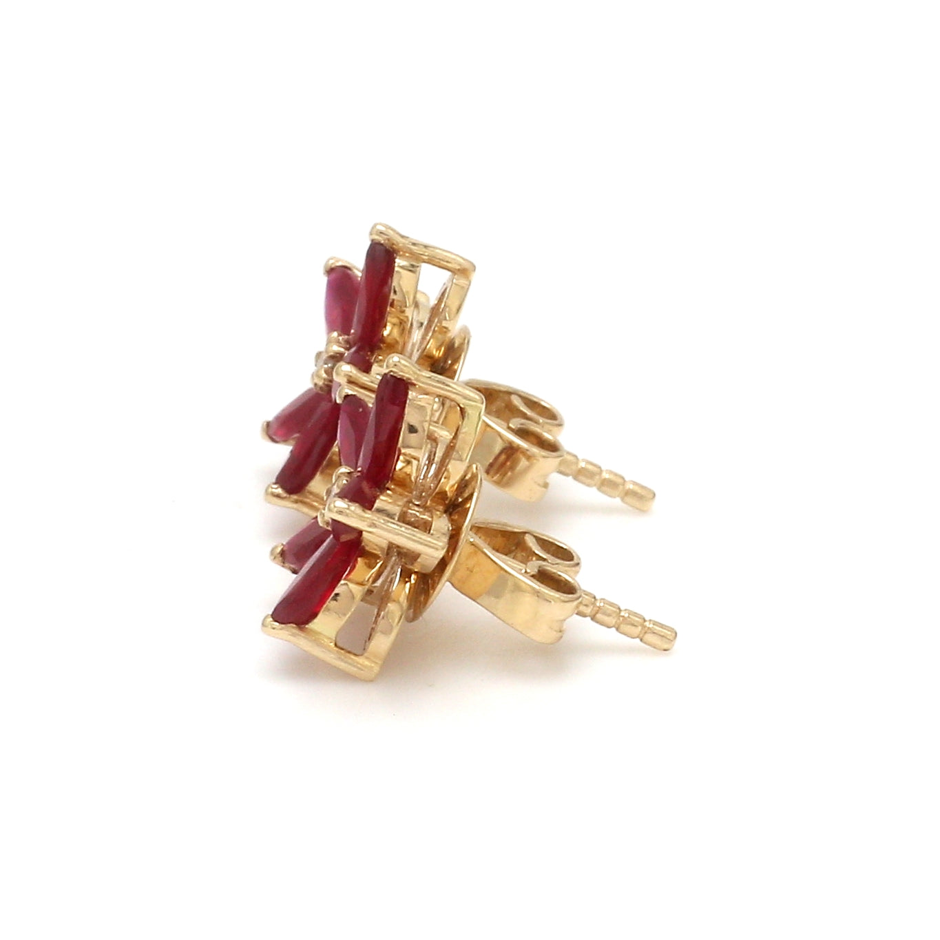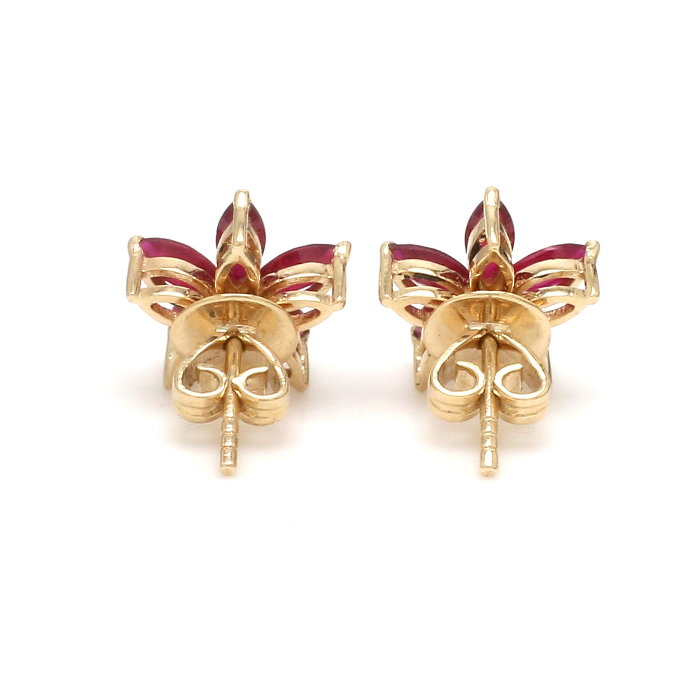 Ruby Diamond Floral Stud Earrings Gold – Flower Gemstone Studs